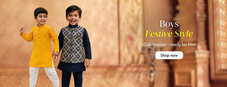 Classic Ethnic Cream Embroidered Indo-Western Sherwani Style Suit For Boys