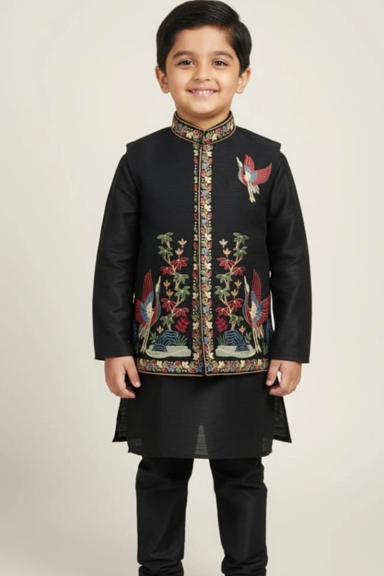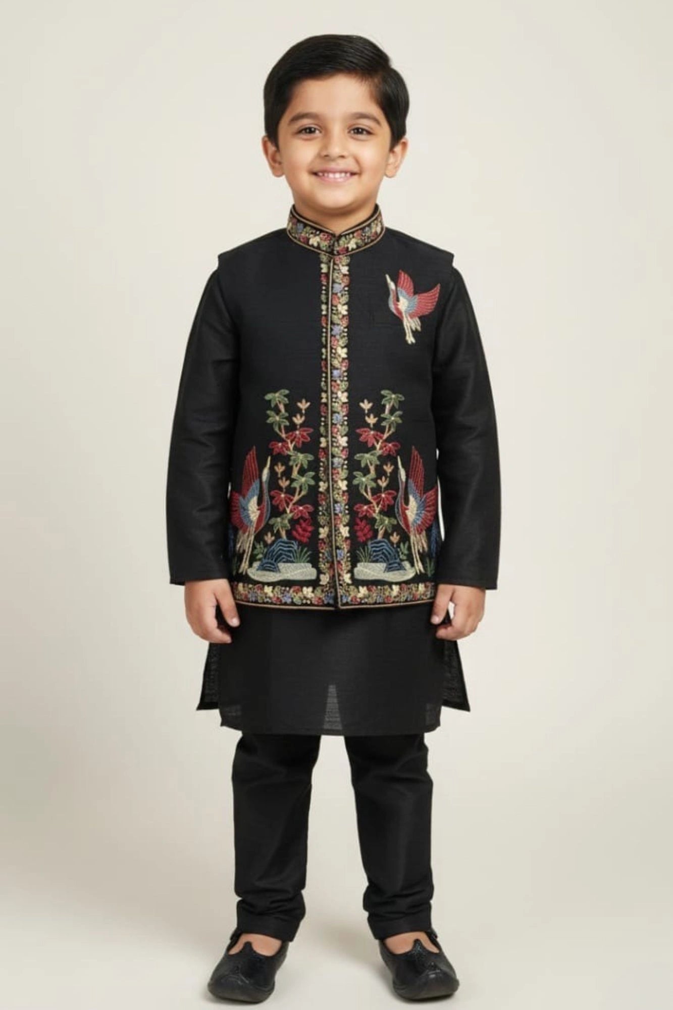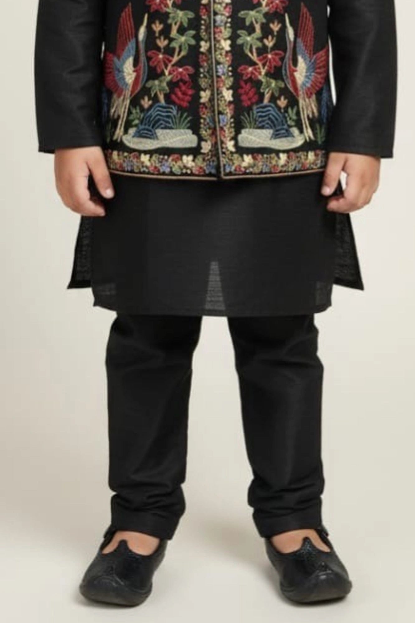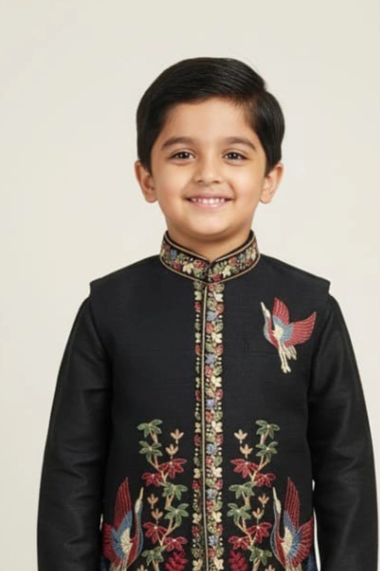 Black Multicolor Embroidered Kurta Set For Boys For Boys