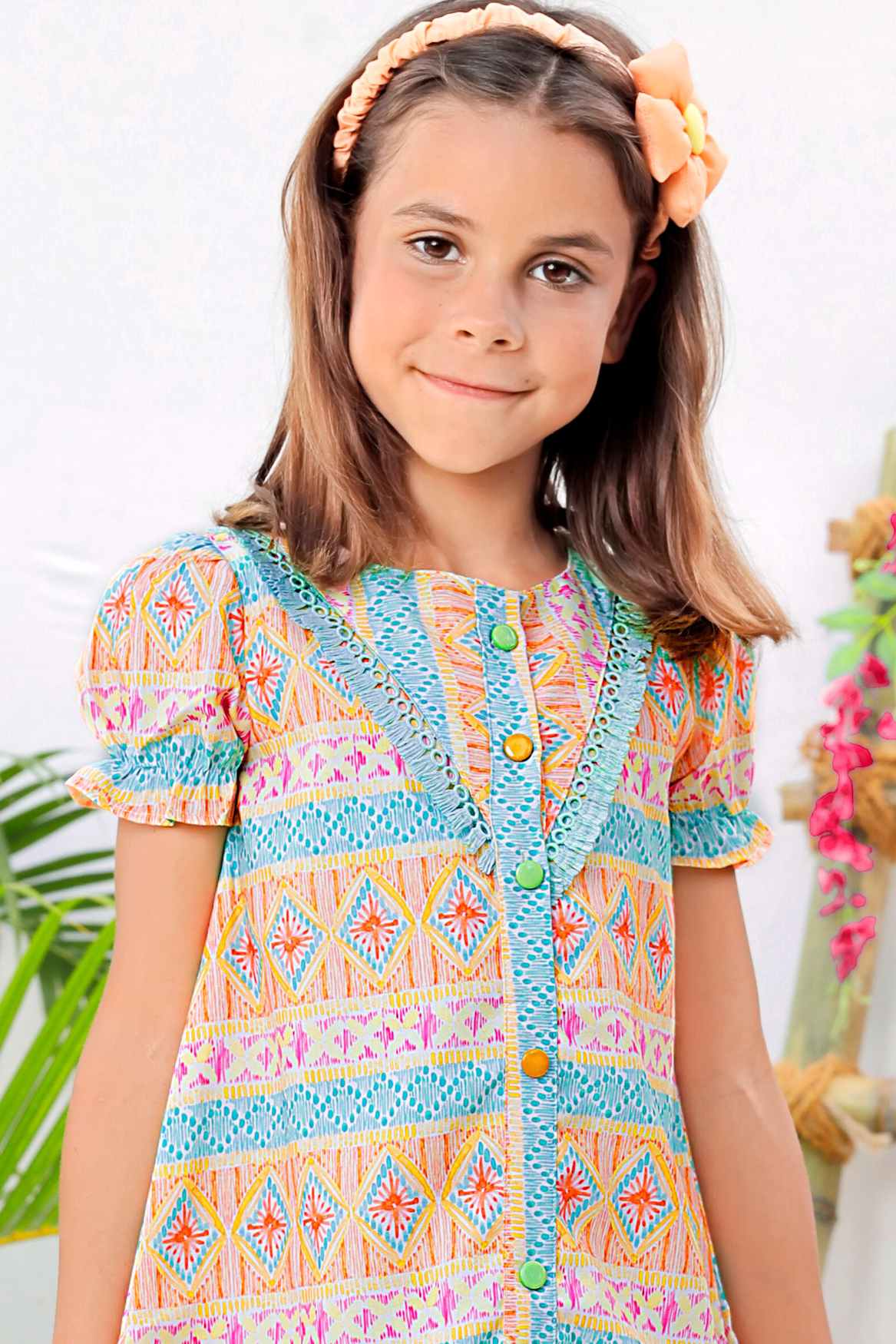 هذا الفستان مثالي لأي مناسبة، بنقشته الزرقاء الجميلة وتفاصيل الدانتيل الرقيقة على نيره. تصميمه على شكل حرف A مريح وجذاب، مما يجعله قطعة أساسية للفتيات من جميع الأعمار. حسّني أي إطلالة مع هذا الفستان الأنيق والبسيط.