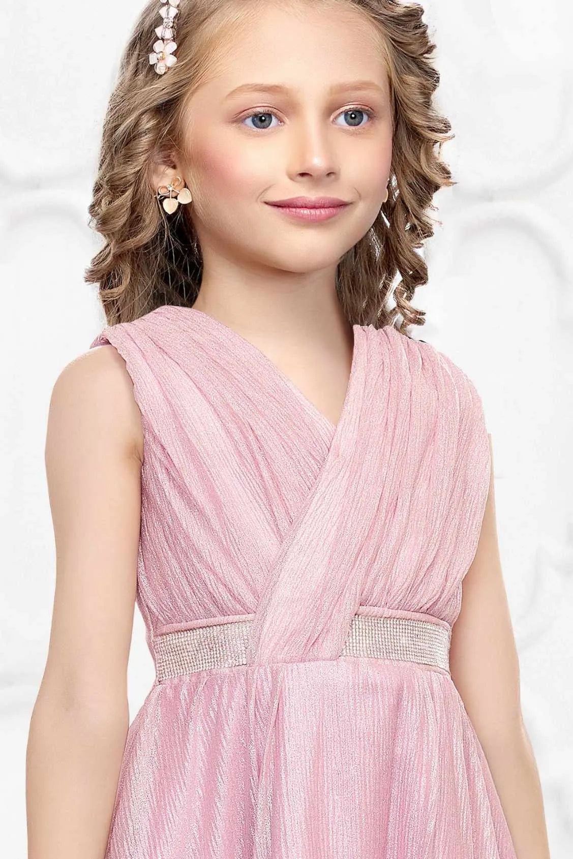 Blush Pink Shimmer Party Gown For Girls