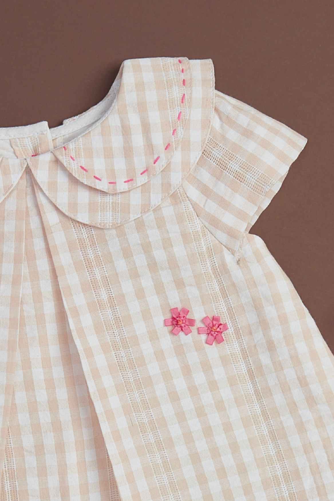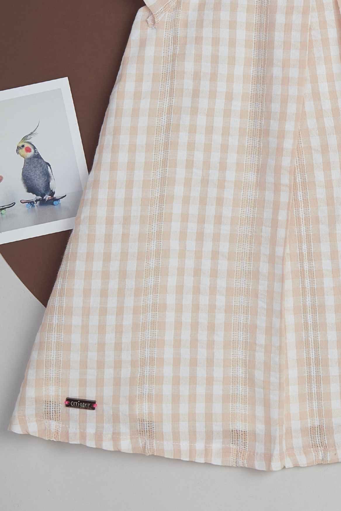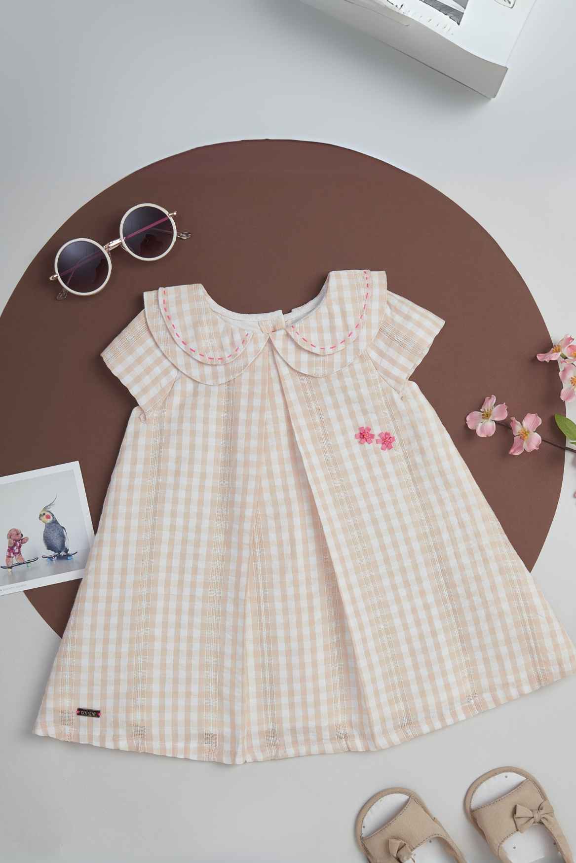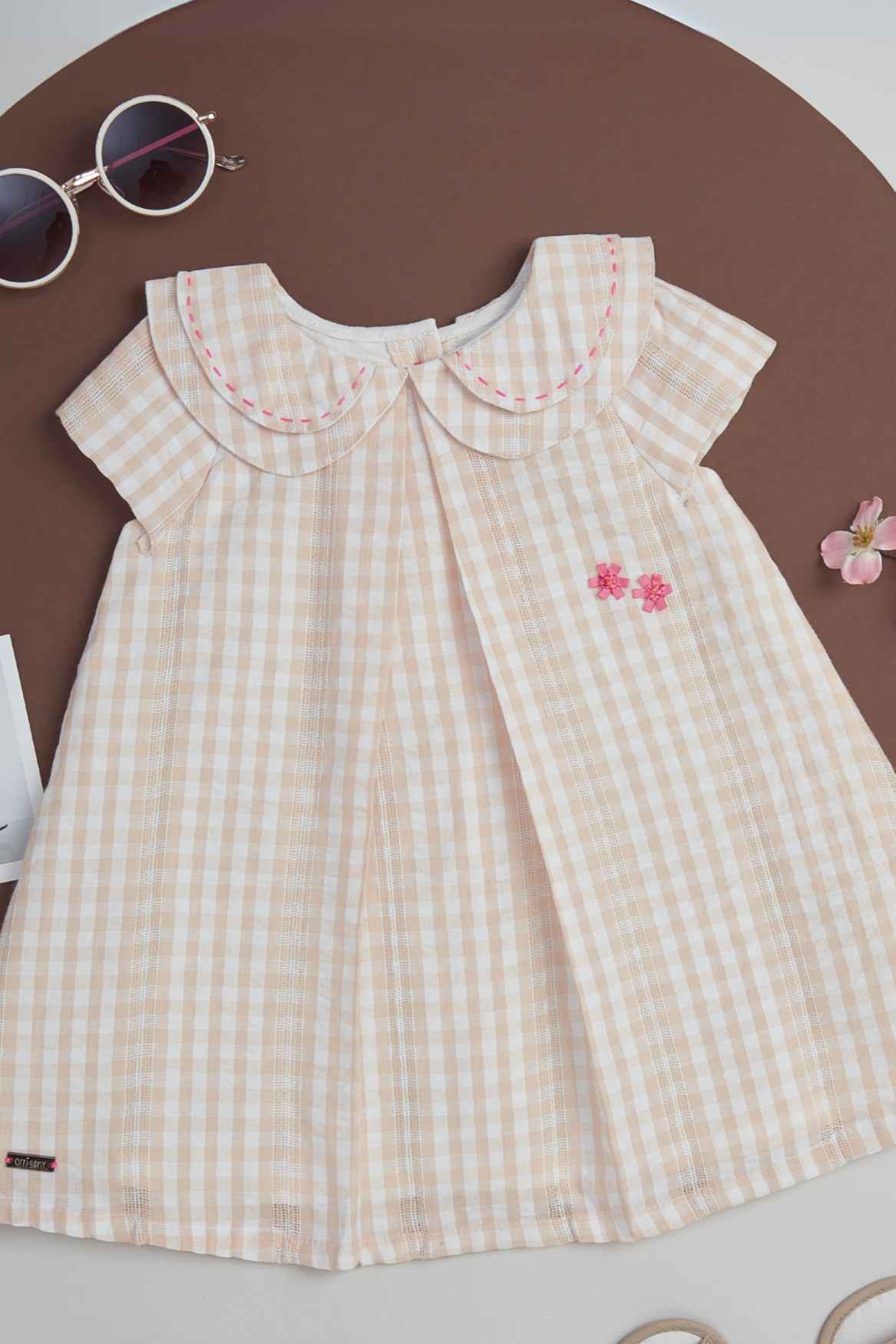حسّني خزانة ملابس طفلتكِ الصغيرة مع فستاننا القطني المربّع بلون بني فاتح. مصنوع من قطن ناعم يسمح بمرور الهواء، هذا الفستان مثالي لأي مناسبة. يضفي نقش المربعات الكلاسيكي لمسة من الأناقة، بينما يضمن القماش خفيف الوزن أقصى درجات الراحة. دللي طفلتكِ اليوم بفستاننا الأنيق والمريح.