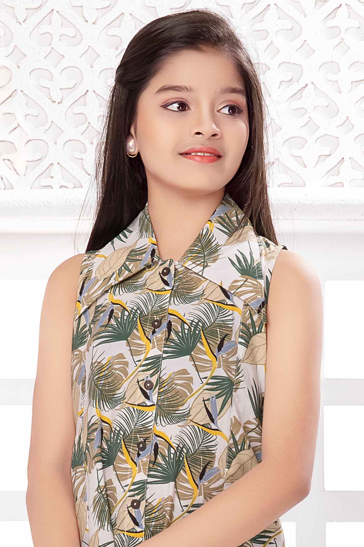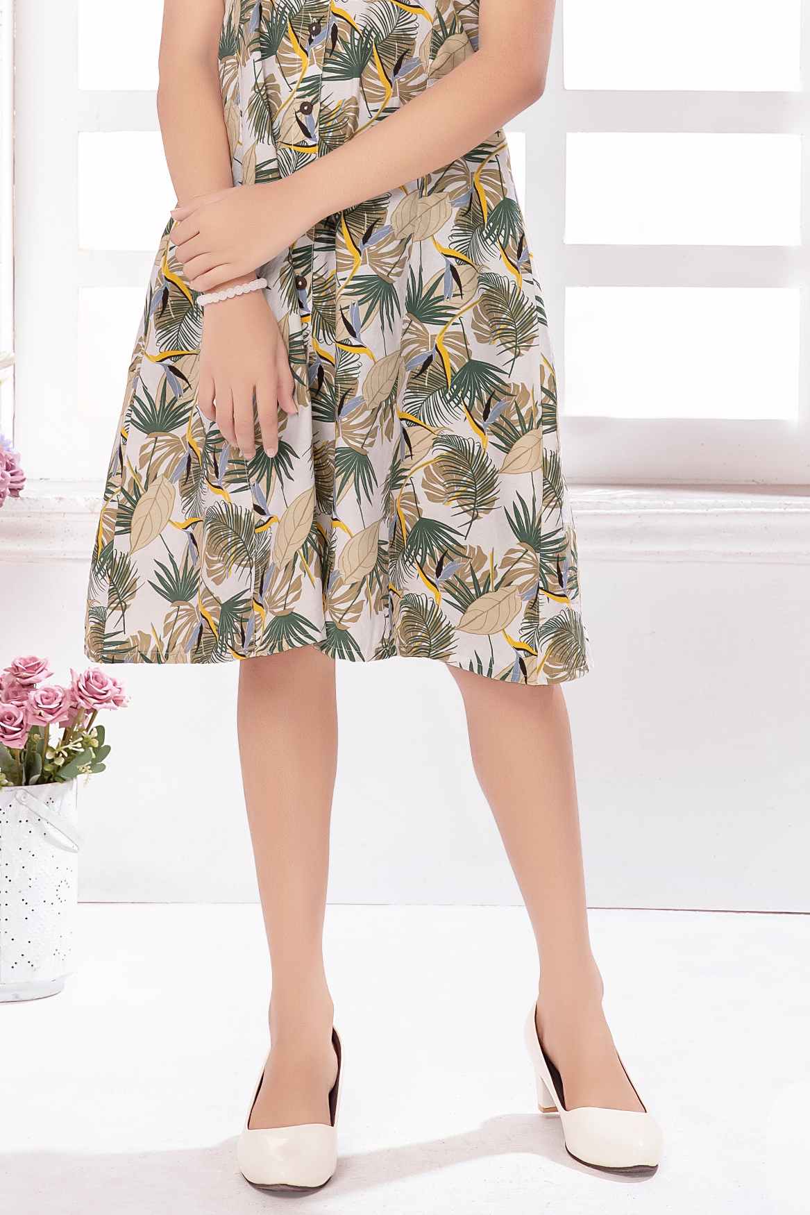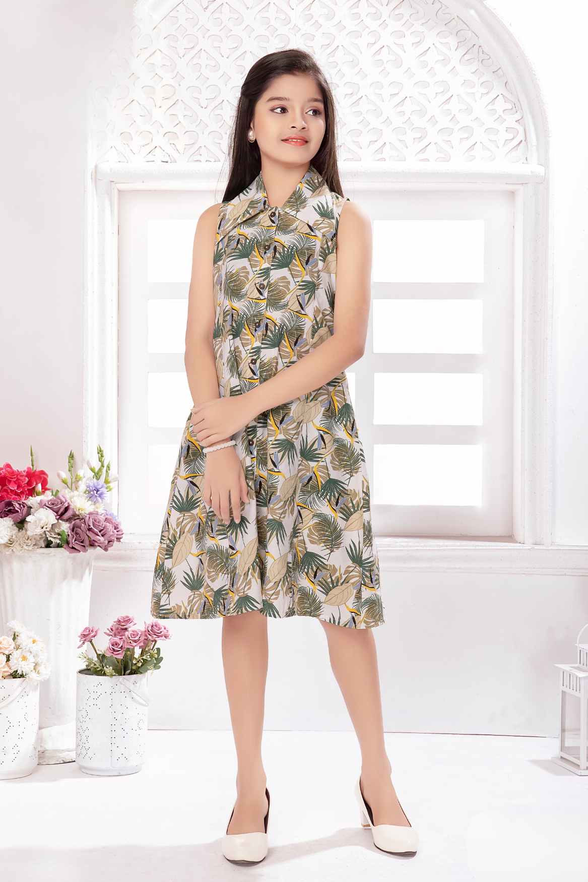 اكتشفي إطلالة الصيف المثالية مع فستاننا الأخضر بدون أكمام بقصة A-line مطبوع عليه أوراق شجر للفتيات. تصميمه بدون أكمام وقصة A-line يوفران الراحة وسهولة الحركة لأي مغامرة. مزين بطبعة أوراق شجر مرحة، هذا الفستان قطعة أساسية لأي فتاة أنيقة.