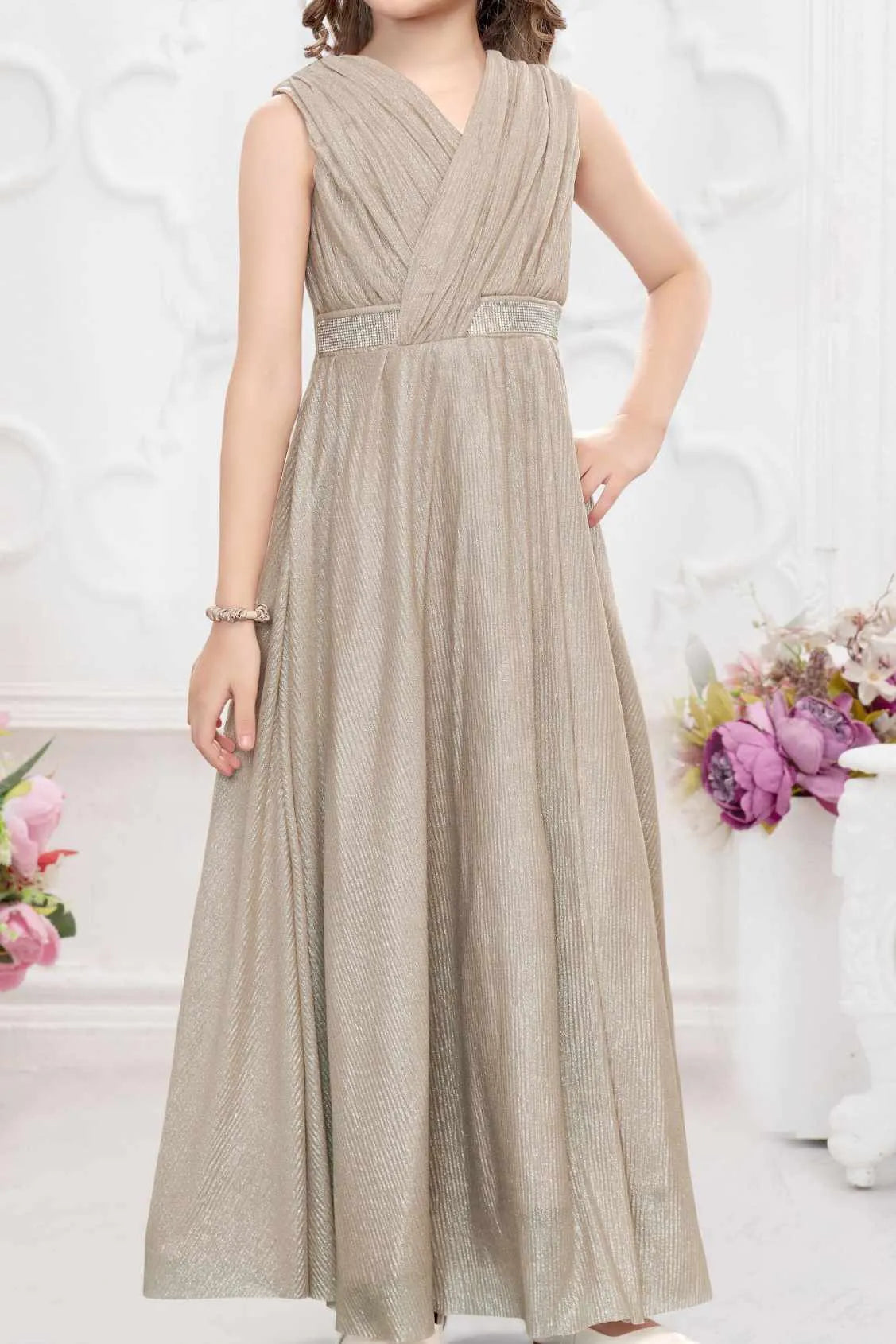 Grey Shimmer Party Gown For Girls