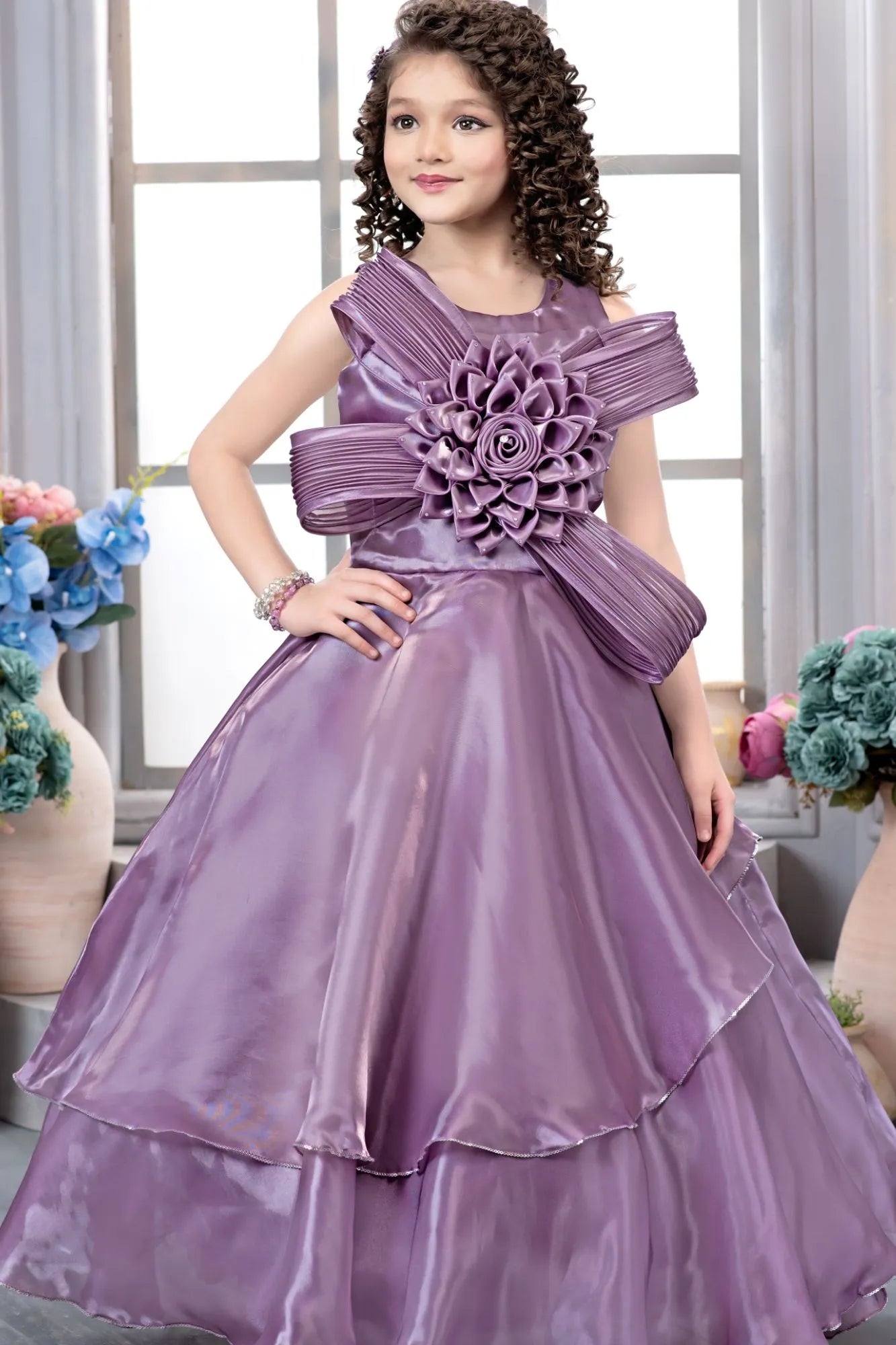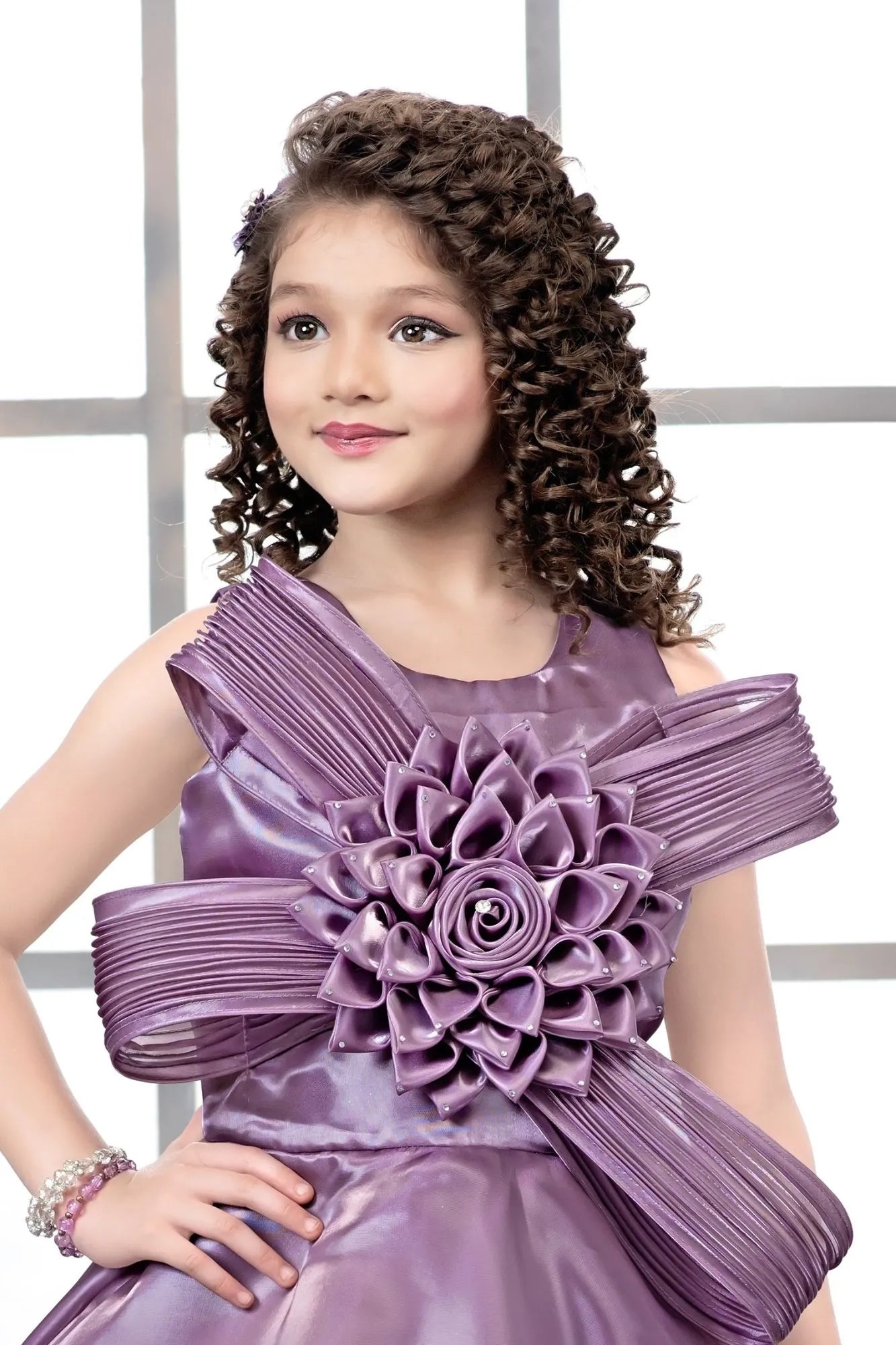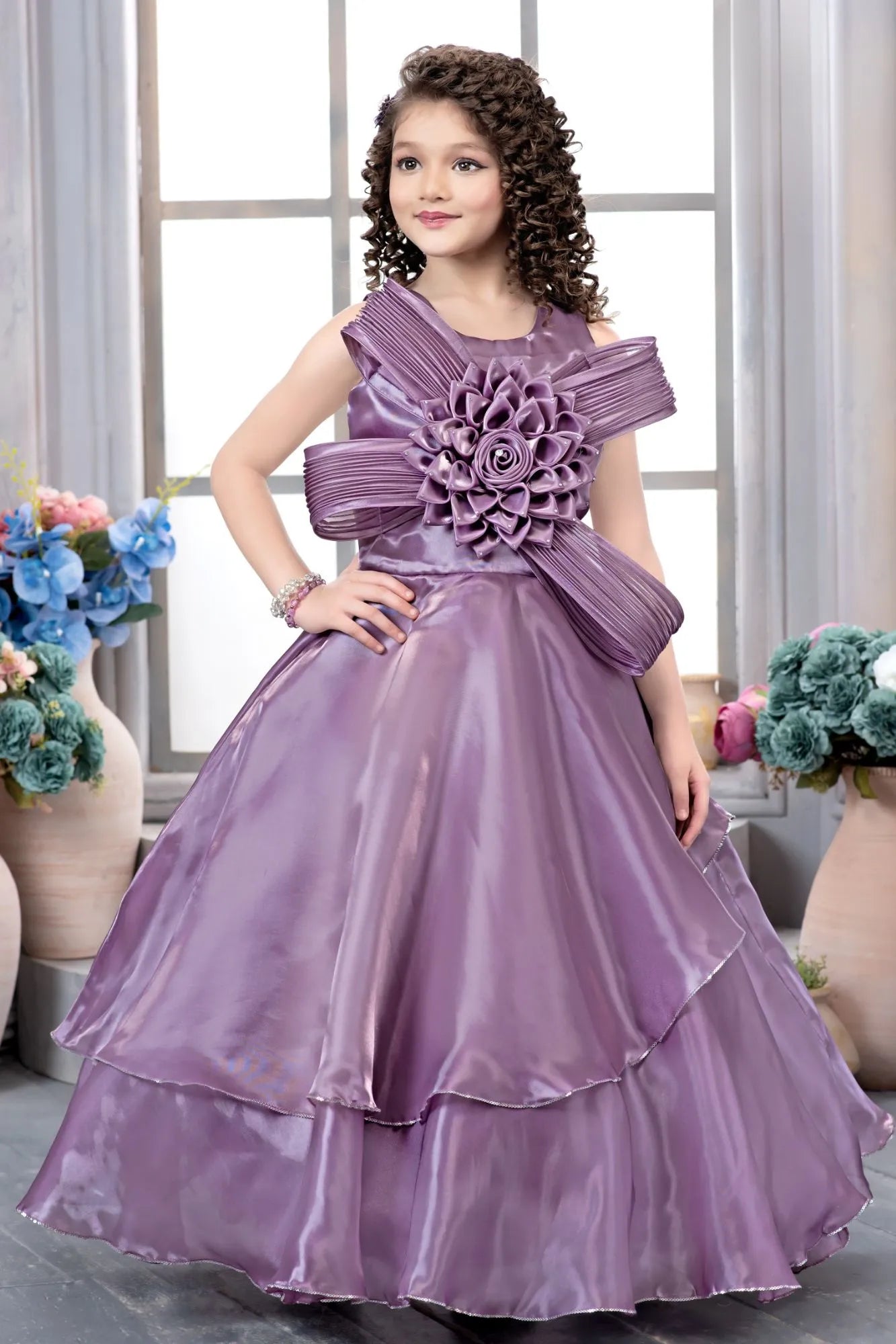 Lavender Designer Bow & 3D Rosette Party Gown For Girls