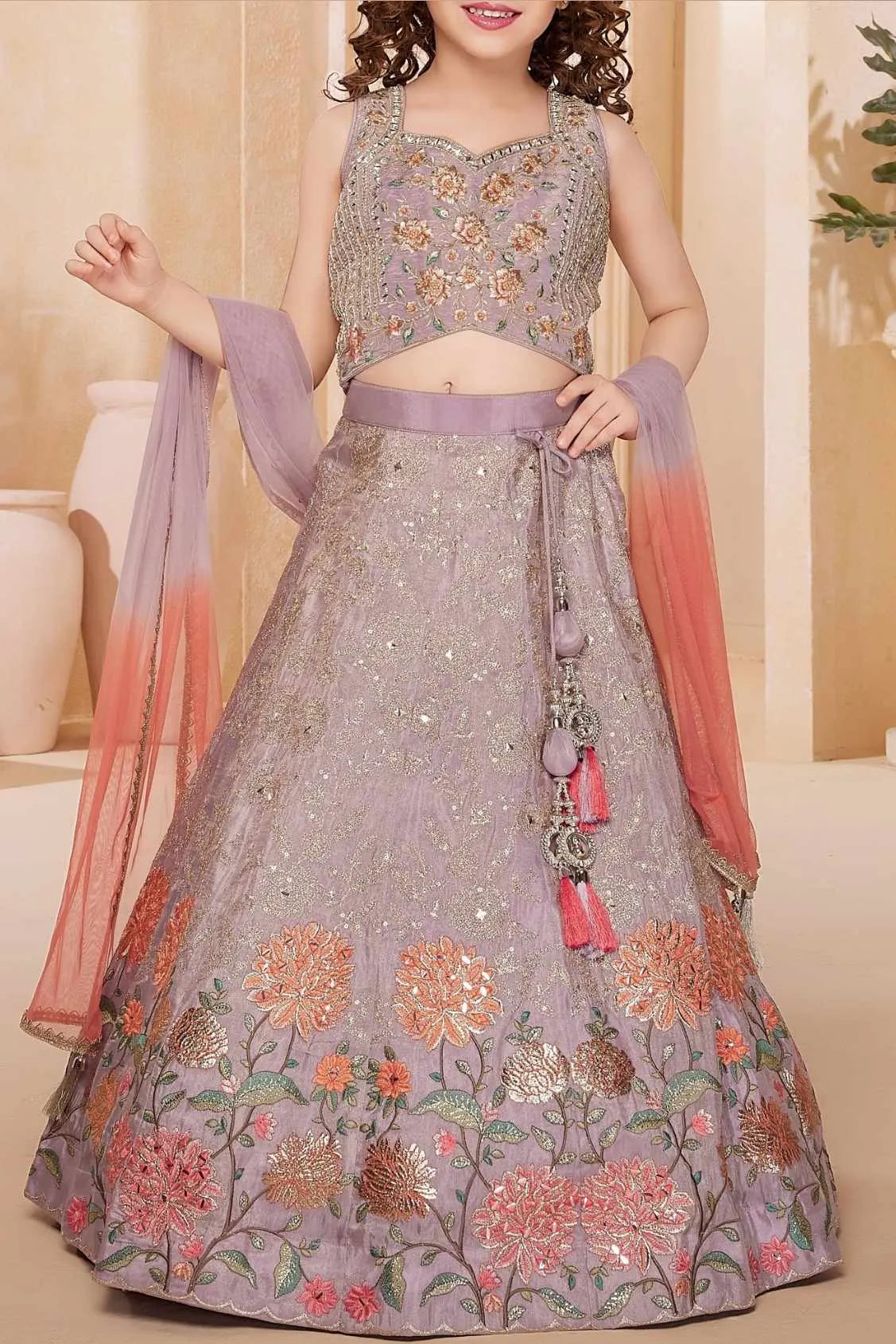 Lavender Floral Embroidered Lehenga Choli Set for Girls