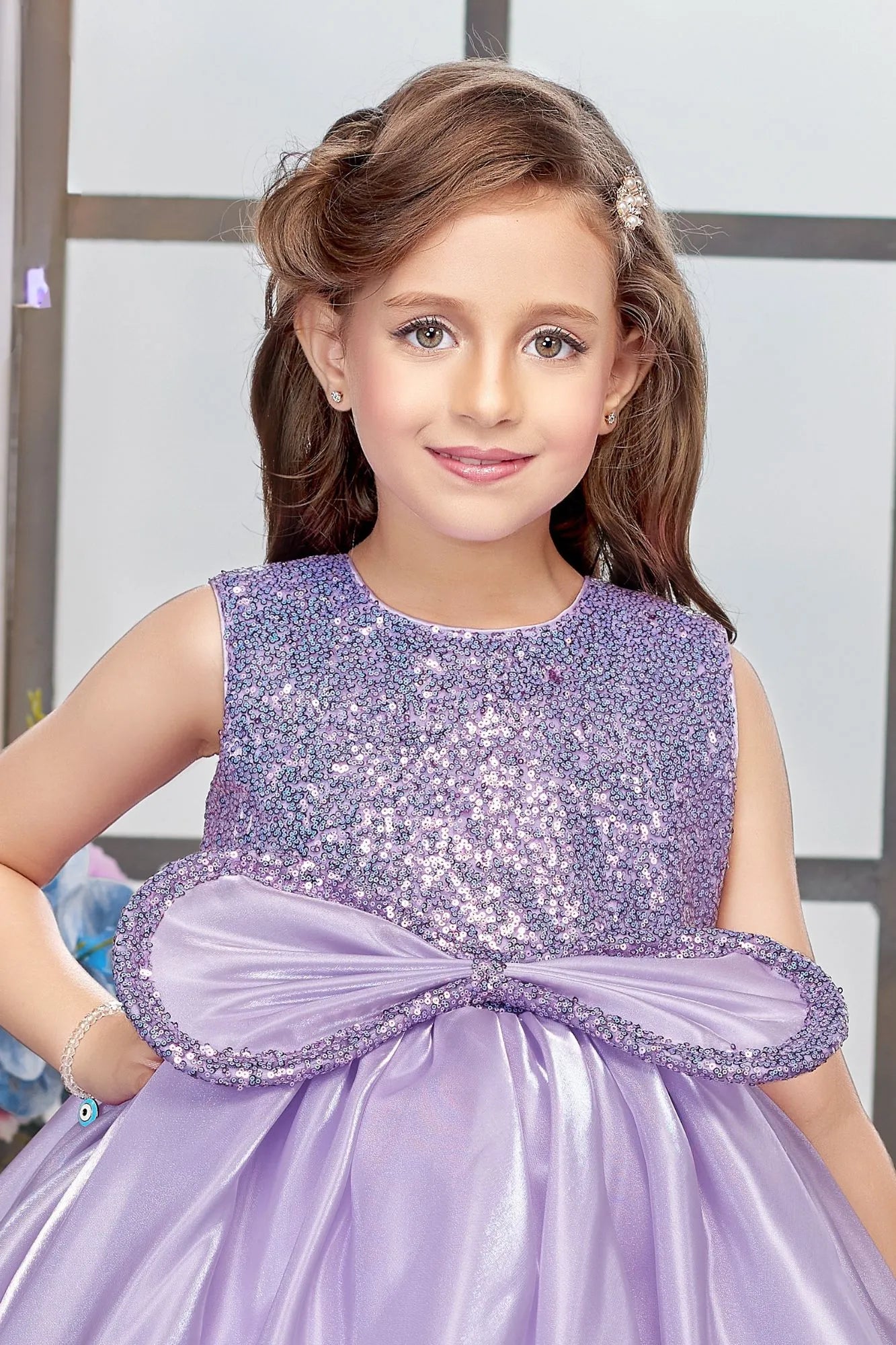 Lavender Sequin Embellished Frock For Girls