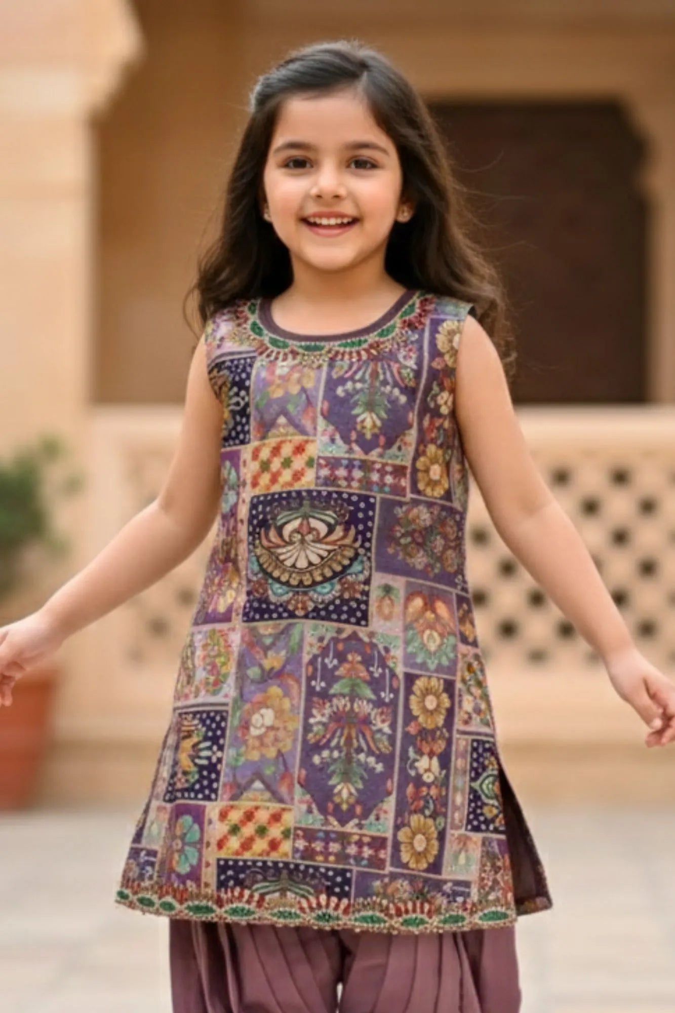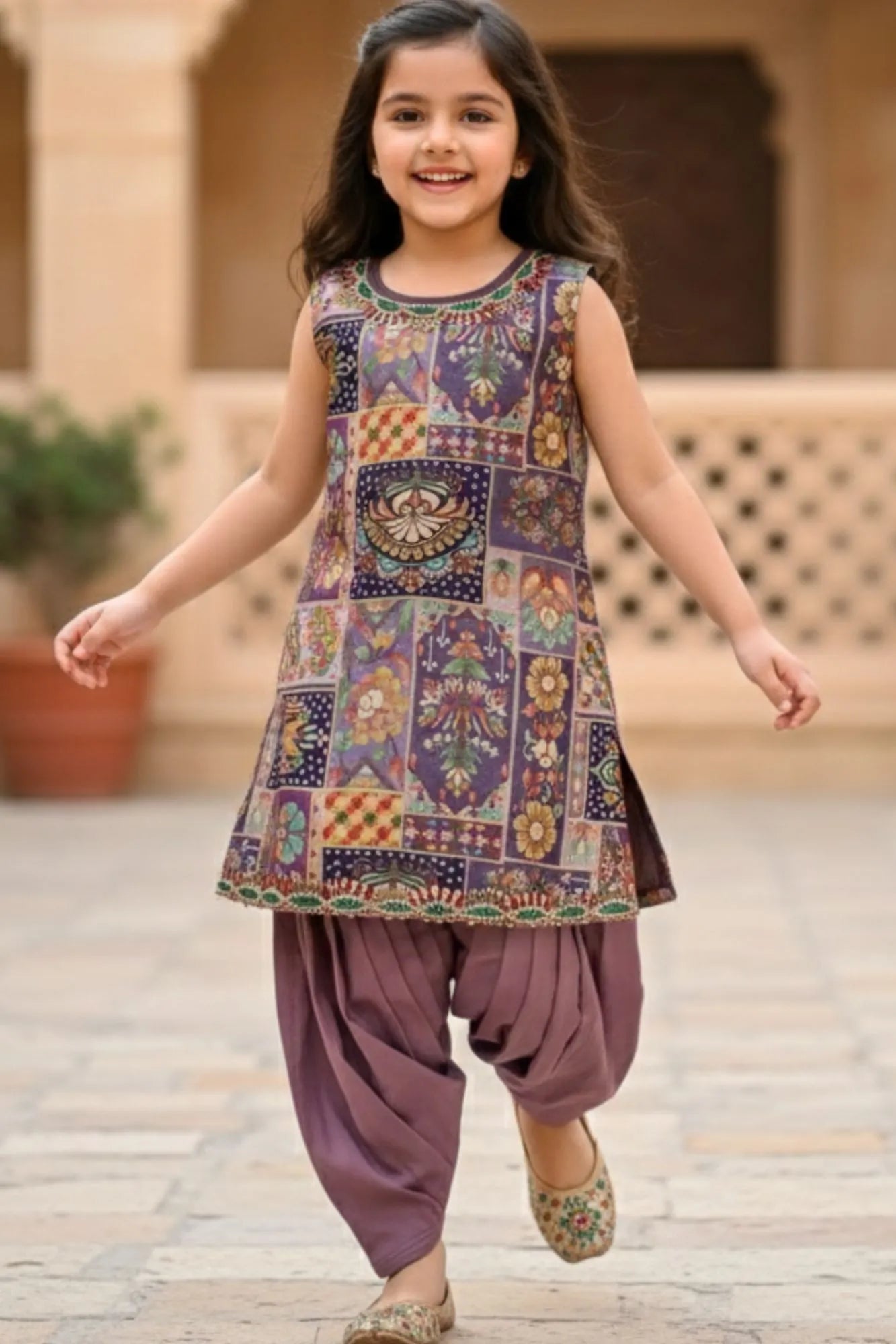 Mauve Brocade Kurta With Patiala Bottom For Girls
