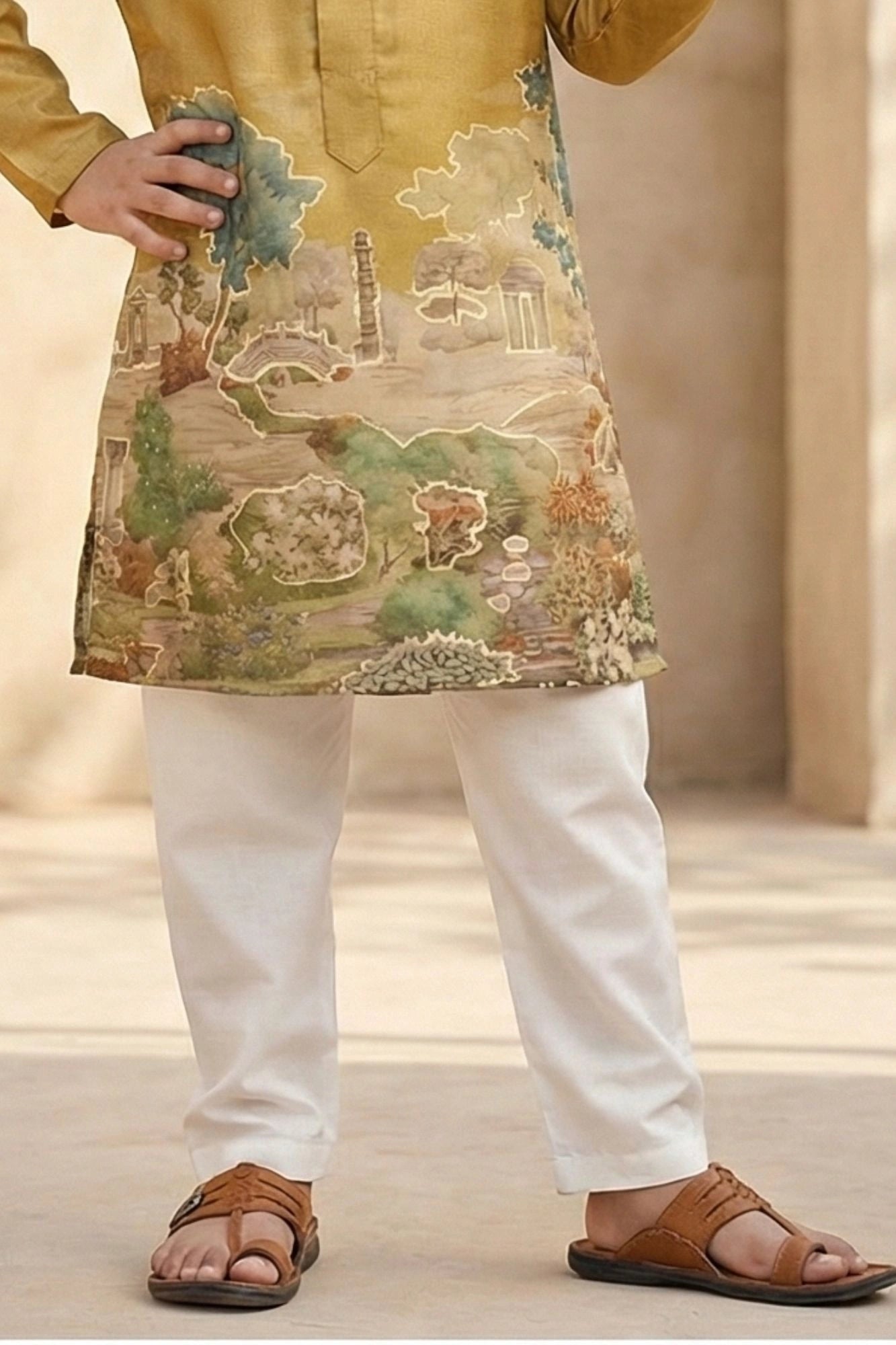 Brown & Gold Peacock Embroidered Palazzo Set with Dupatta For Girls