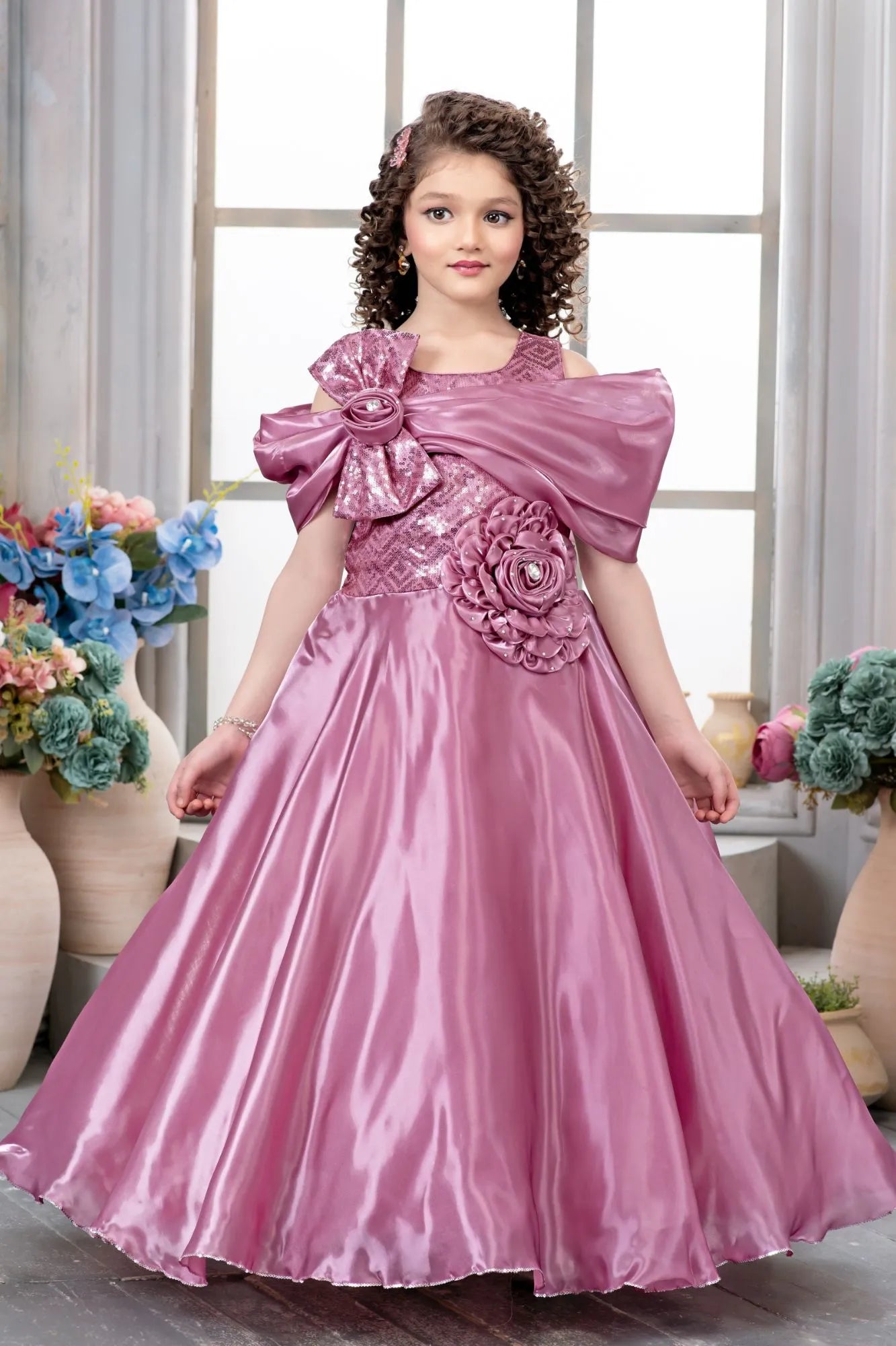 Onion Pink Sequin Embellished Princess Gown For Girls