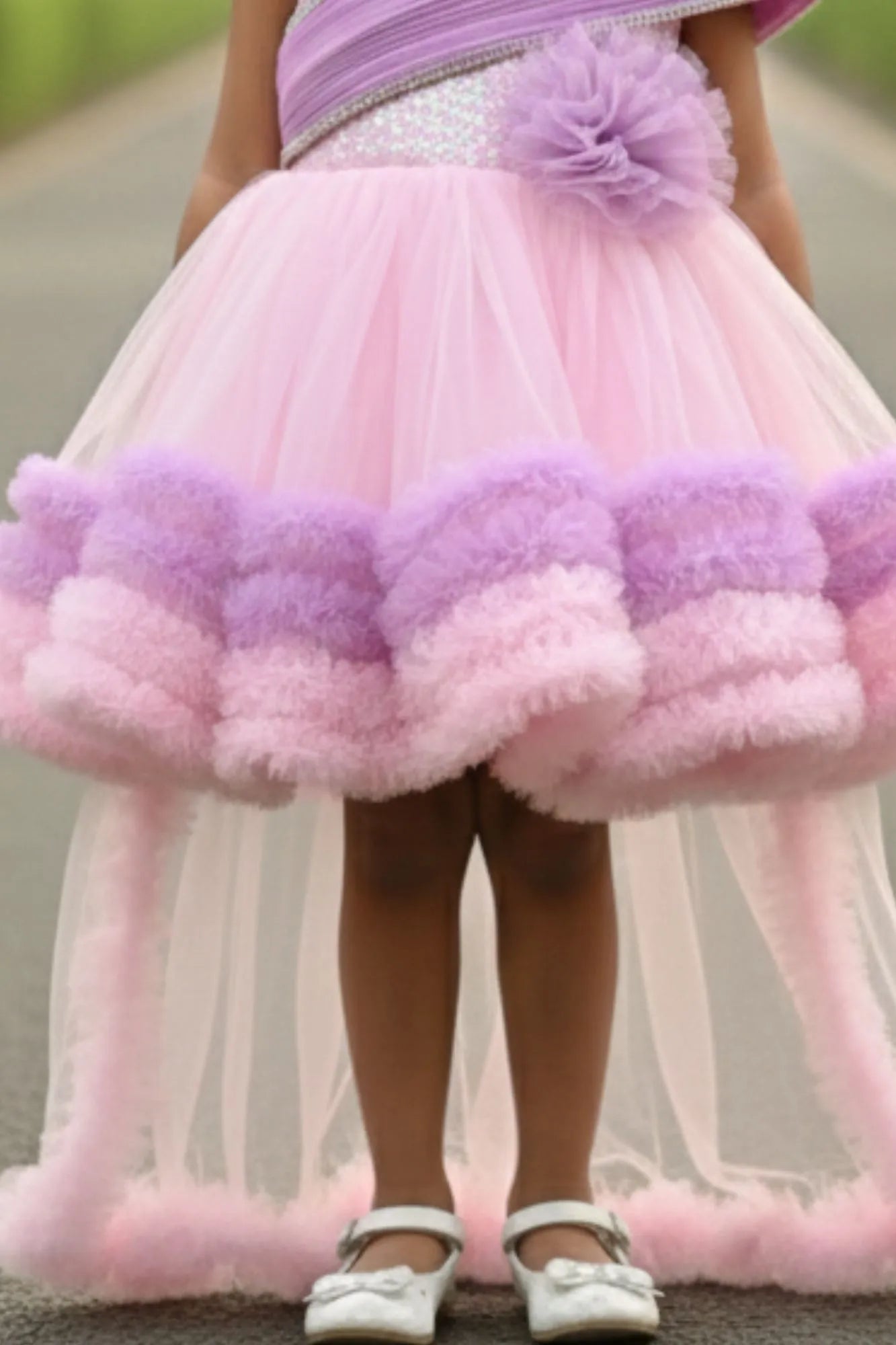 Pink & Lavender High-Low Ruffle Frock For Girls
