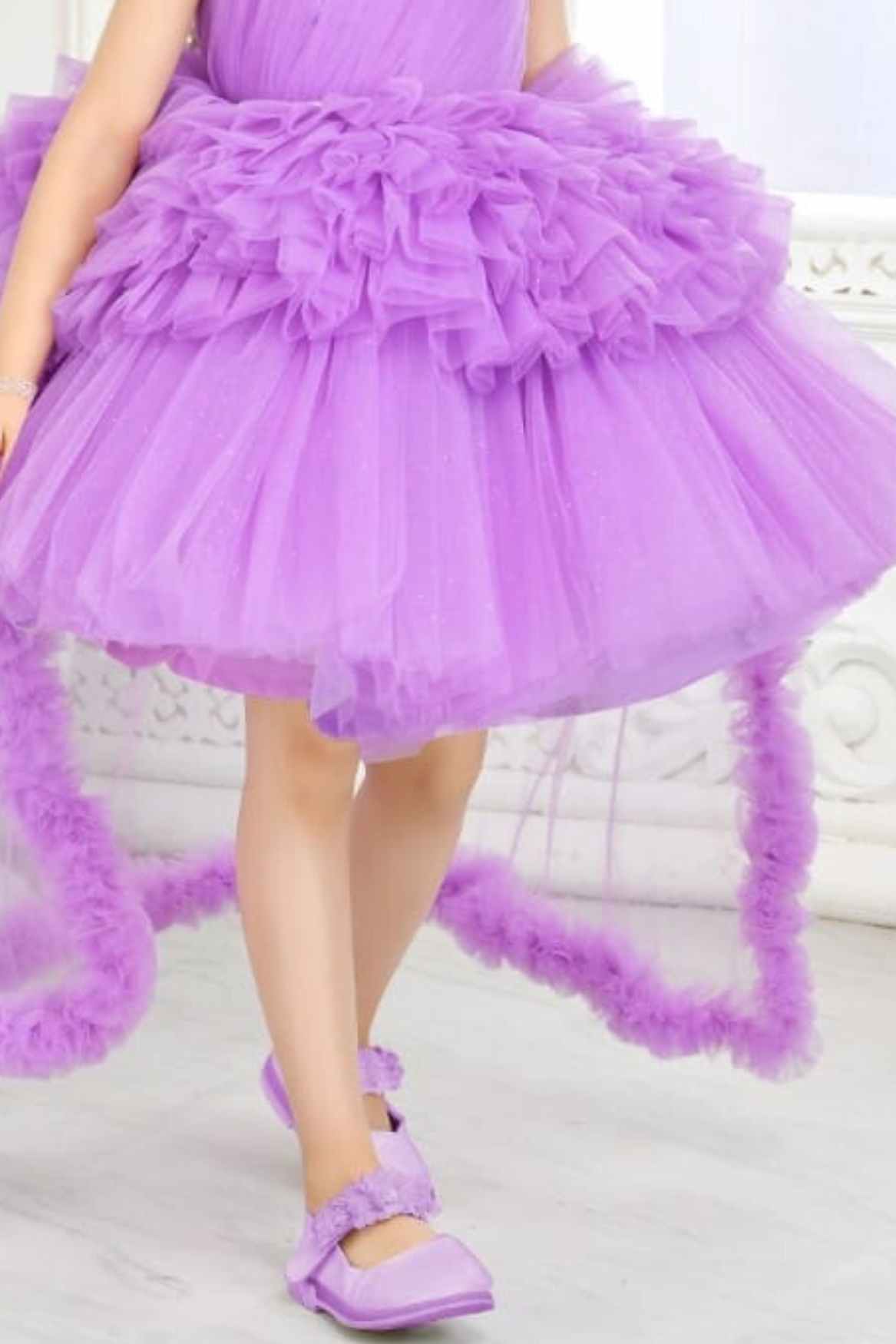 هذا الفستان الأرجواني الرائع ذو الظهر الخلفي هو الإضافة المثالية لخزانة ملابس أي فتاة. يتميز بزخارف زهرية أنيقة، مما سيجعل طفلتكِ متألقة في أي مناسبة. مصنوع من مواد عالية الجودة، ويوفر الأناقة والراحة. ألبسي طفلتكِ هذا الفستان وشاهديها تسحر من حولها.