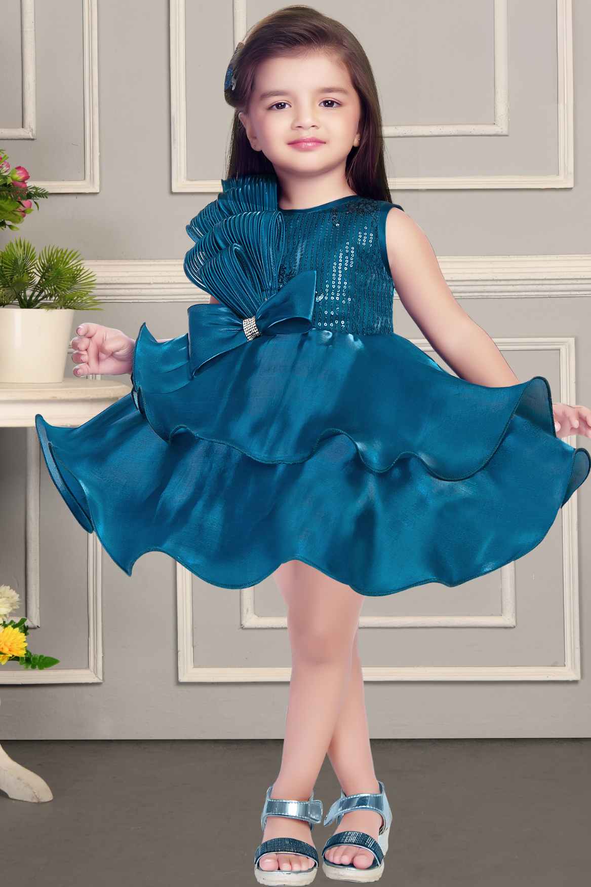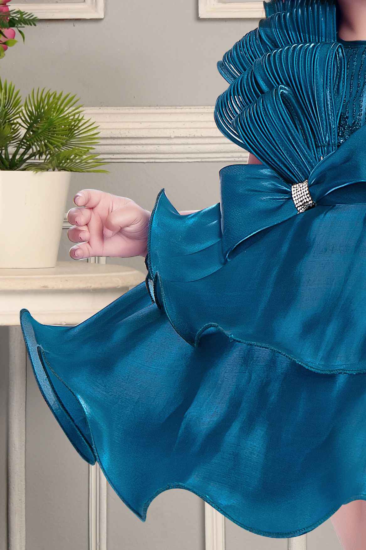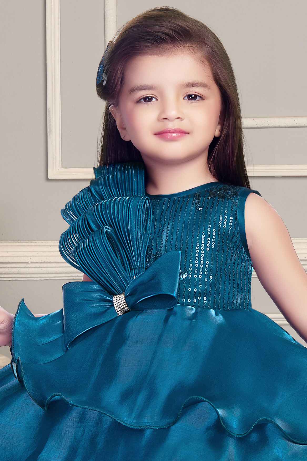 هذا الفستان الأزرق المخضر هو الإضافة المثالية لخزانة ملابس طفلتكِ الصغيرة. تُضفي زخارف الفيونكة والترتر لمسةً من التألق على لونه الأزرق المخضر الجميل والنابض بالحياة. دعي طفلتكِ تتألق بهذا الفستان الرائع الذي سيُبقيها مرتاحة وأنيقة في آنٍ واحد.