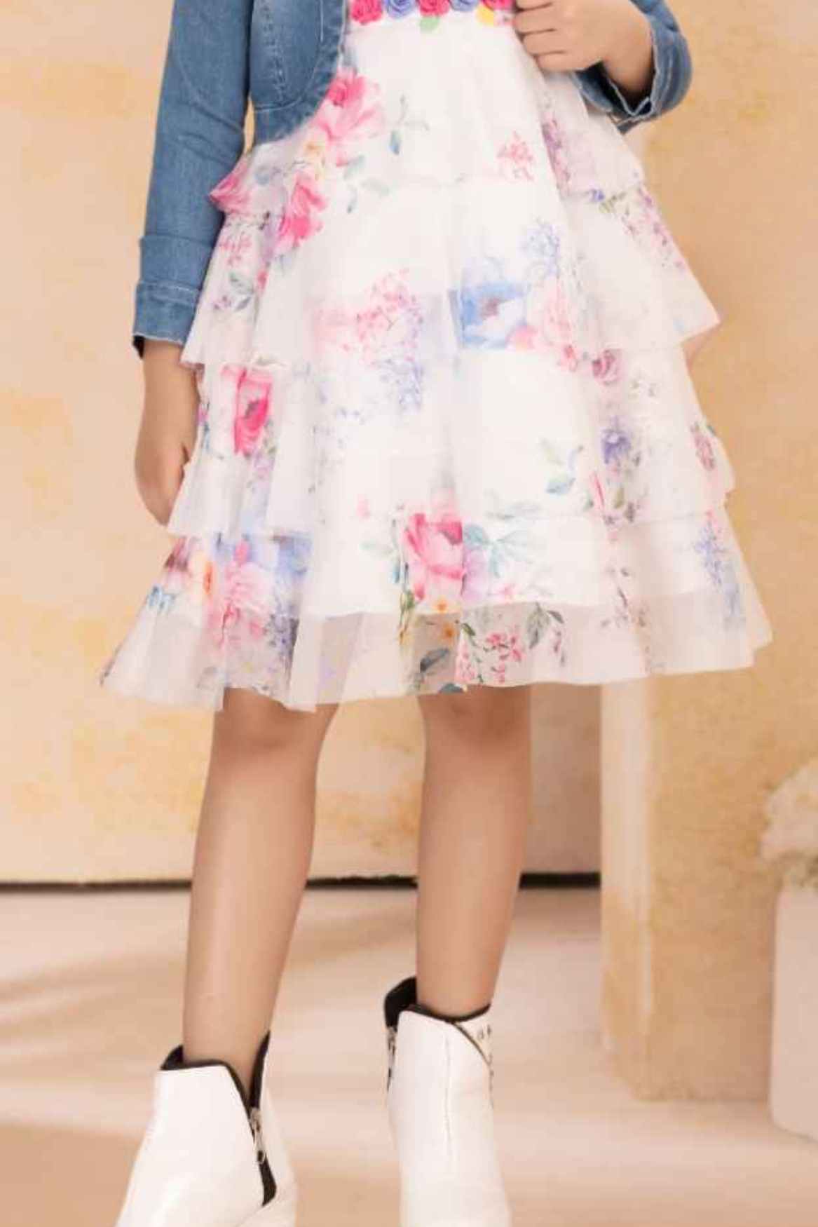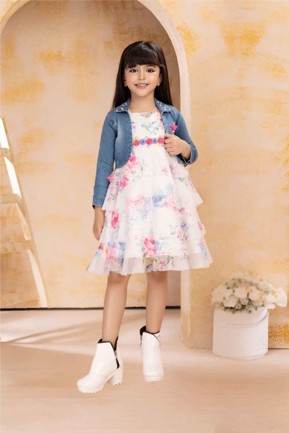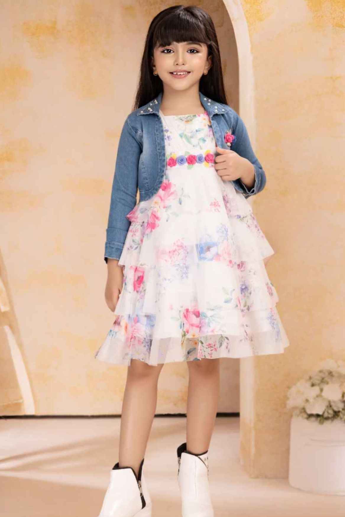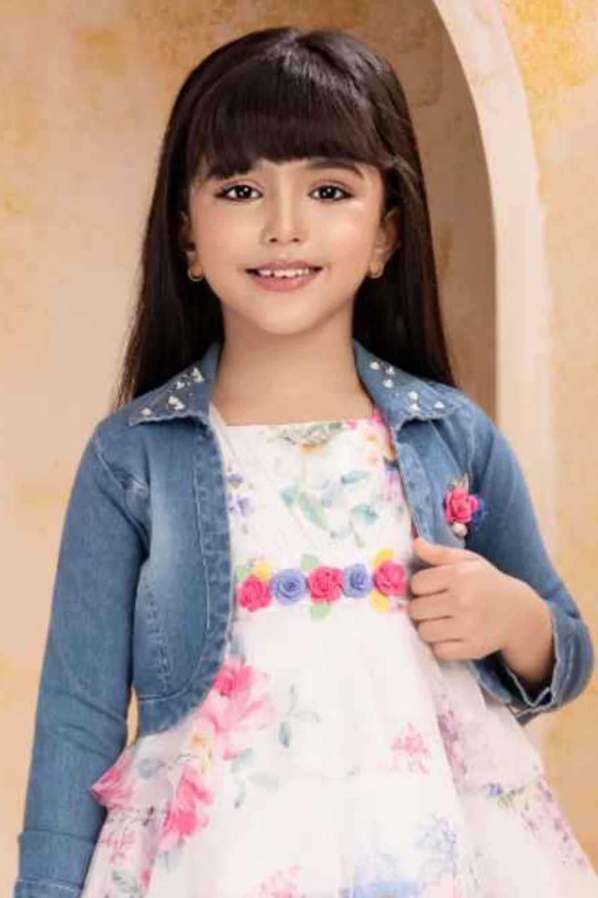 نقدم لكم فستاننا الأبيض بدون أكمام بطبعة زهور مع معطف جينز للبنات - إطلالة أنيقة ومتعددة الاستخدامات لصغيرتكِ المهتمة بالموضة. طبعة الزهور تضفي لمسة أنثوية، بينما يوفر معطف الجينز لمسة عصرية من الدفء. مثالي لأي مناسبة!