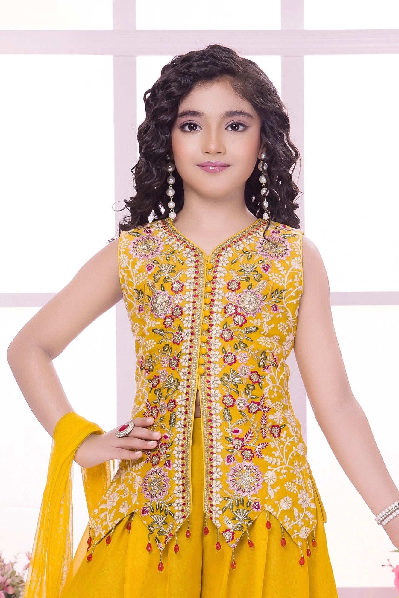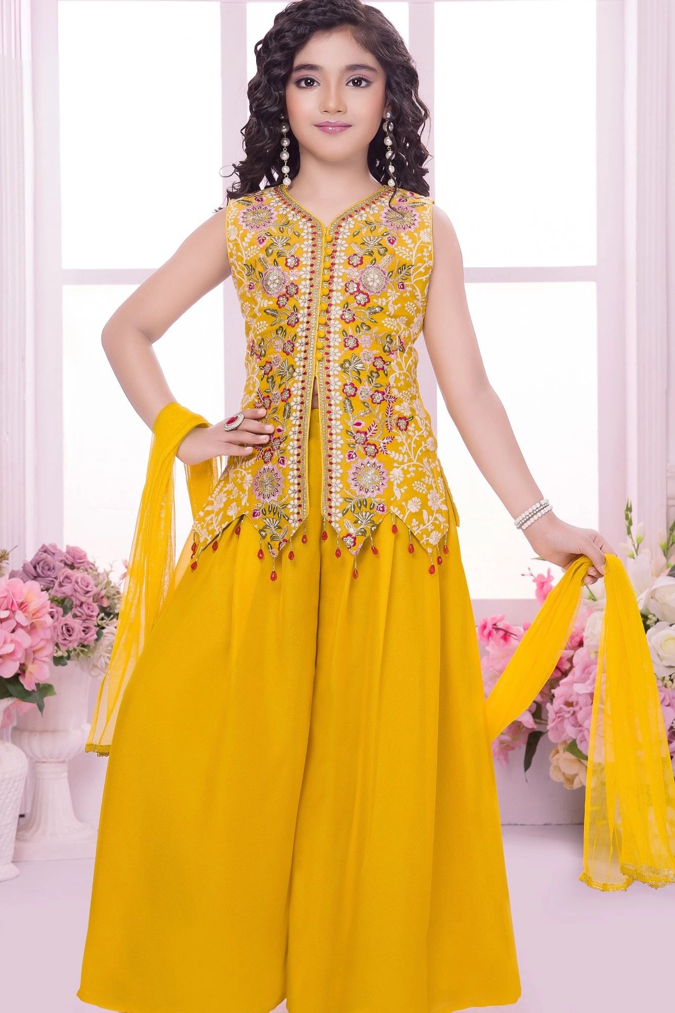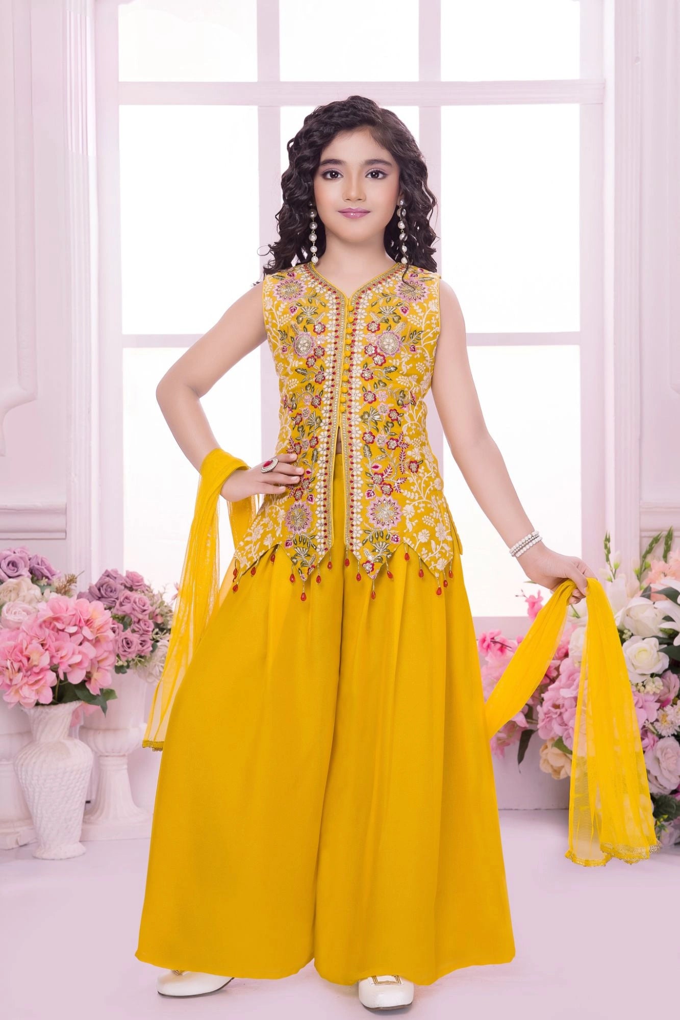 Yellow Heavy Embroidered Palazzo Set for Girls