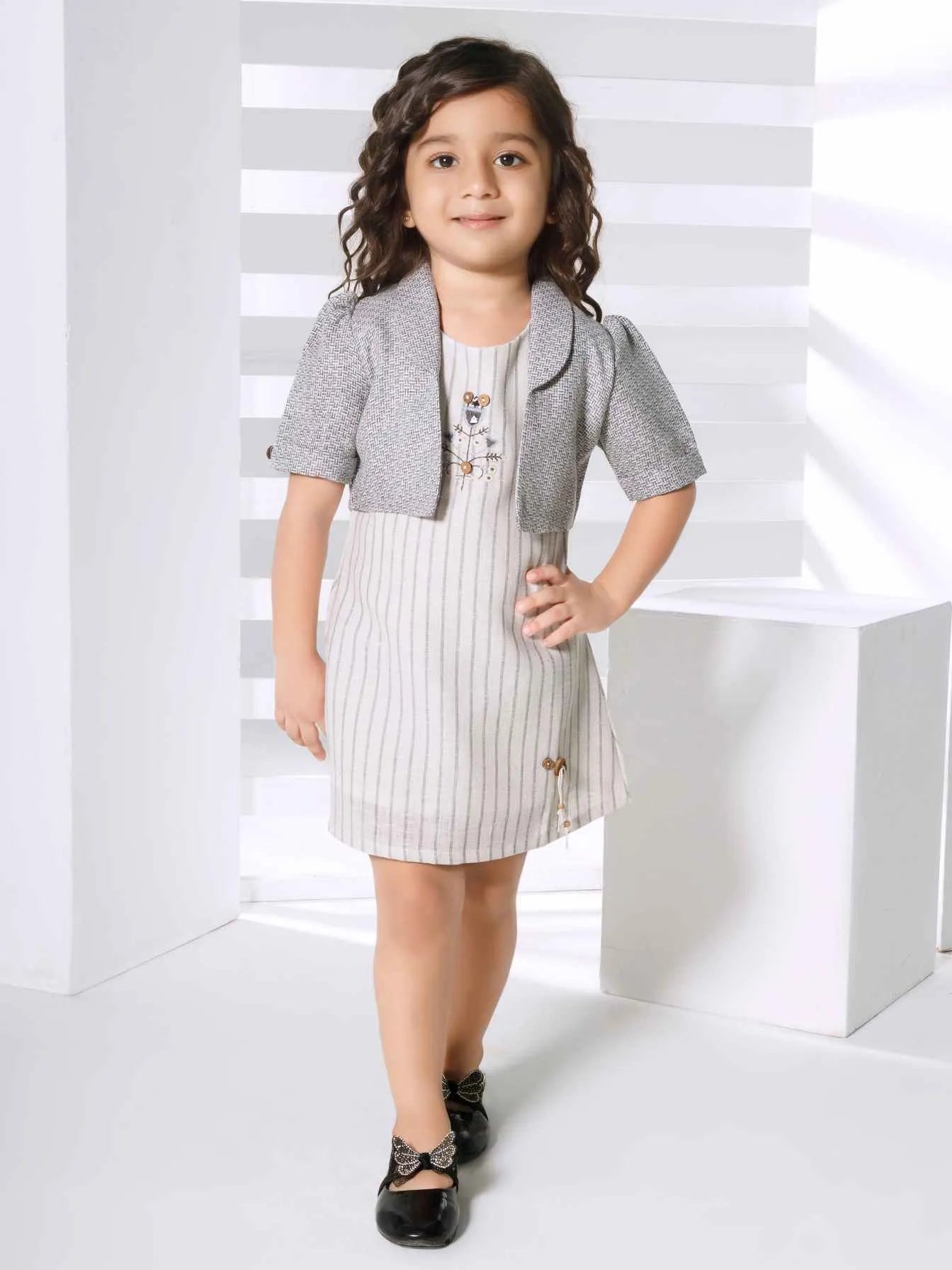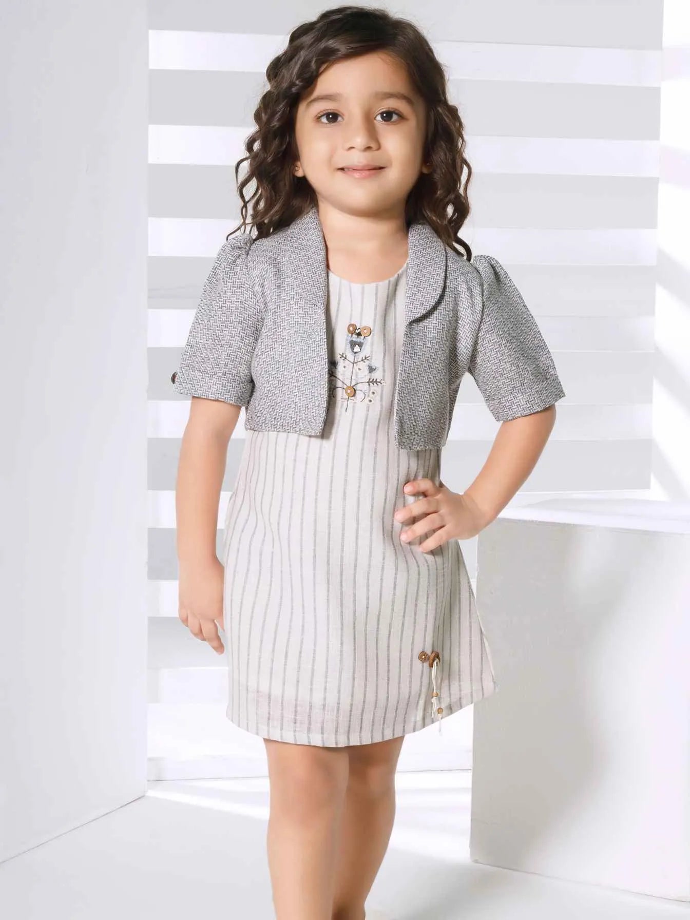 Grey Pinstripe Shift Dress with Matching Over coat For Girls