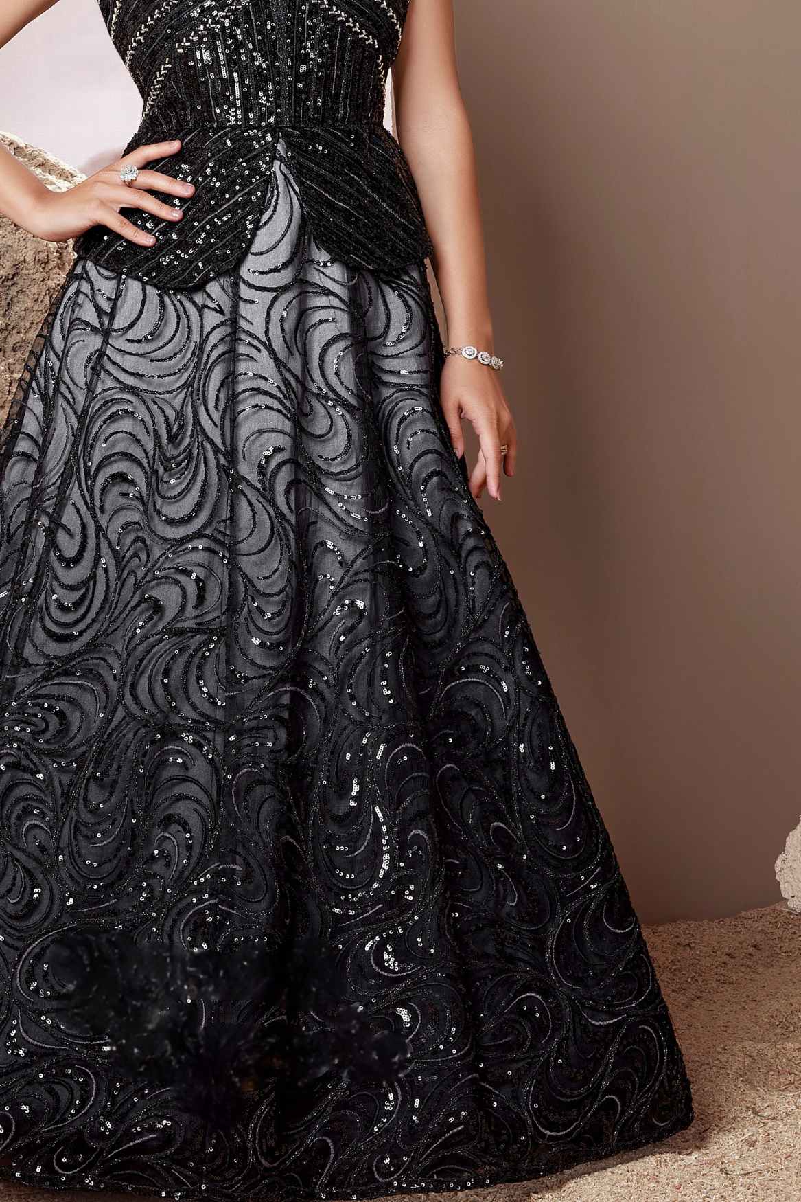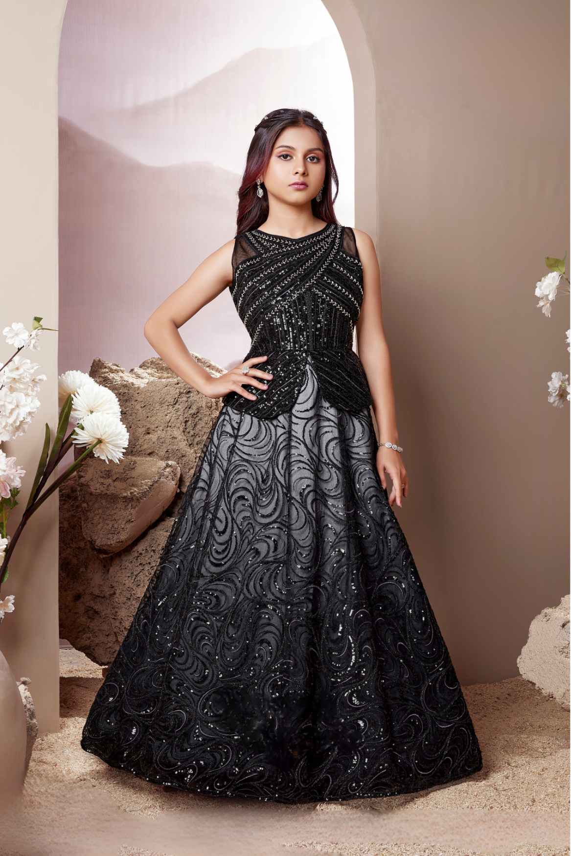 Classic Black Sequined Partywear Gown For Girls