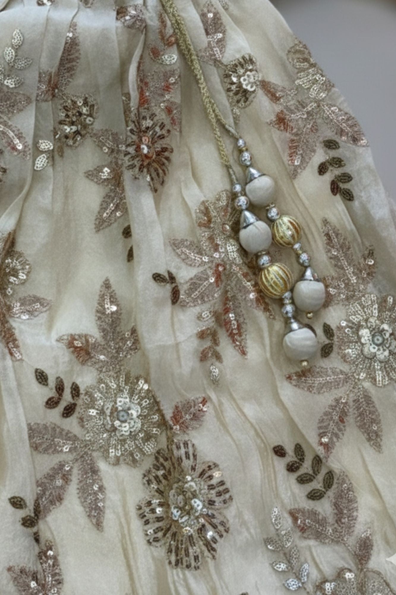 Off White Sequin And Embroidered Lehenga Choli For Girls