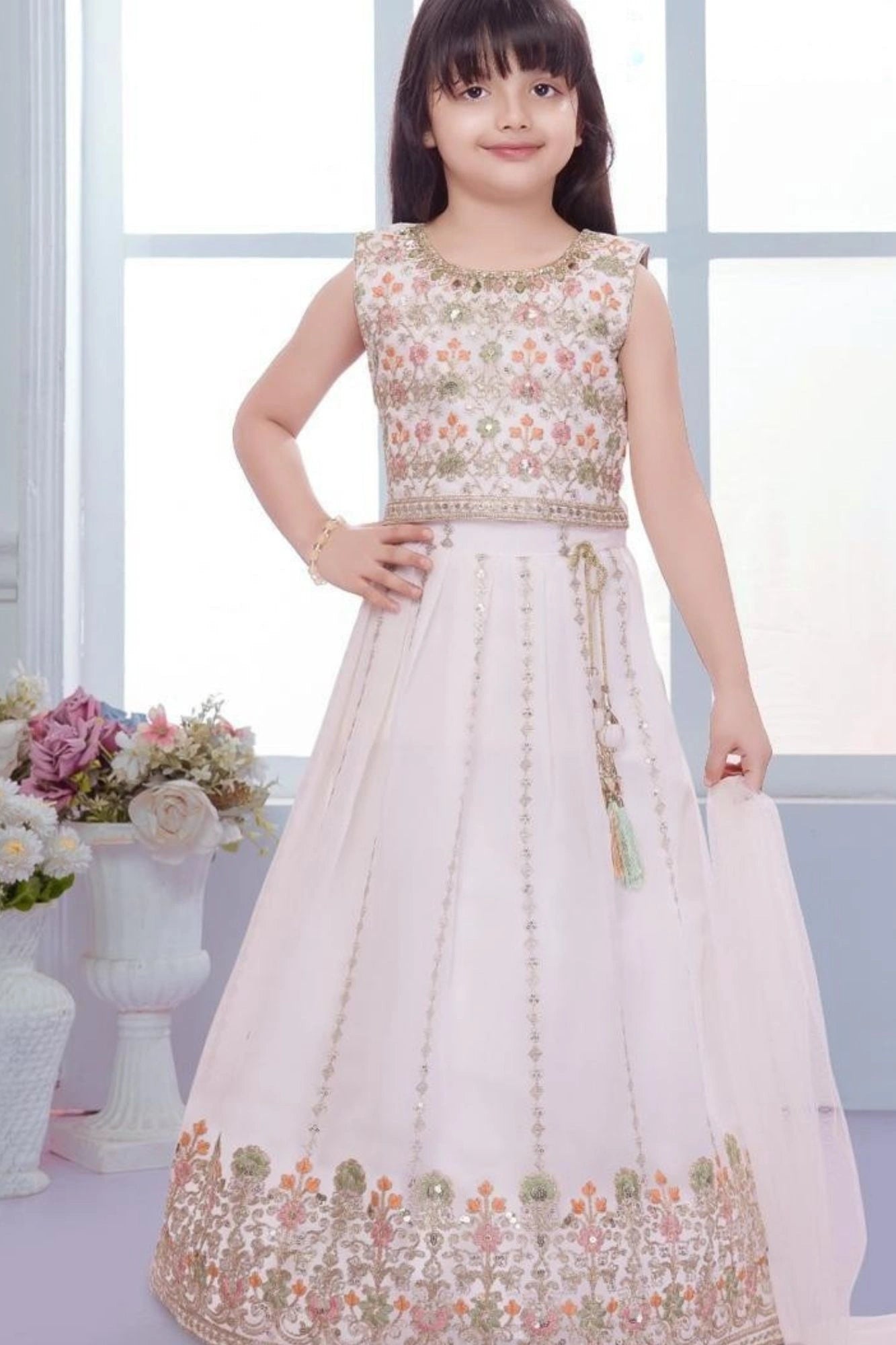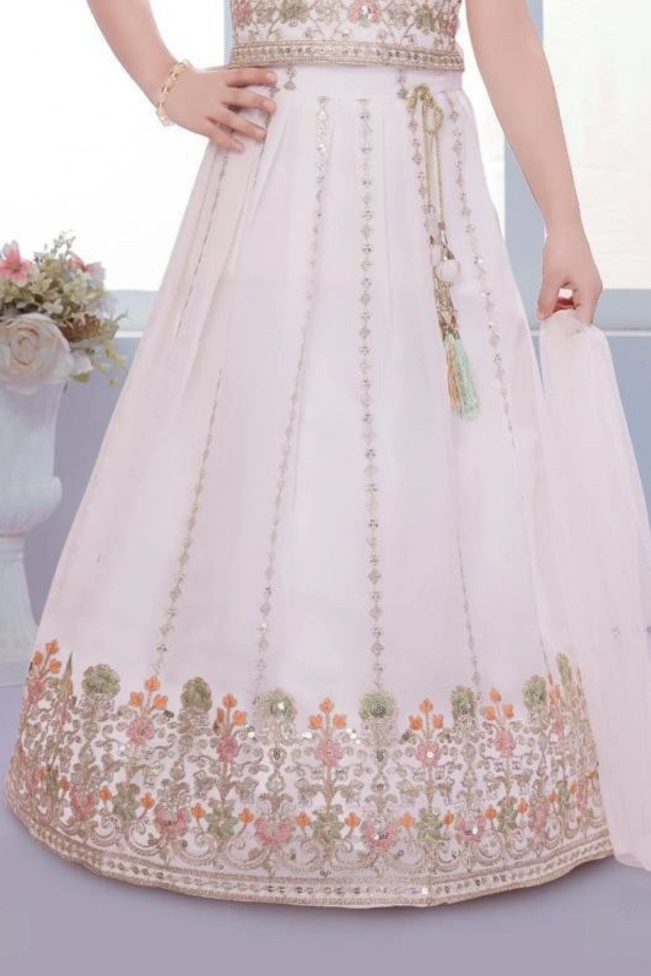 Cream Embroidered Lehenga Choli with Dupatta For Girls