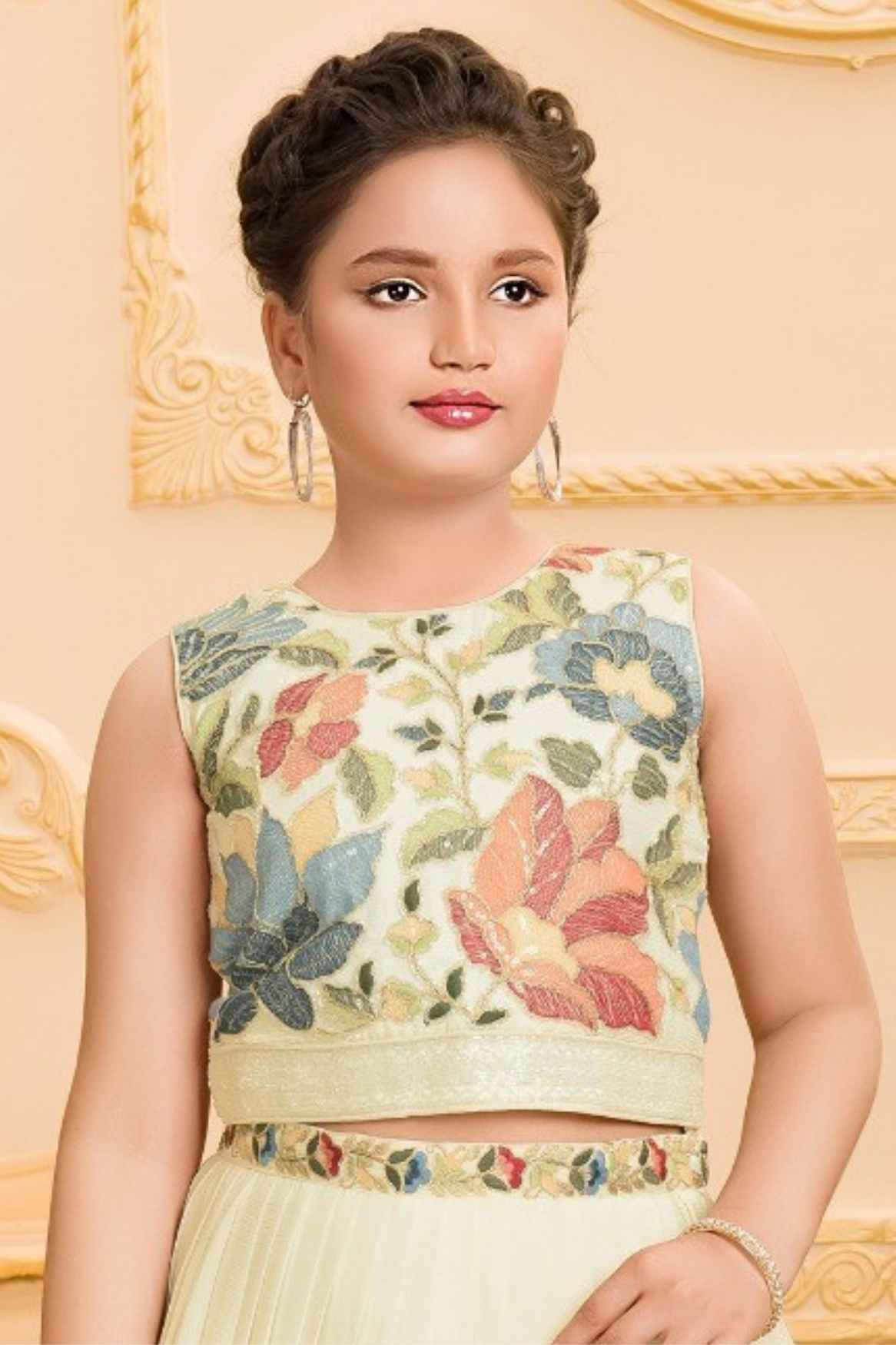 Get ready to dazzle in this Cream Sequins Work With Embroidered Lehenga Choli for Girls! The intricate sequin work and elegant embroidery make this outfit perfect for any special occasion. Made with high-quality fabric, it will not only look stunning but also feel comfortable all day long. A must-have for every girl's wardrobe.