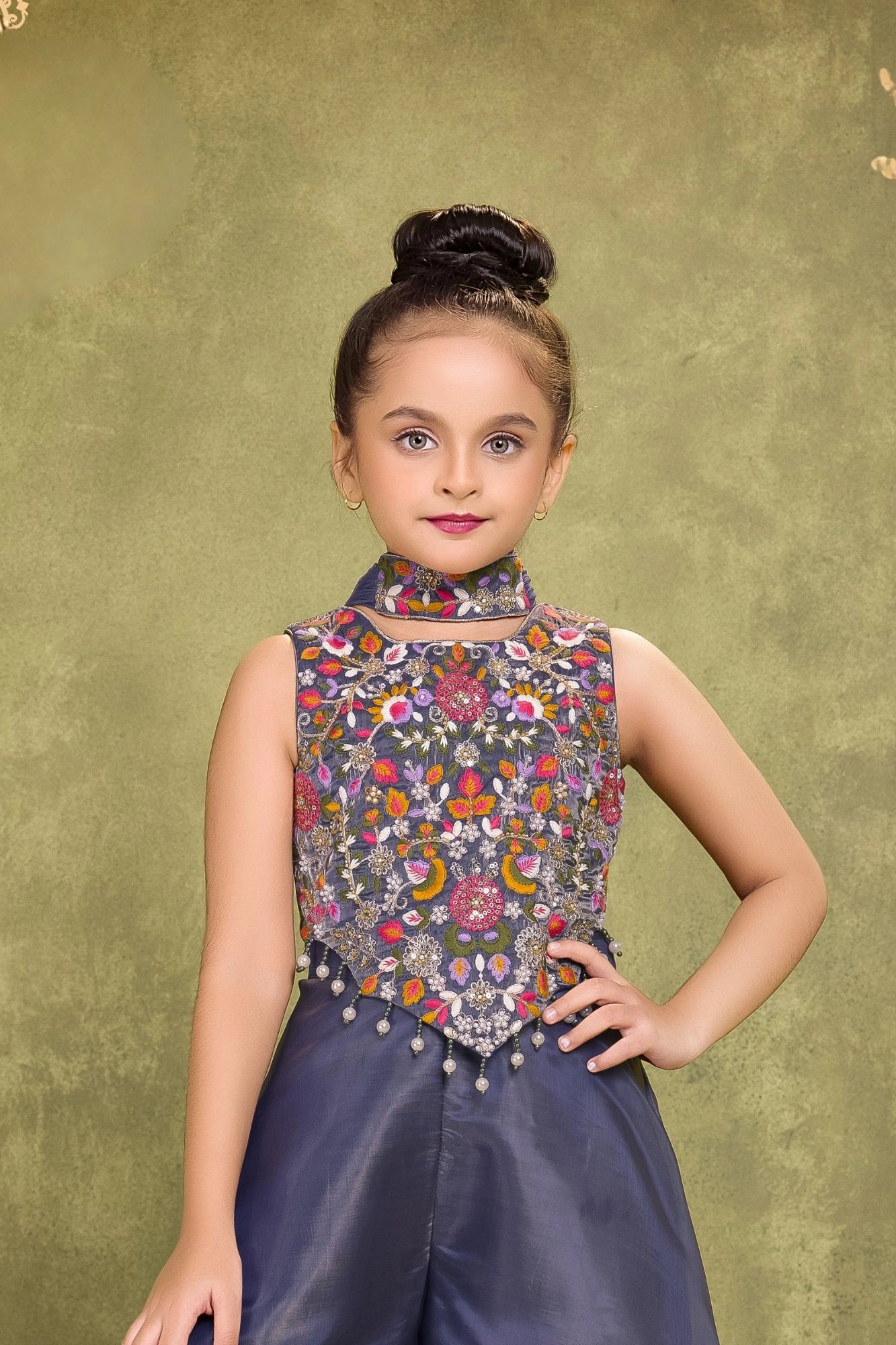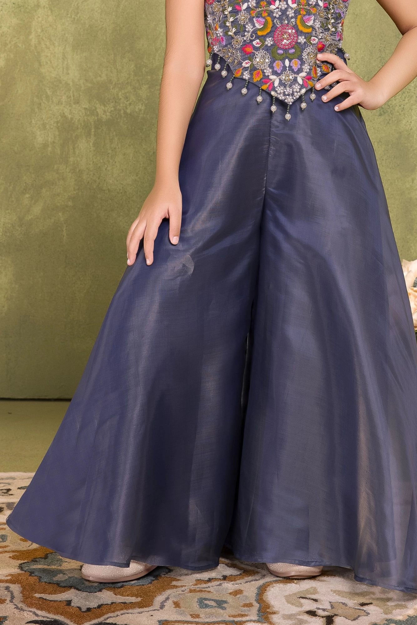 Dark Blue Sequins Work With Thread Embroidery For Palazzo Set For Girls