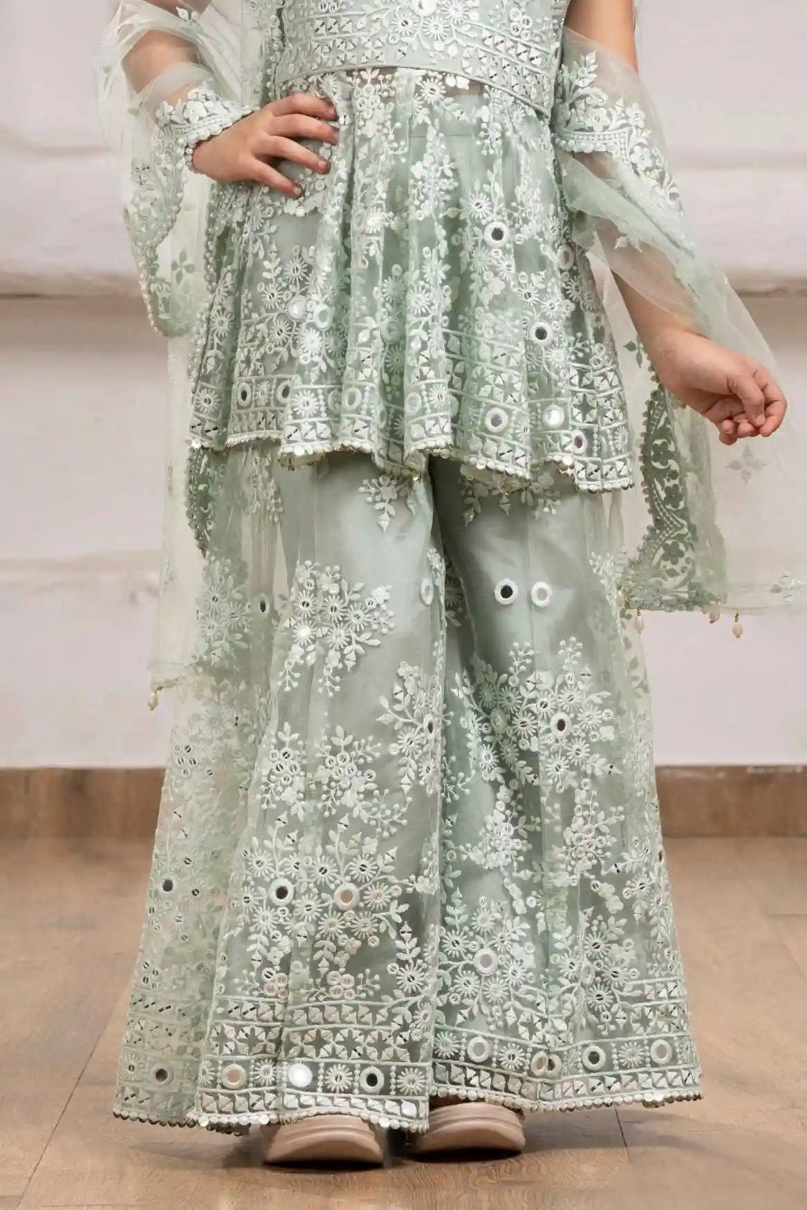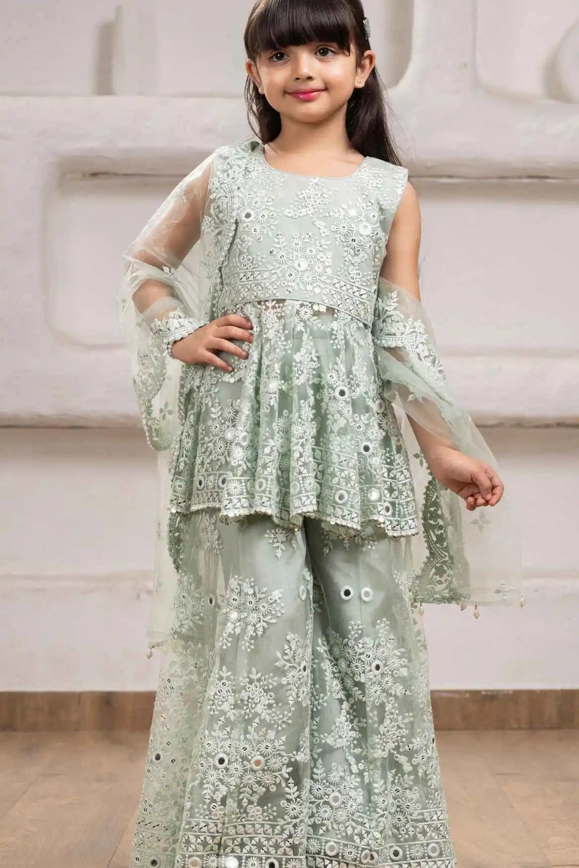 Teal Blue Floral Embroidered Ethnic Lehenga Choli for Girls