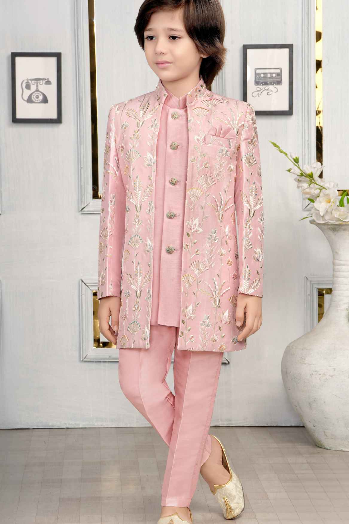 Ethnic Pink Embroidered Indo-Western Sherwani Style Suit For Boys
