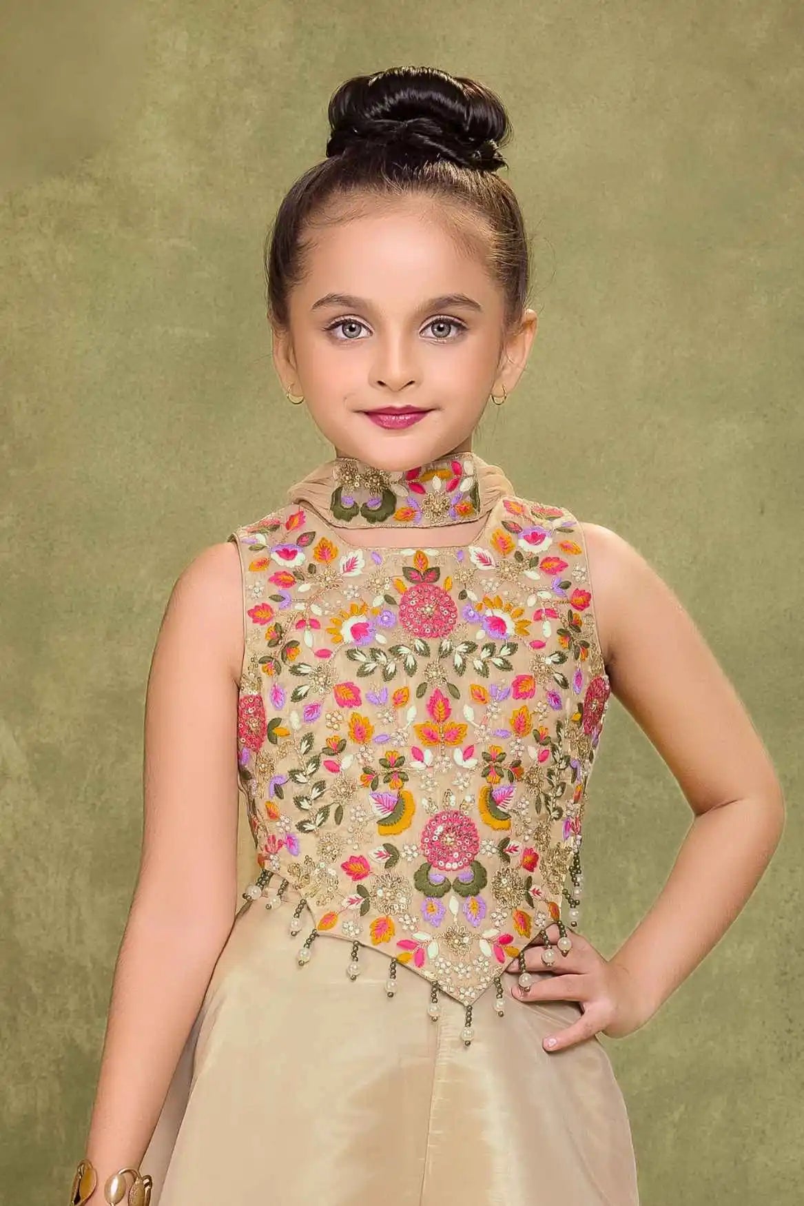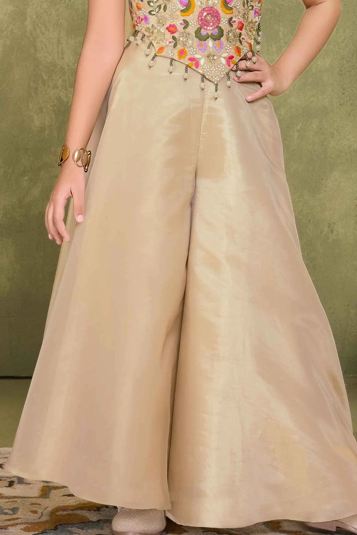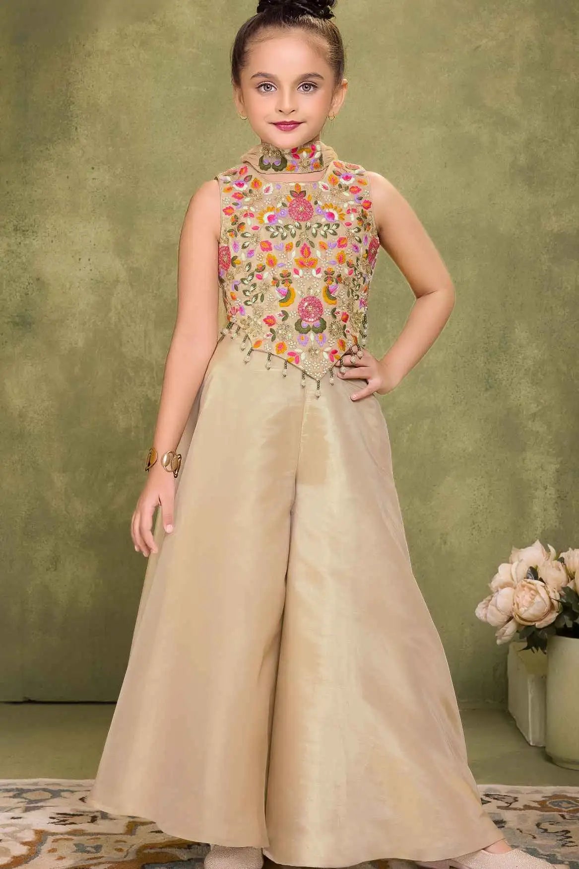 Fawn Sequins Work With Thread Embroidery Palazzo Set For Girls