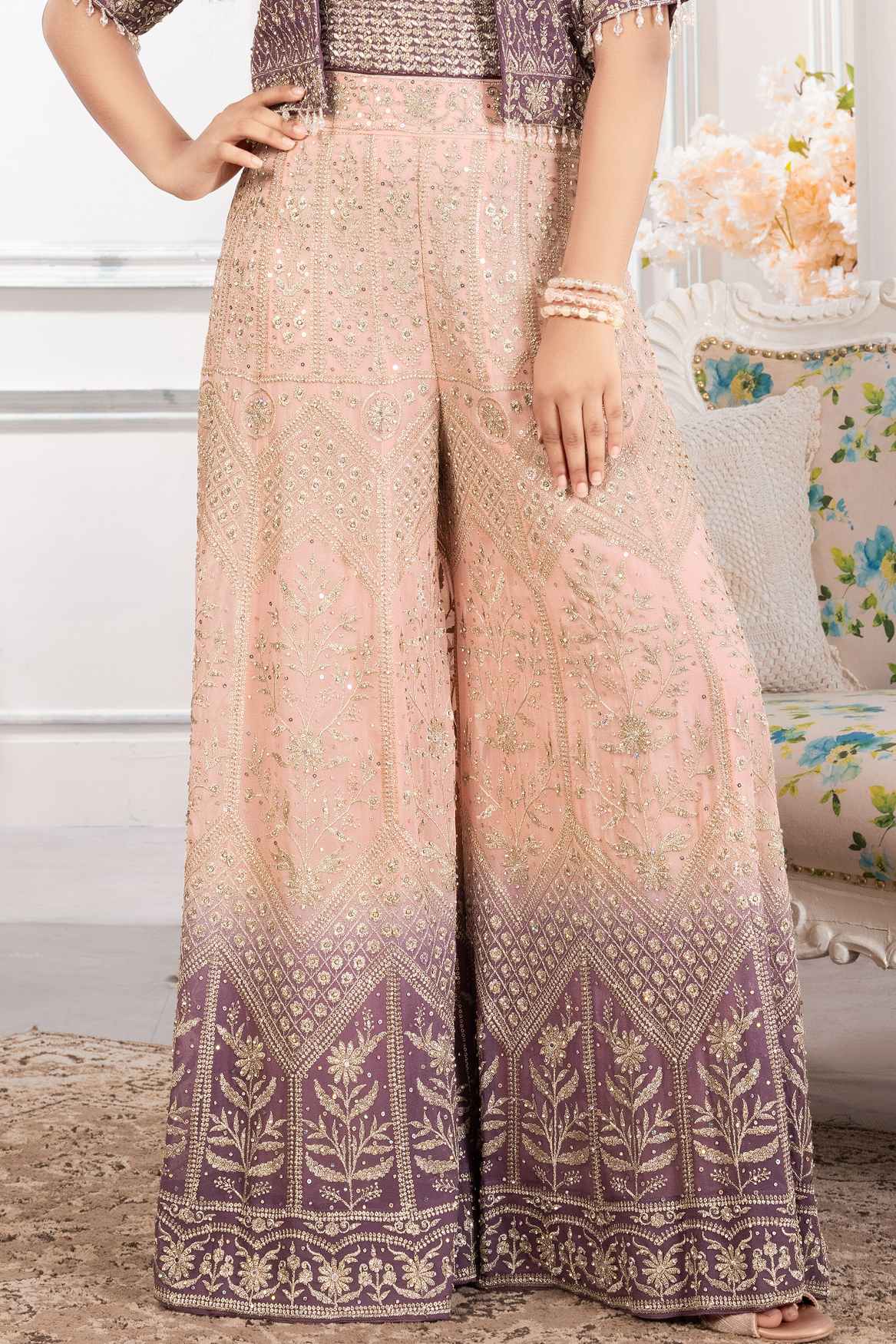 Grape Half Sleeves And Sequin Embroidered Palazzo Set For Girls