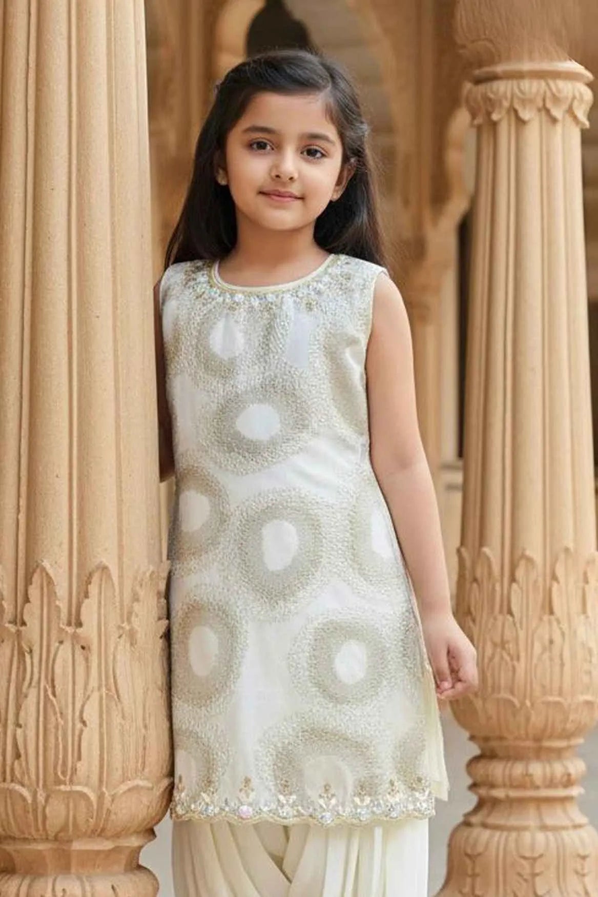 Ivory Gold Textured Kurti with Cream Patiala Set For Girls