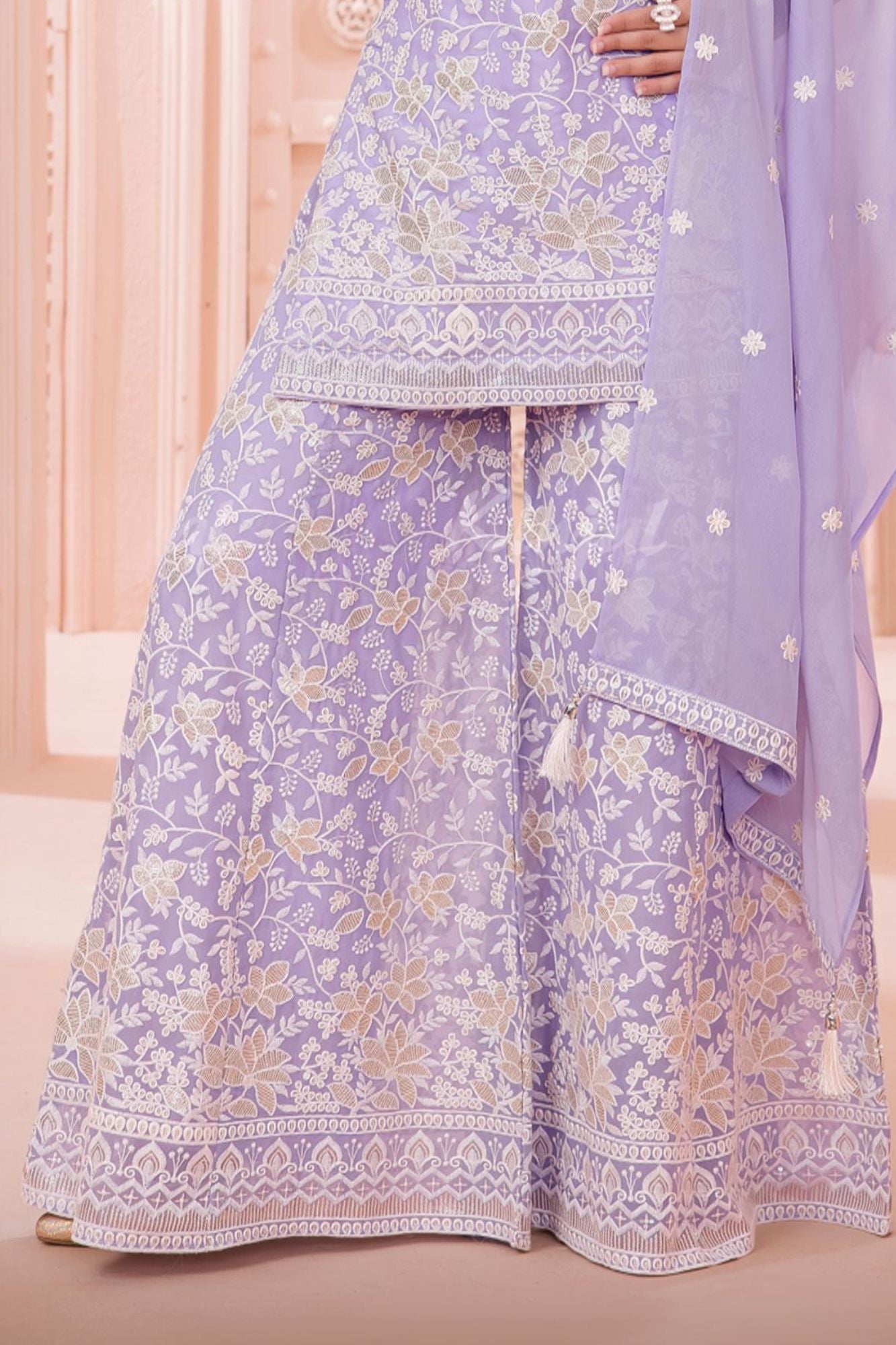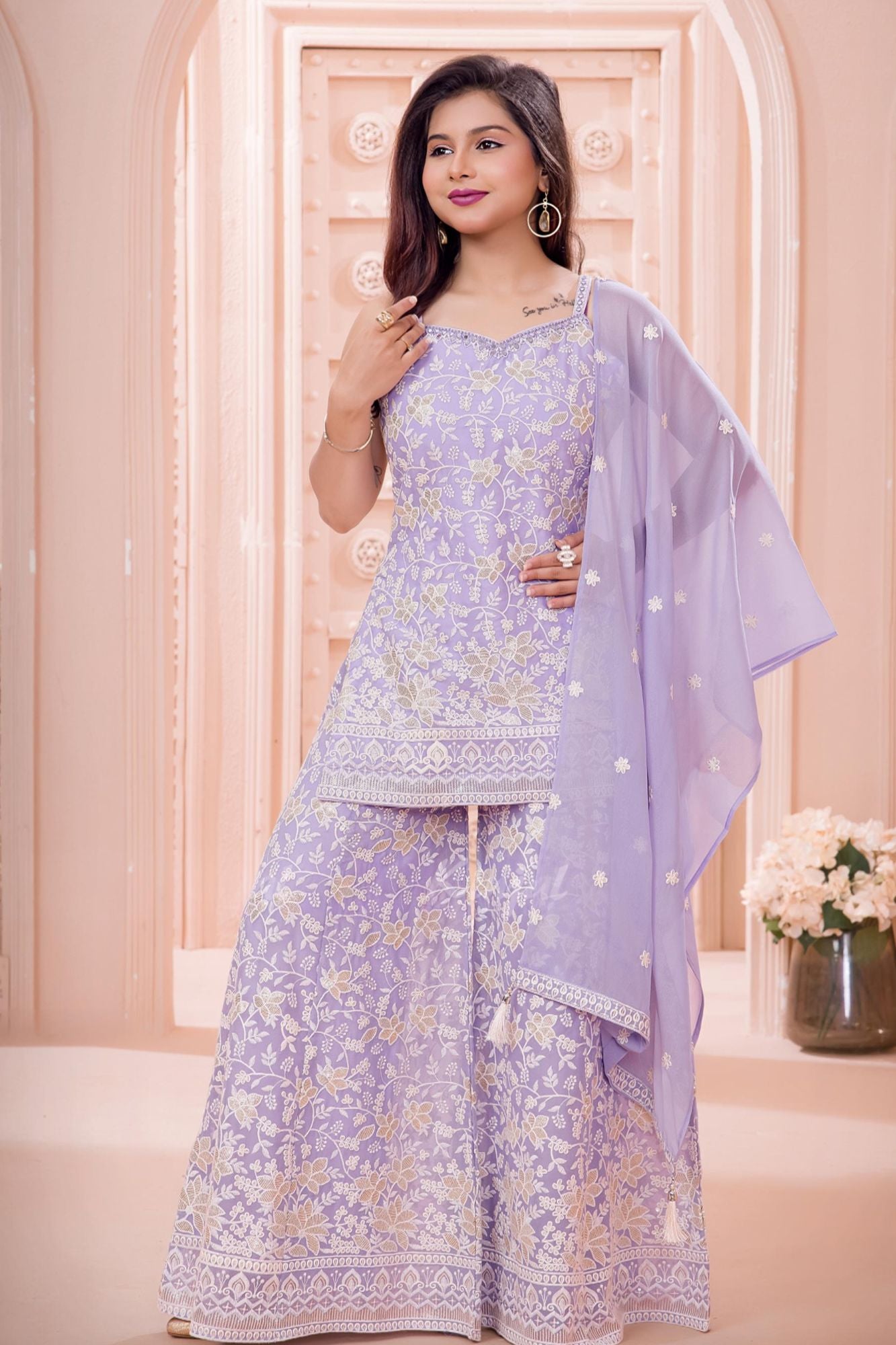 Lavender Embroidered Palazzo Set with Dupatta For Girls