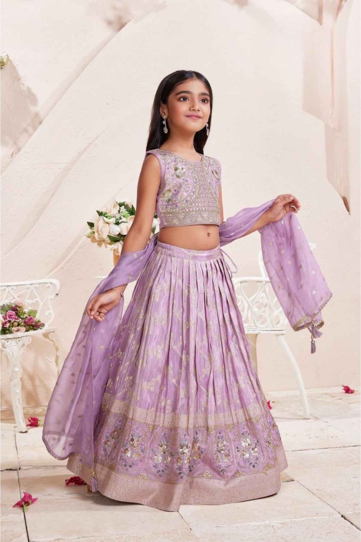 Elevate your little girl's style with our Lavender Sequins Embroidered and Stone Work Lehenga Choli Set! The delicate lavender color and intricate sequin and stone work add a touch of elegance to this traditional outfit. Perfect for weddings, festivals, and special occasions. Stand out in style and make your little one sparkle!