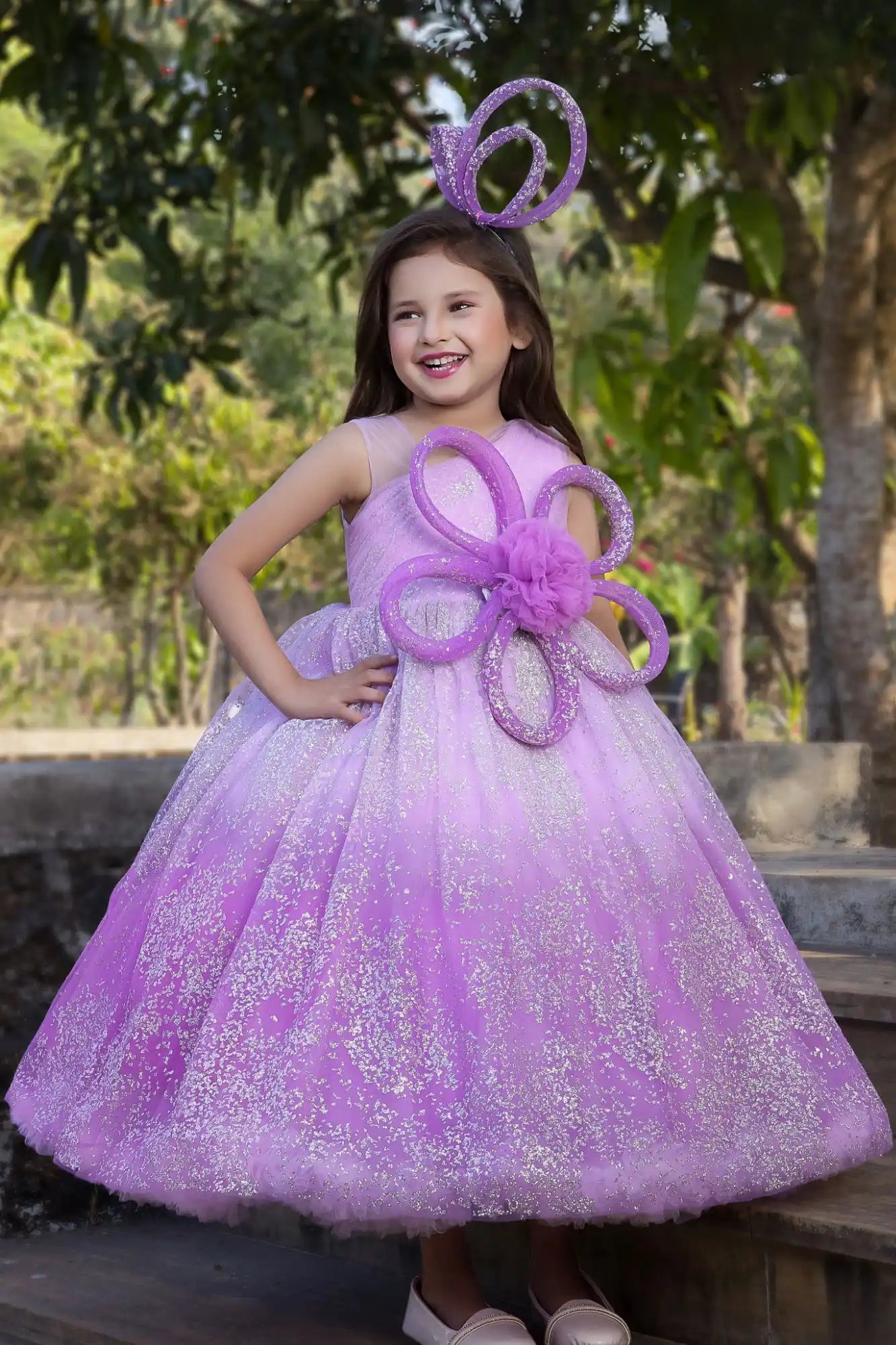 Lilac Ombre Sparkle Embellished Party Gown for Girls