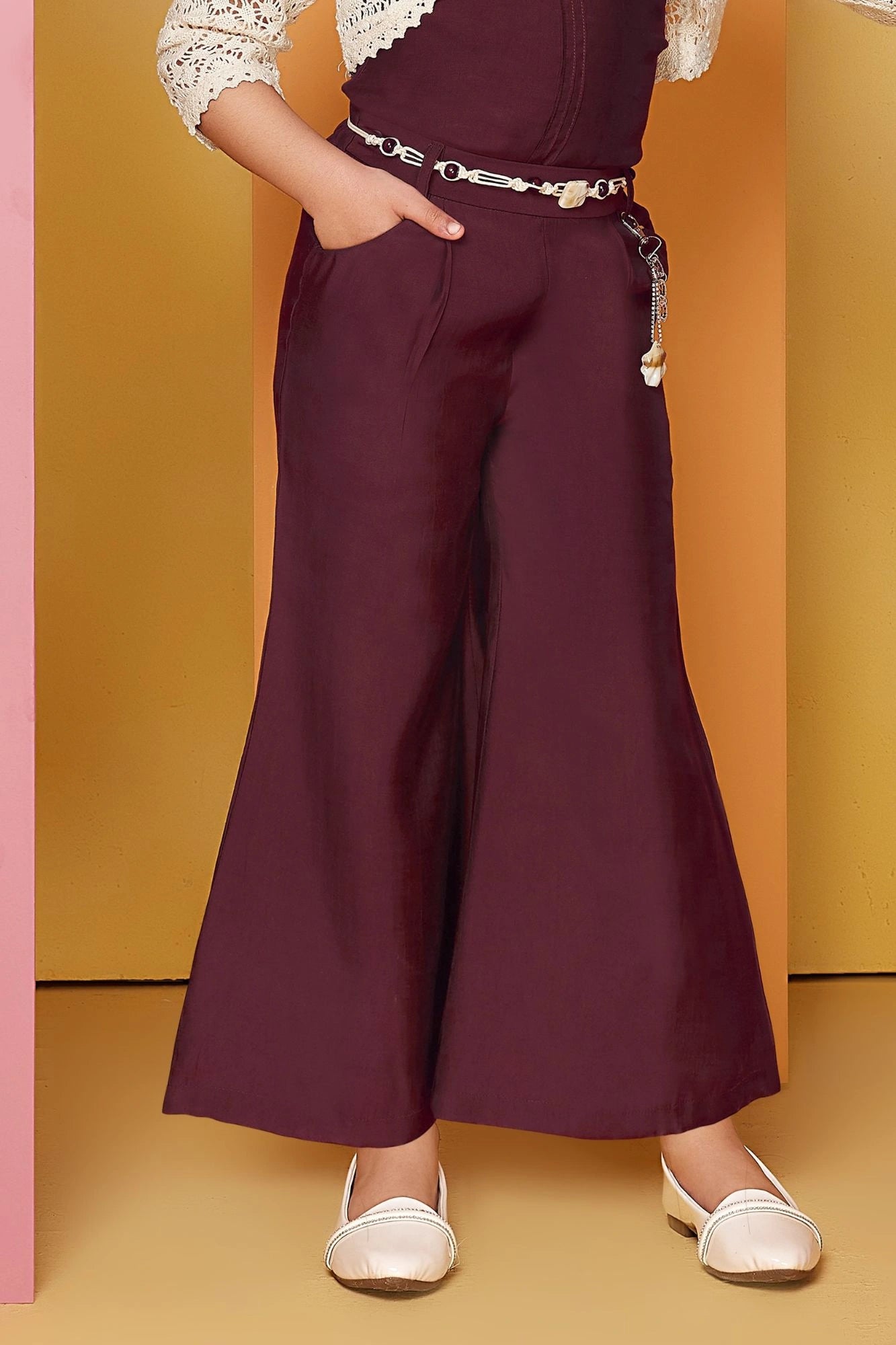 Maroon Palazzo Set with Crochet Shrug For Girls