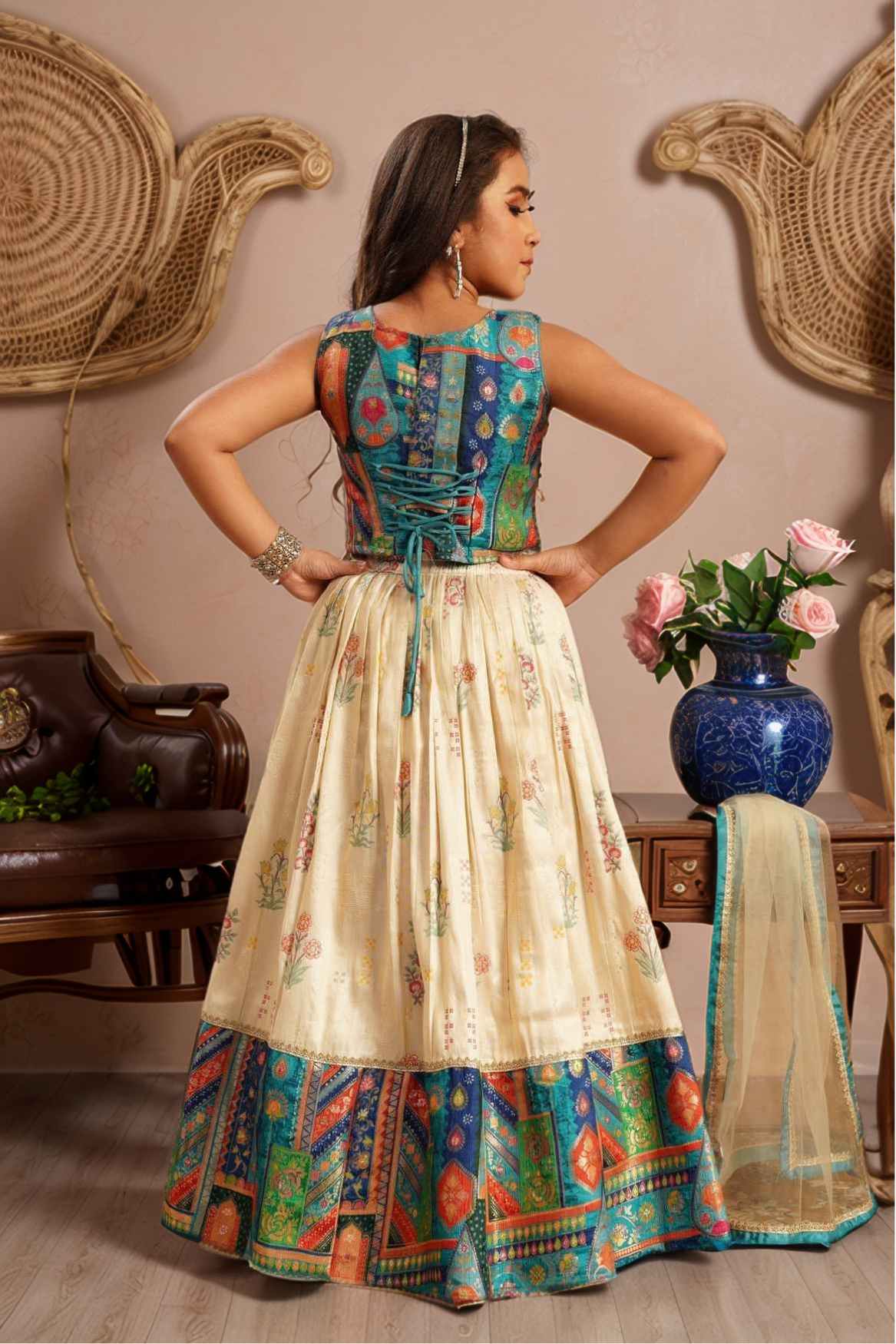 Multicolor Banarasi Silk Pattu Pavadai With Stone Work For Girls