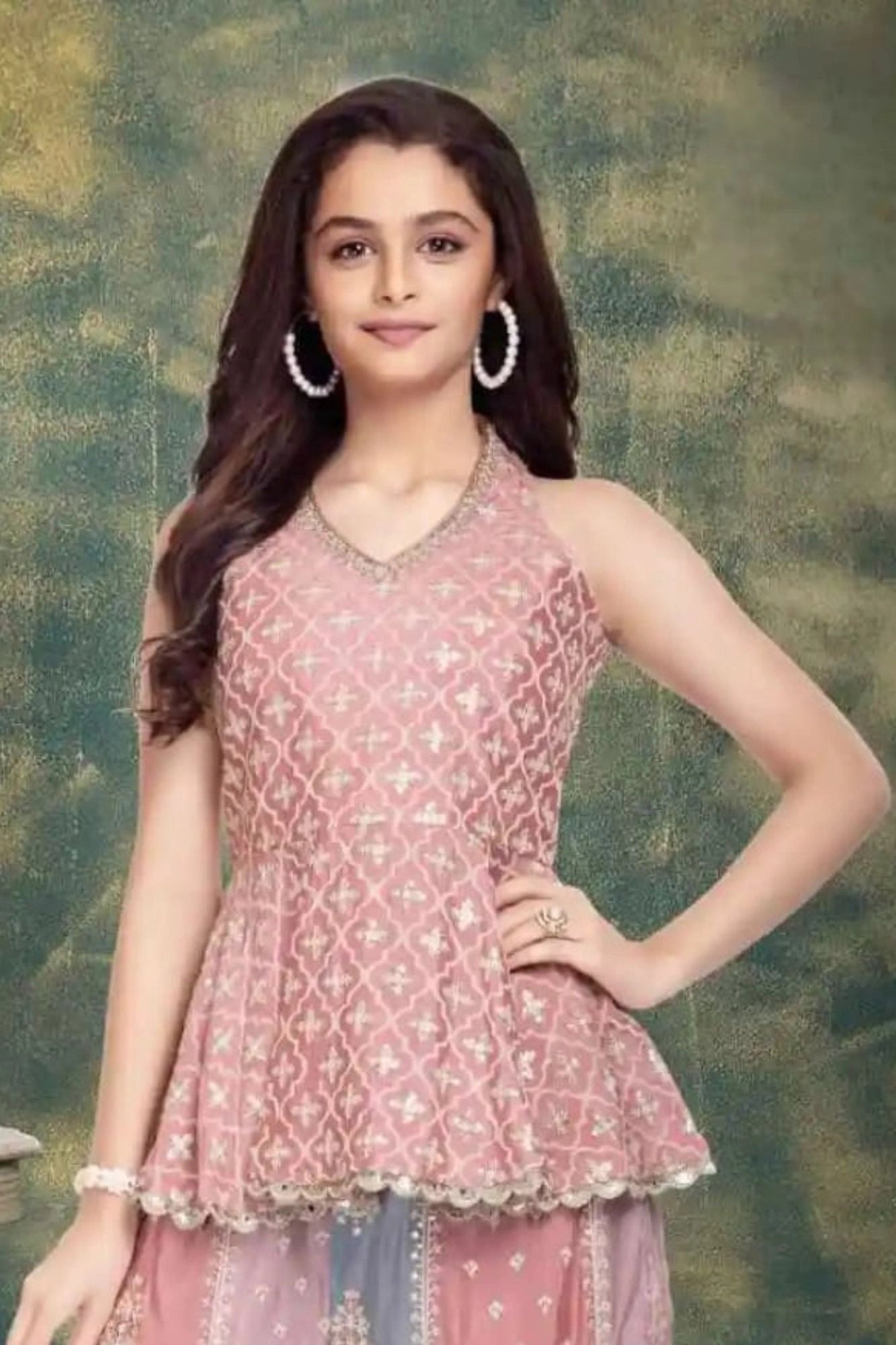 Multicolor Embroidered Palazzo Set with Dupatta Palazzo Set For Girls