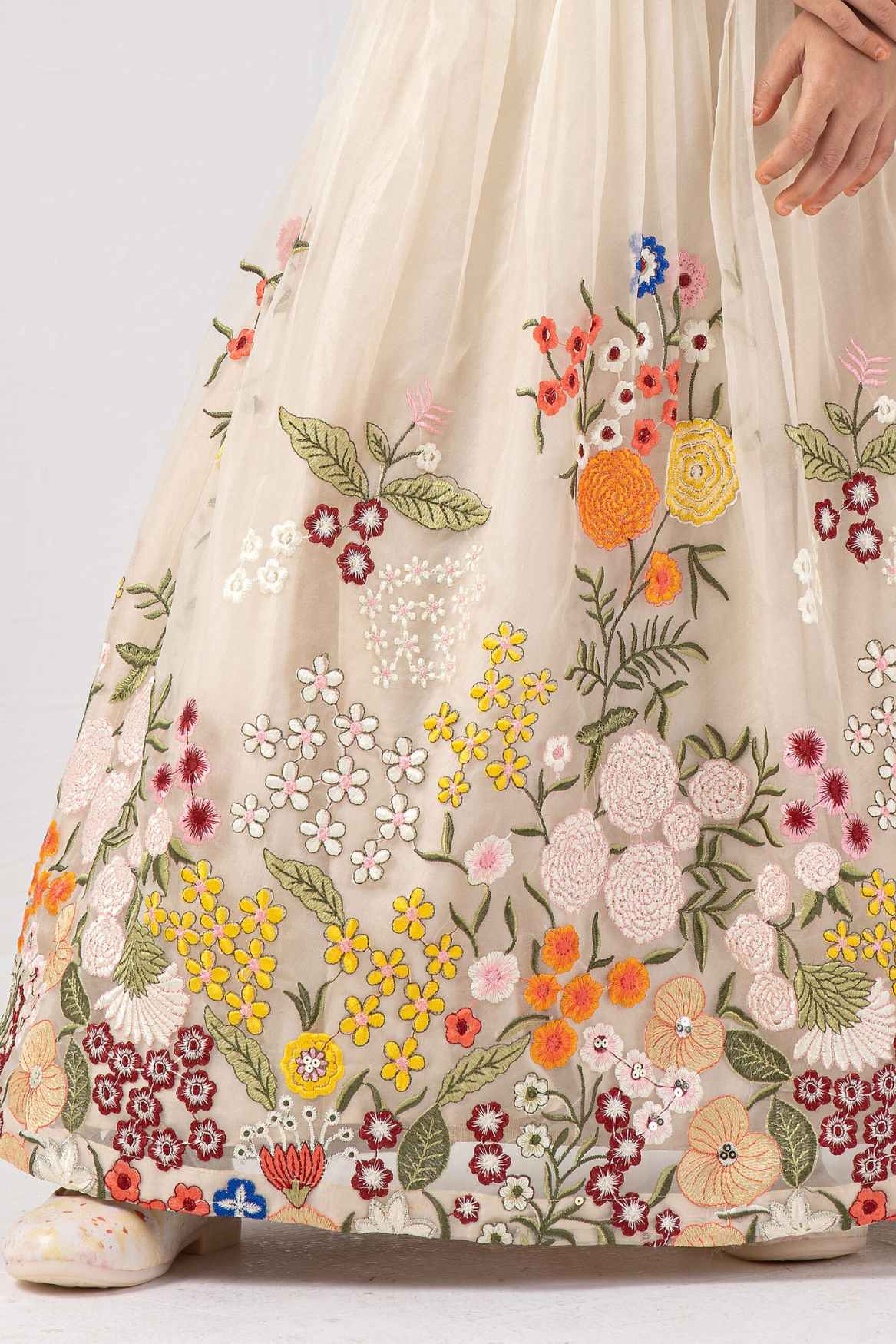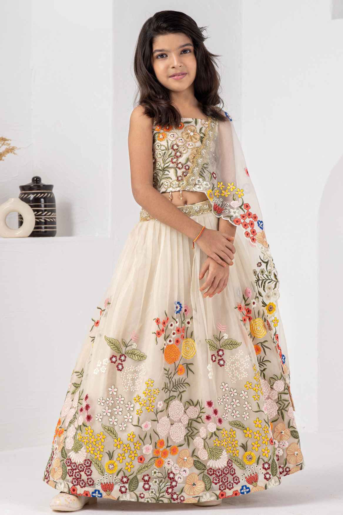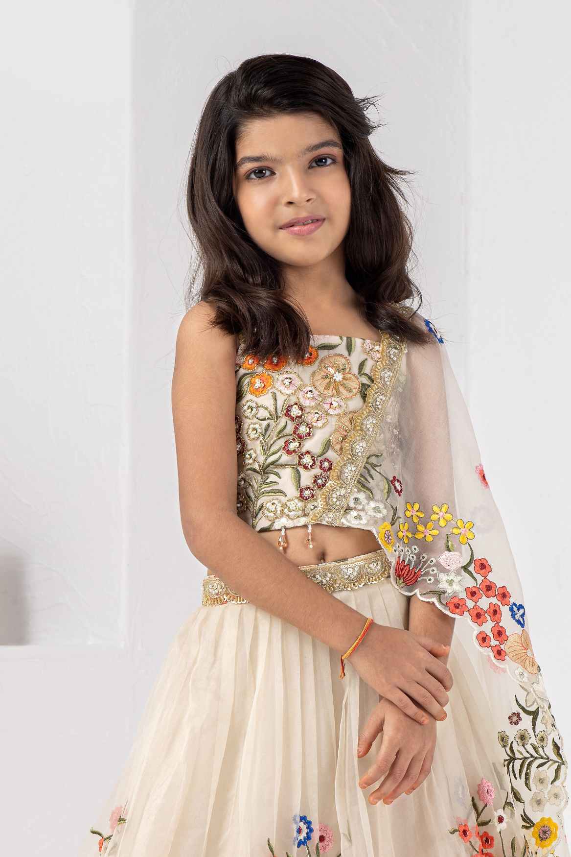 Off White Sequin And Embroidered Lehenga Choli For Girls