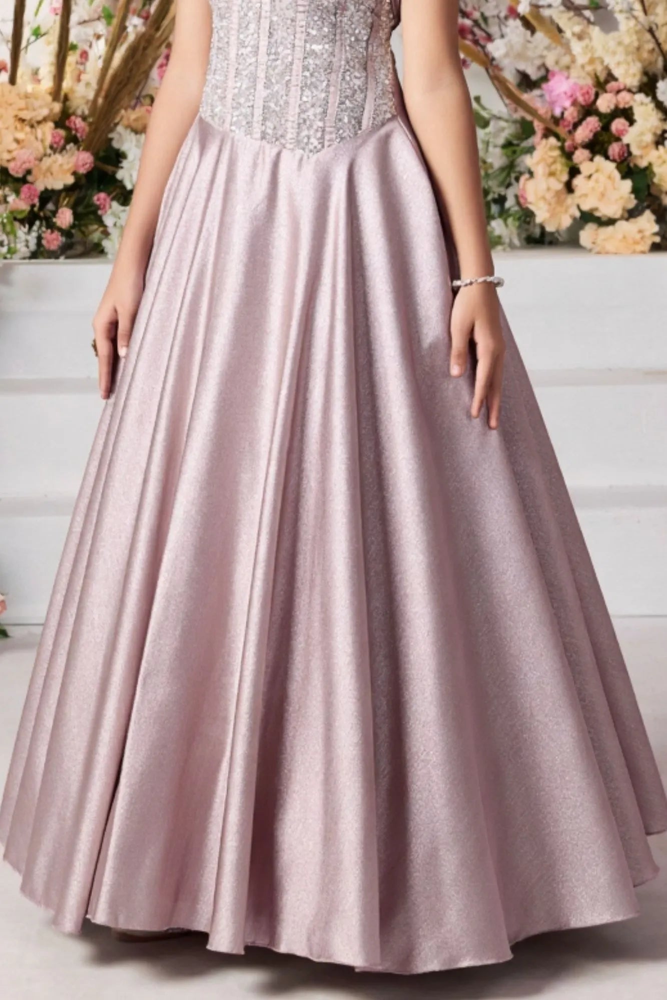 Onion Pink Sequin Embellished Gown For Girls