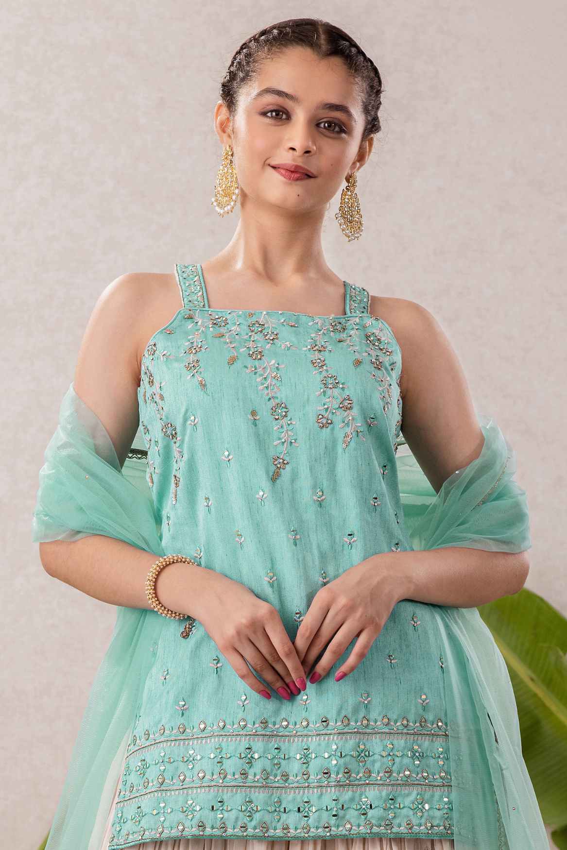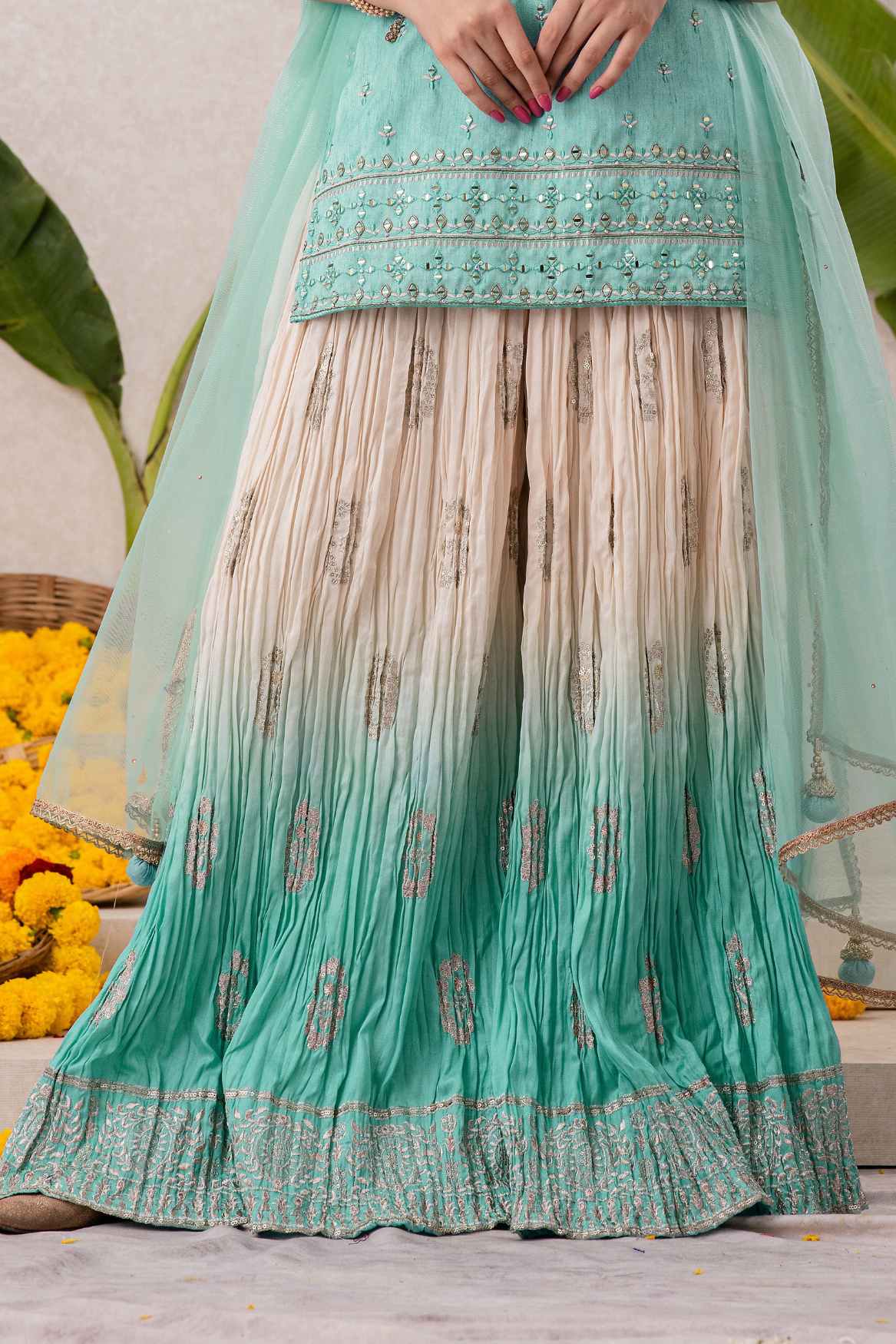 Pista Green Mirror Work And Embroidery Palazzo Set For Girls