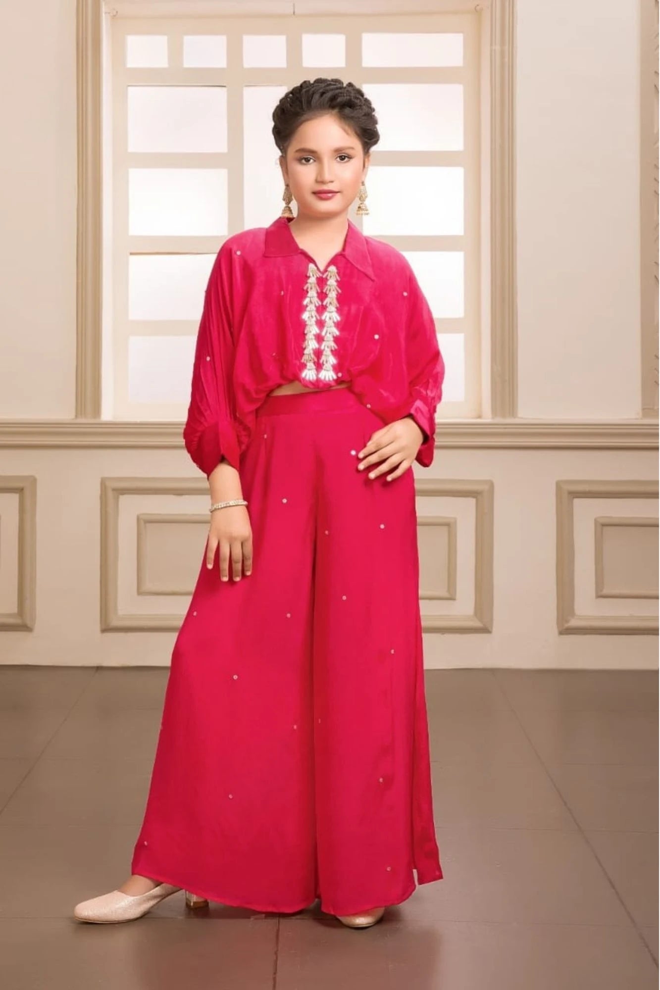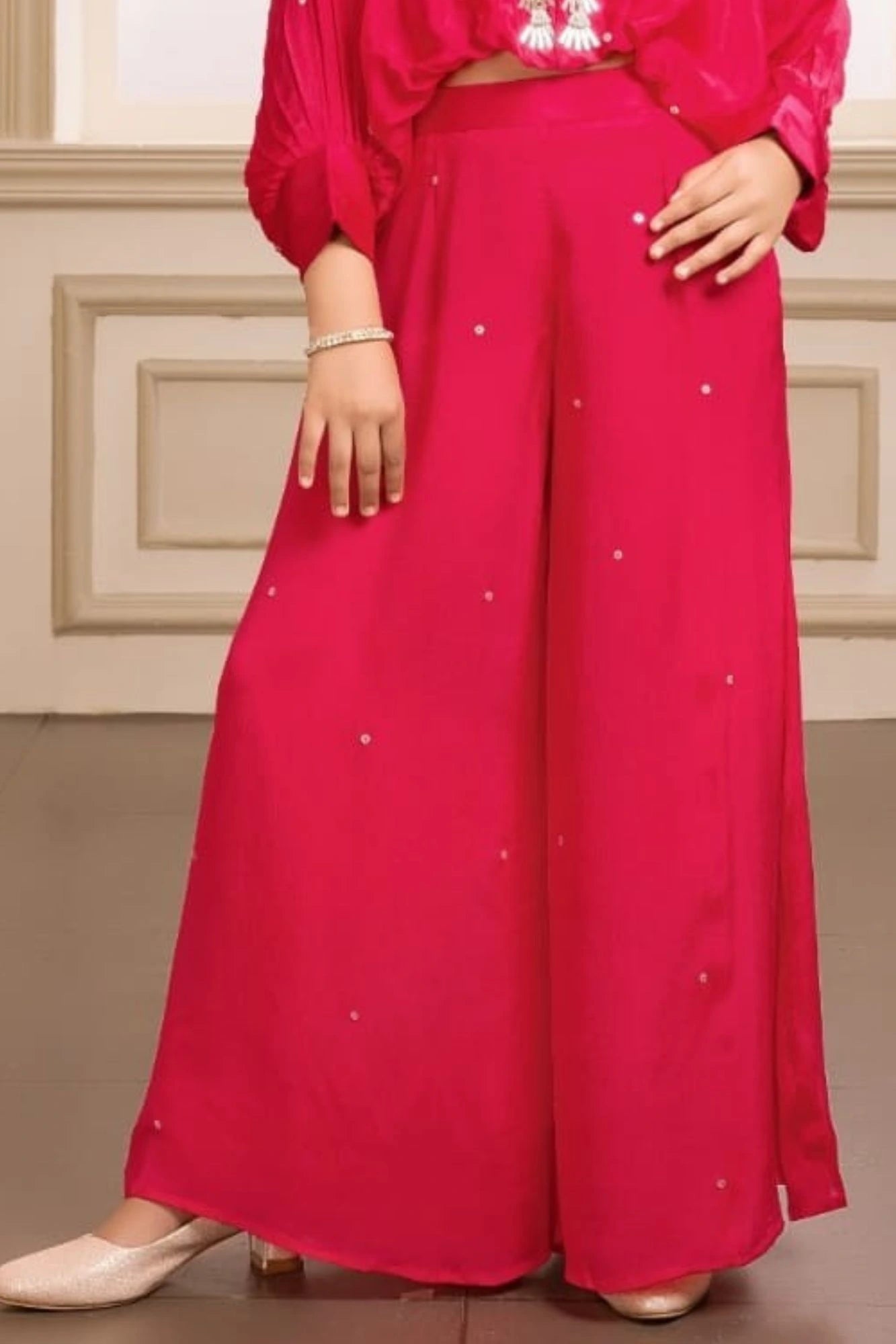 Rani Pink Embellished Palazzo Set with Tassel Shirt for Girls