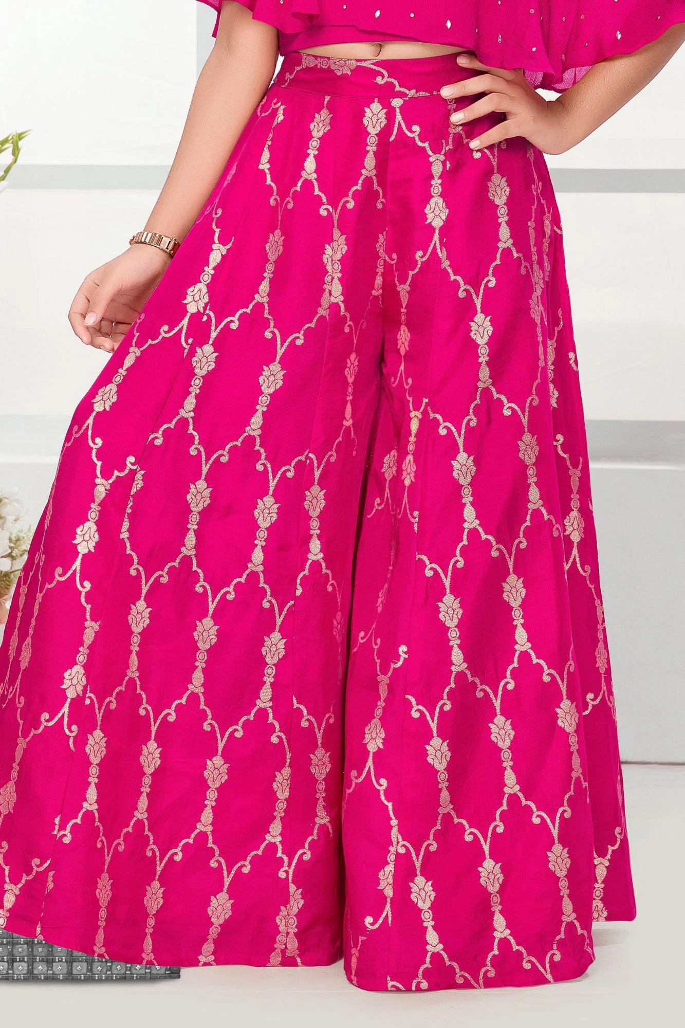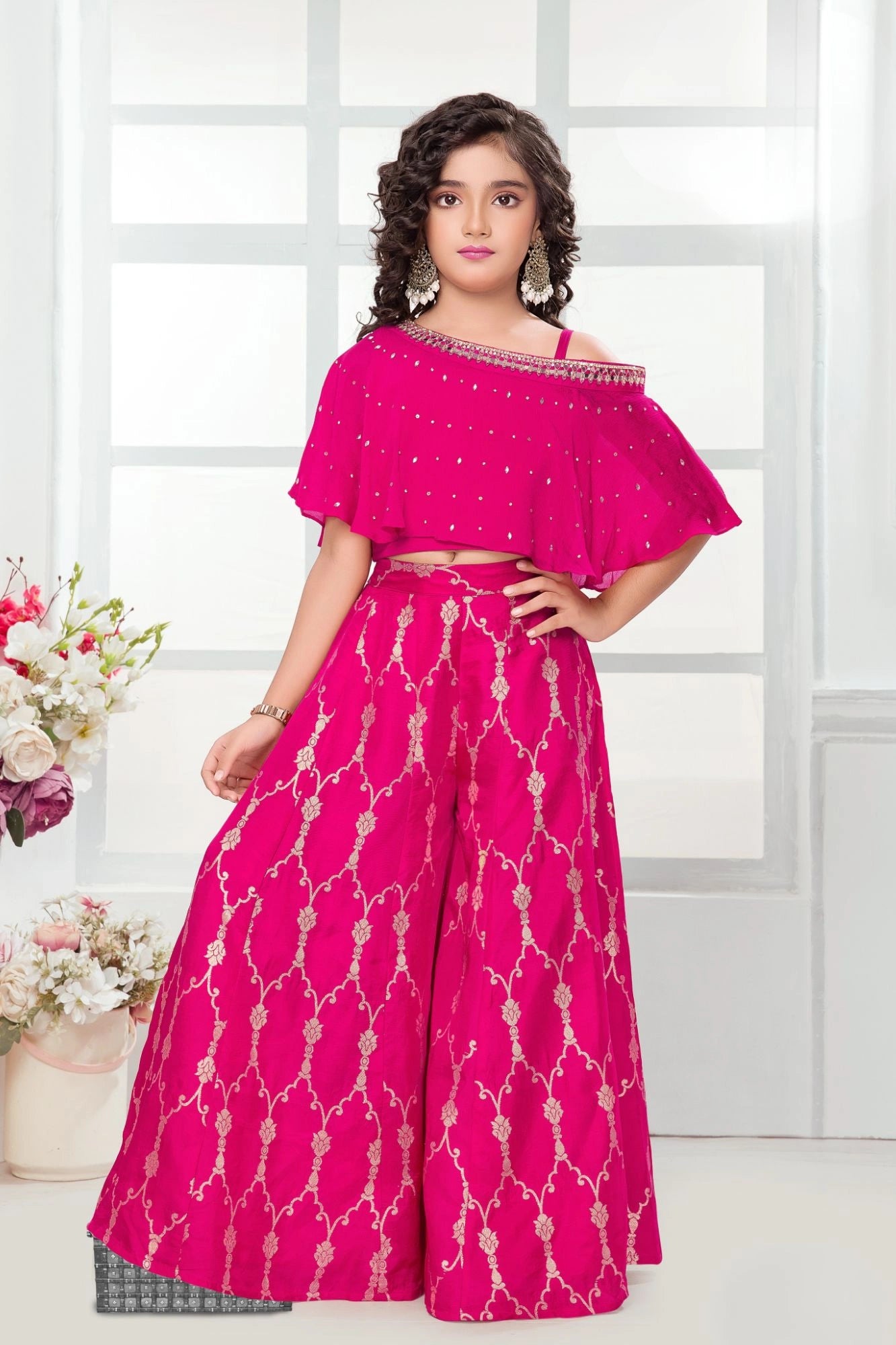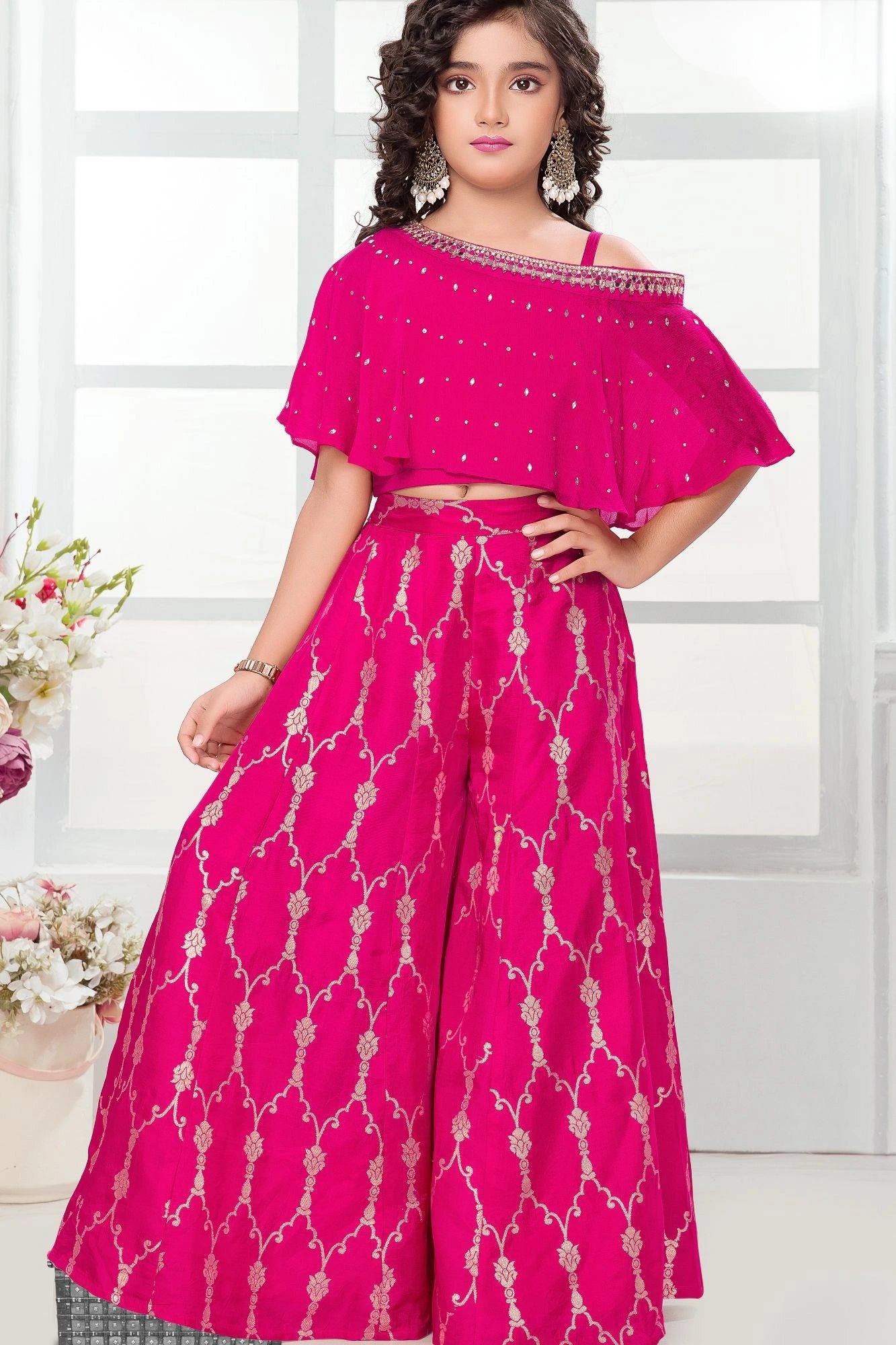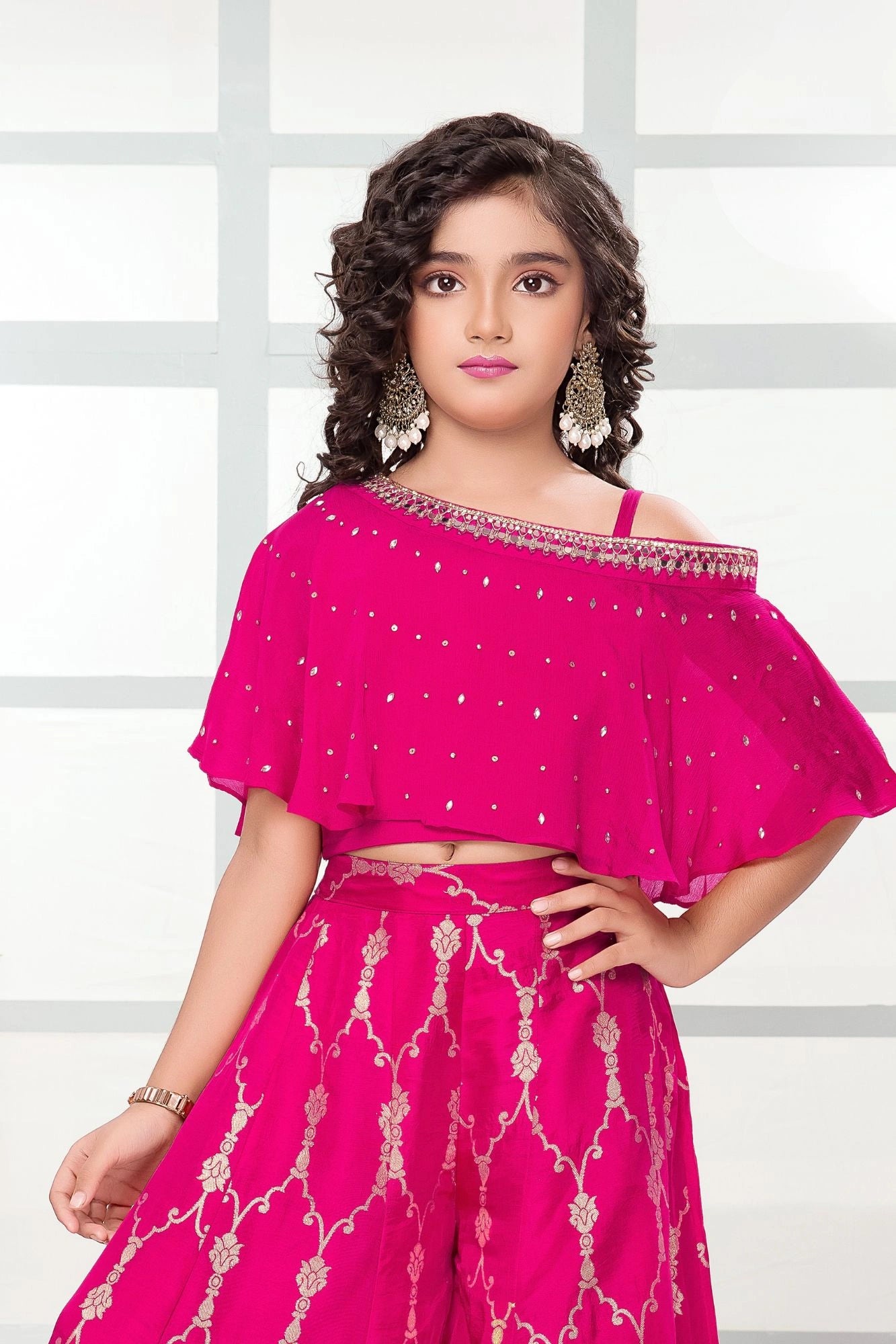 Rani Pink Off Shoulder Embroidered Palazzo Set For Girls