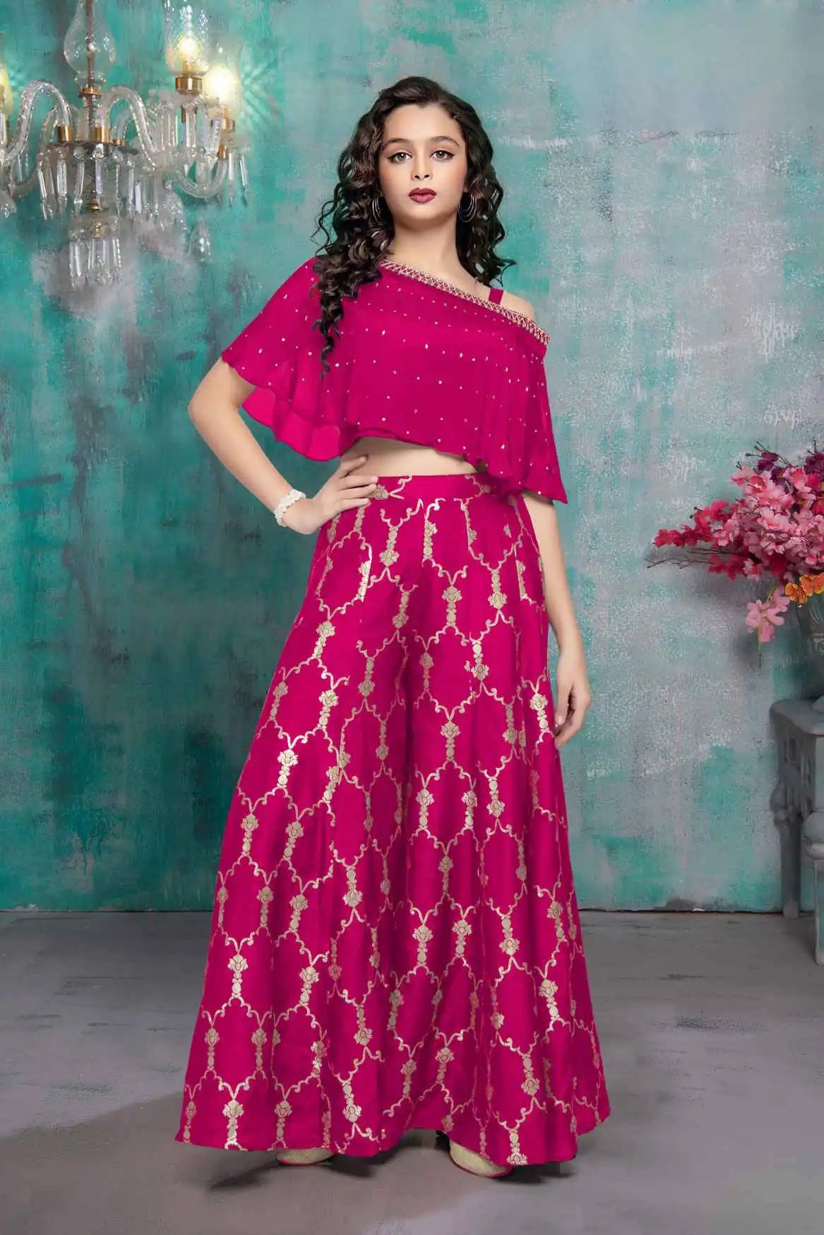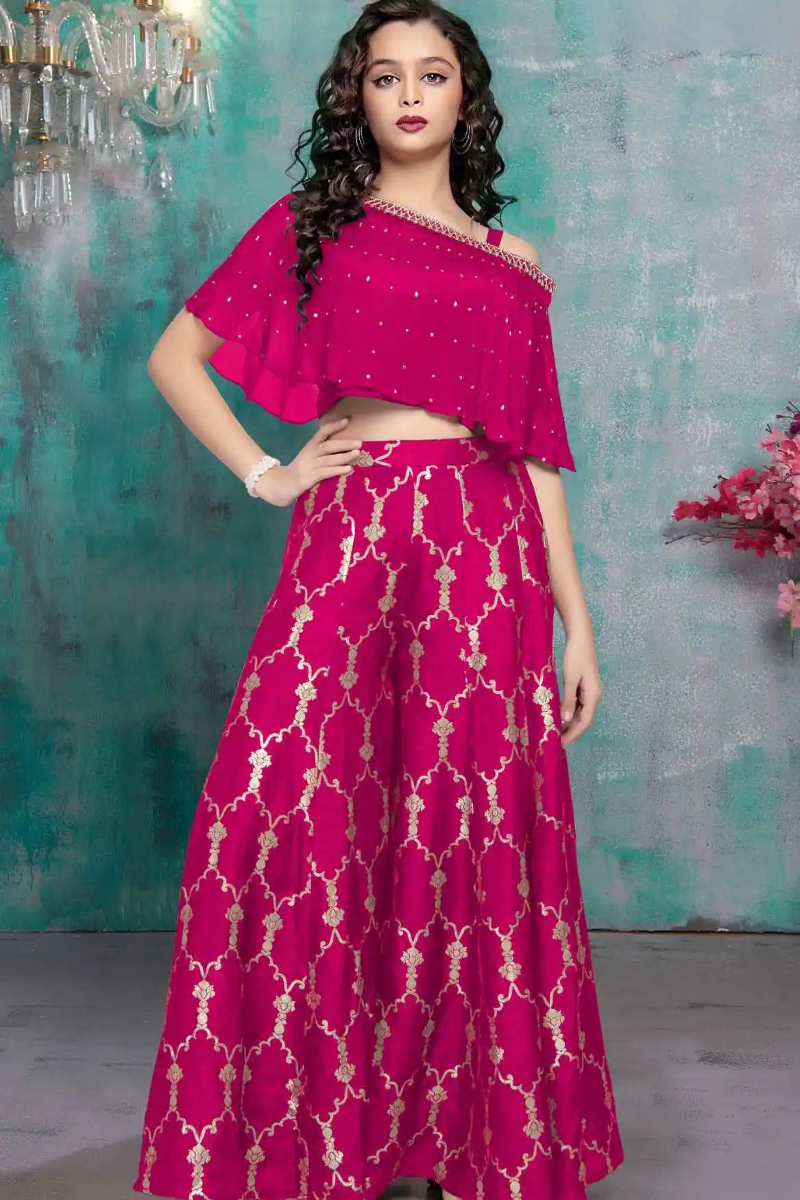 Teal Blue Floral Embroidered Ethnic Lehenga Choli for Girls