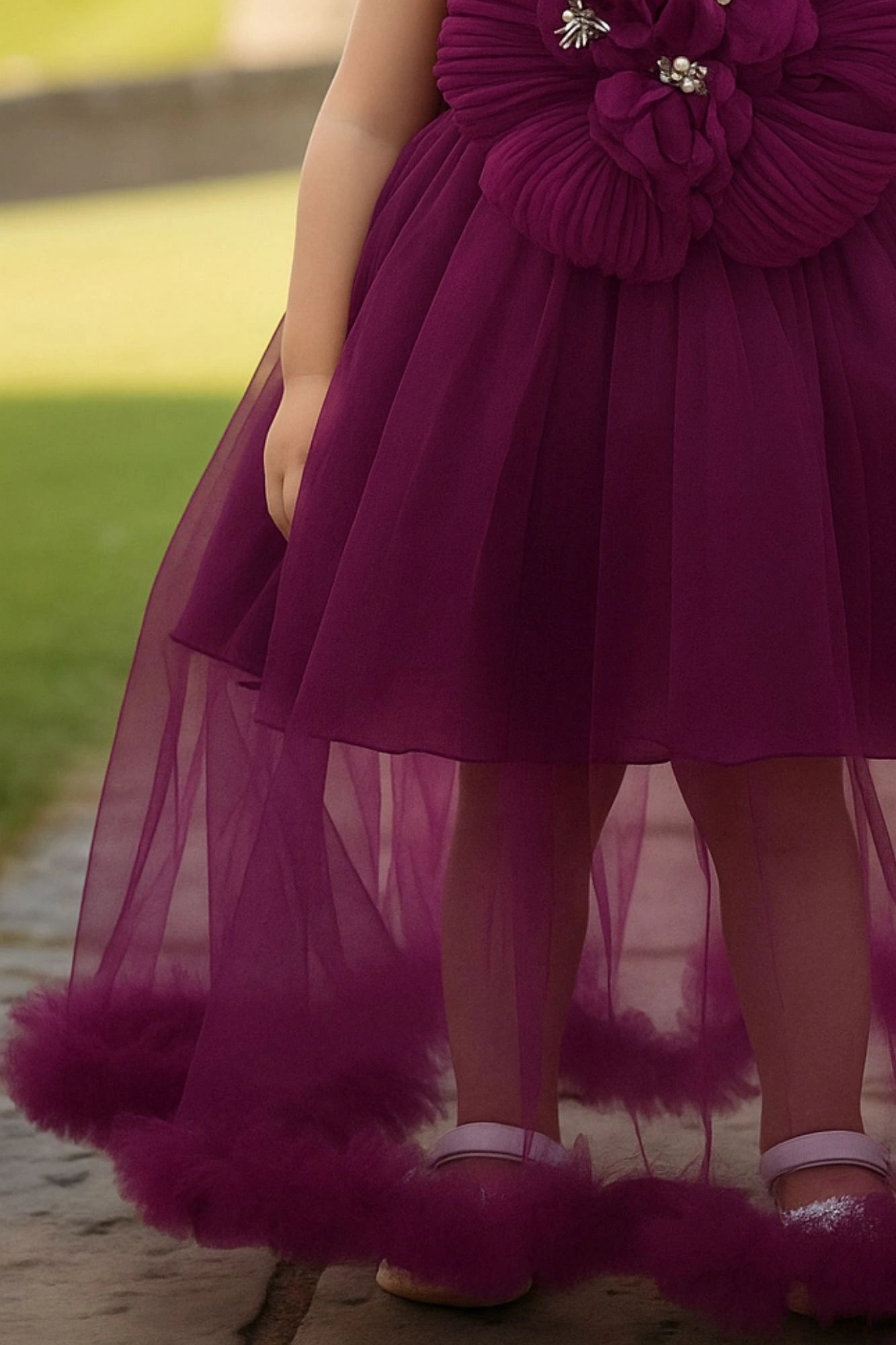 Wine Party Frock with Oversized Floral Appliqué For Girls