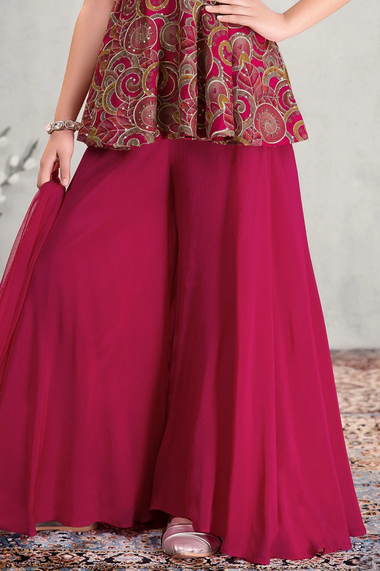 Rani Pink Peplum Embroidered Palazzo Set for Girls