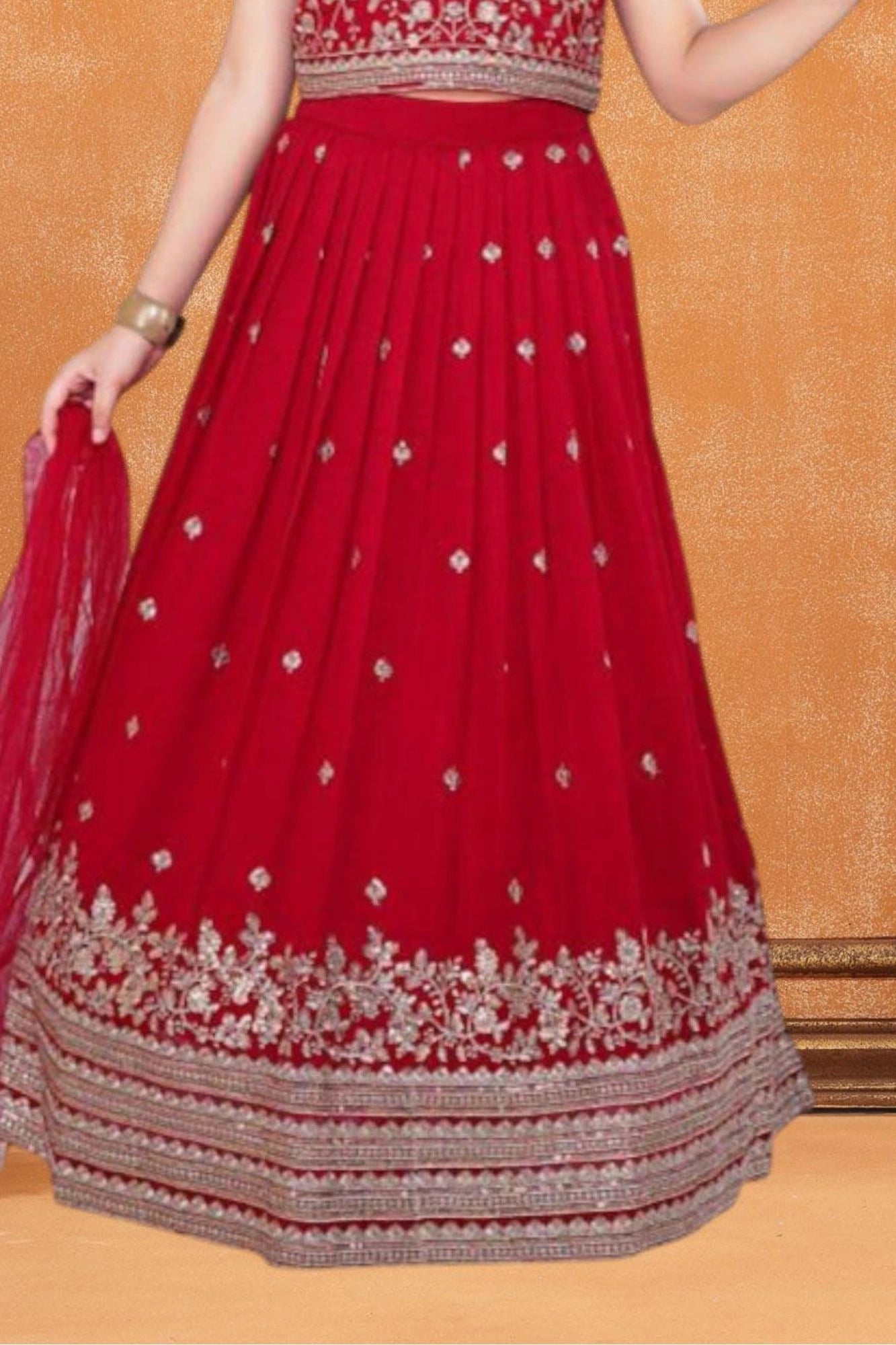 Red Embroidered Lehenga Choli with Dupatta For Girls