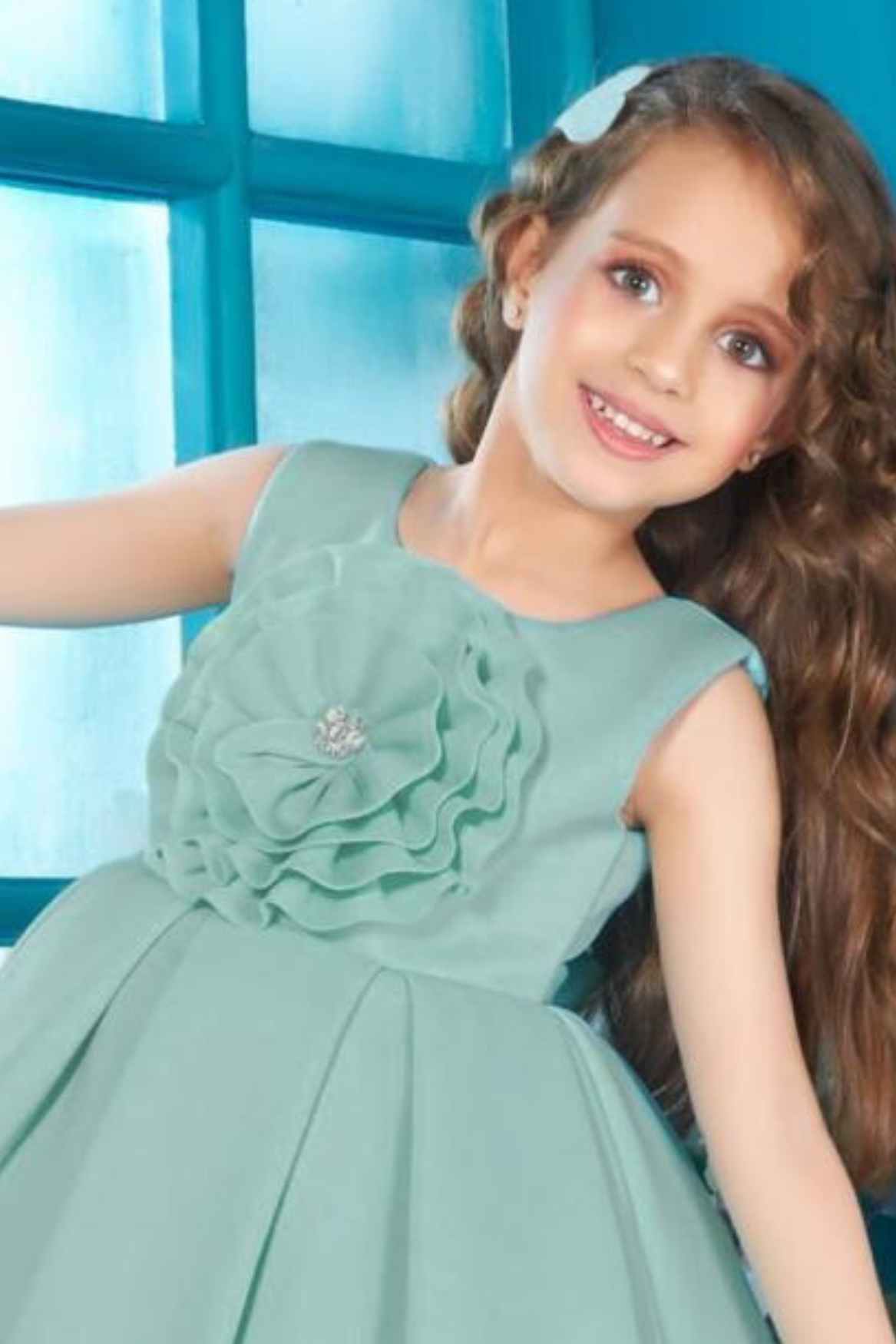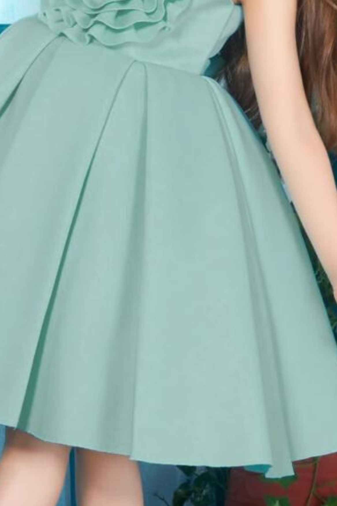 Sea Green Partywear Frock With Floral Embellished For Girls