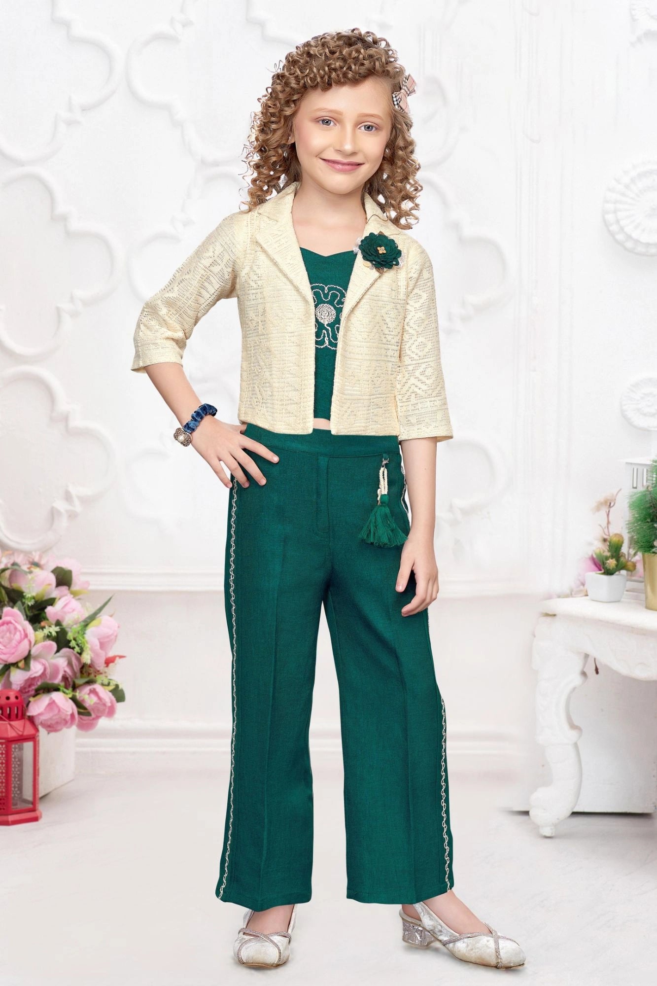 Teal Green Co-Ord Set with Lace Cropped Jacket For Girls
