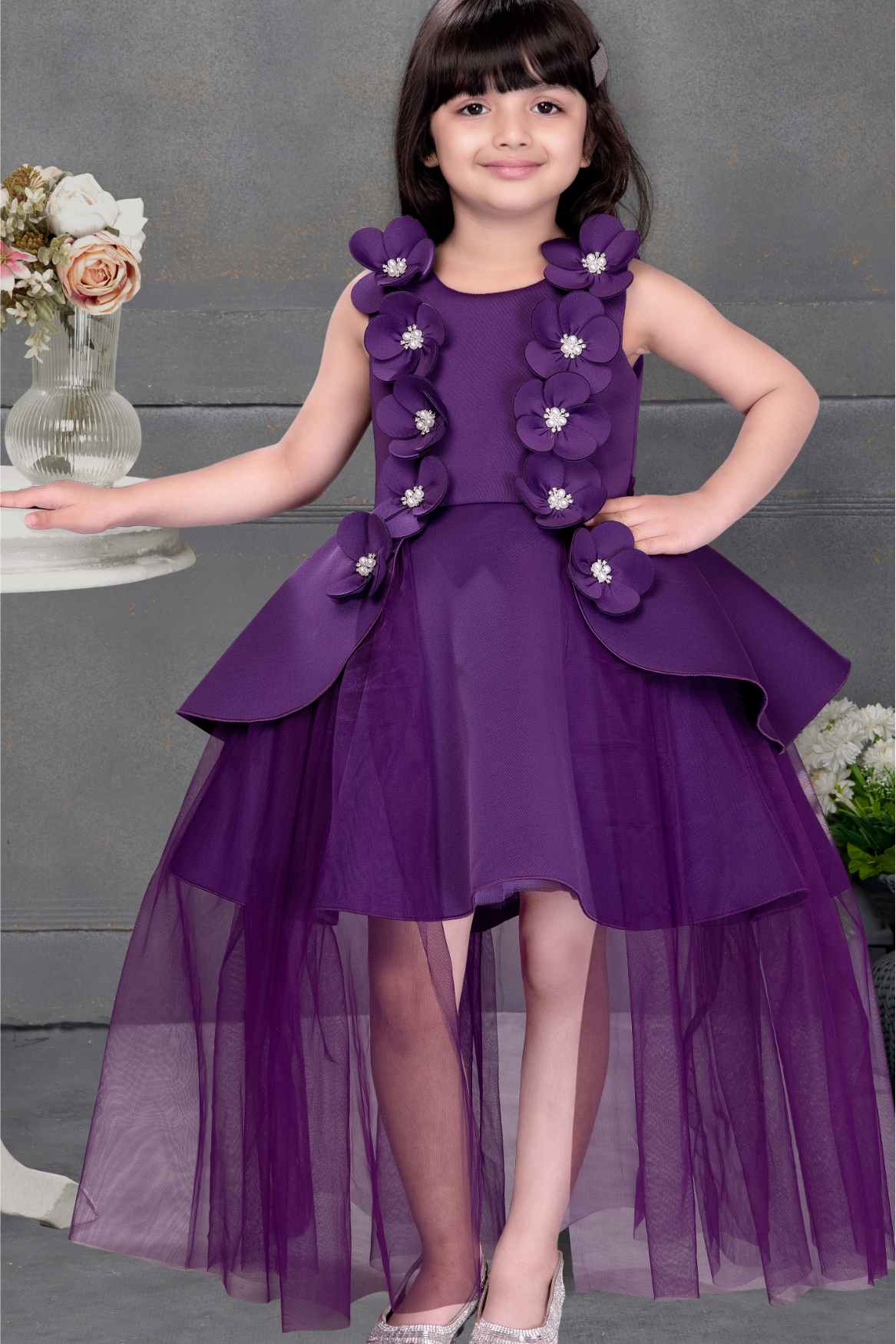 Get ready to make your little girl feel like a princess with our Violet Floral Embellished Party Wear Tailback Frock. The intricate floral embellishments add a touch of elegance, while the tailback design ensures comfort and style. Perfect for any special occasion, this frock will make her stand out in the crowd.