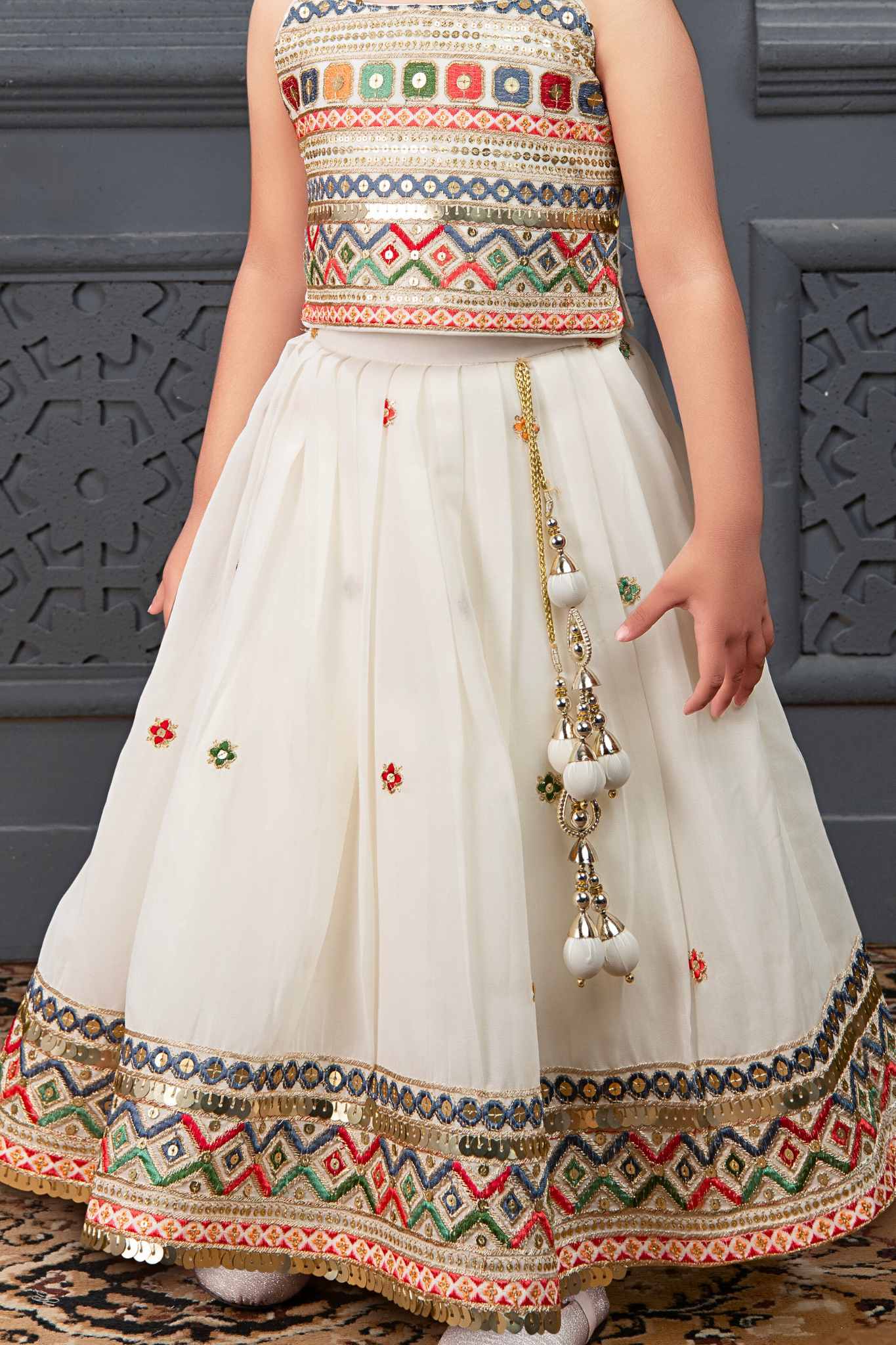 Off White Sequin And Embroidered Lehenga Choli For Girls