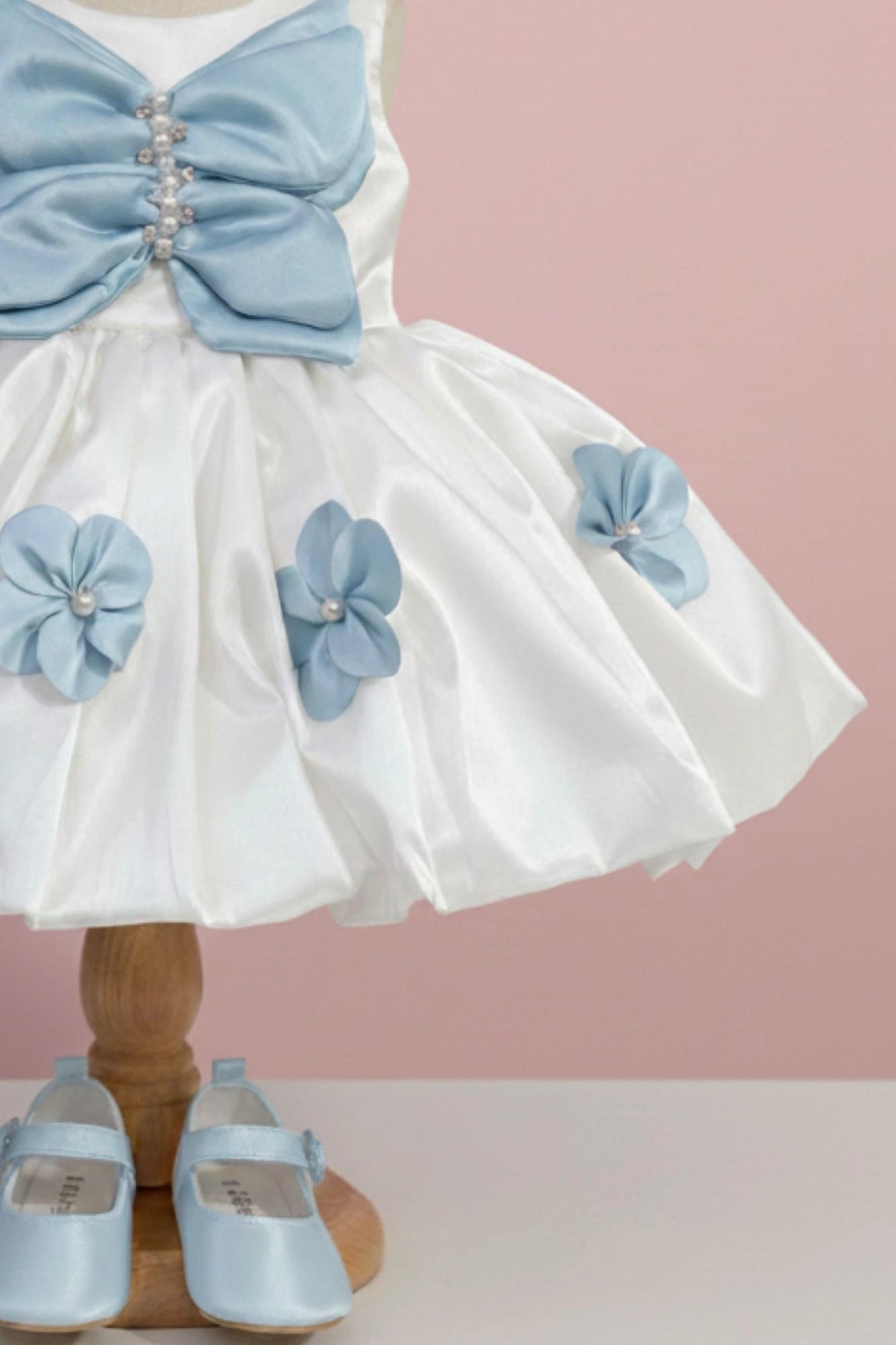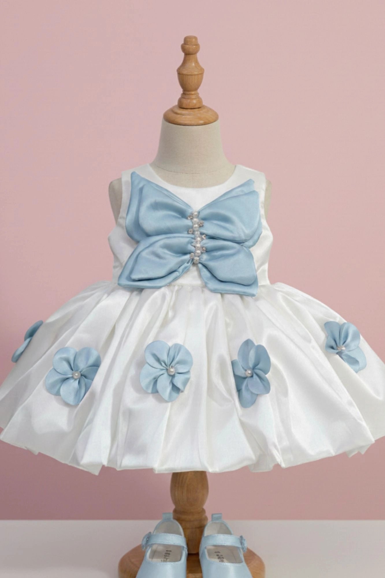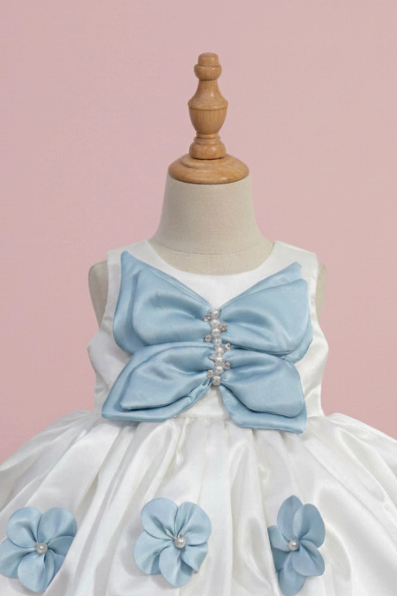 White & Sky Blue Butterfly Bow Party Wear Dress for Girls