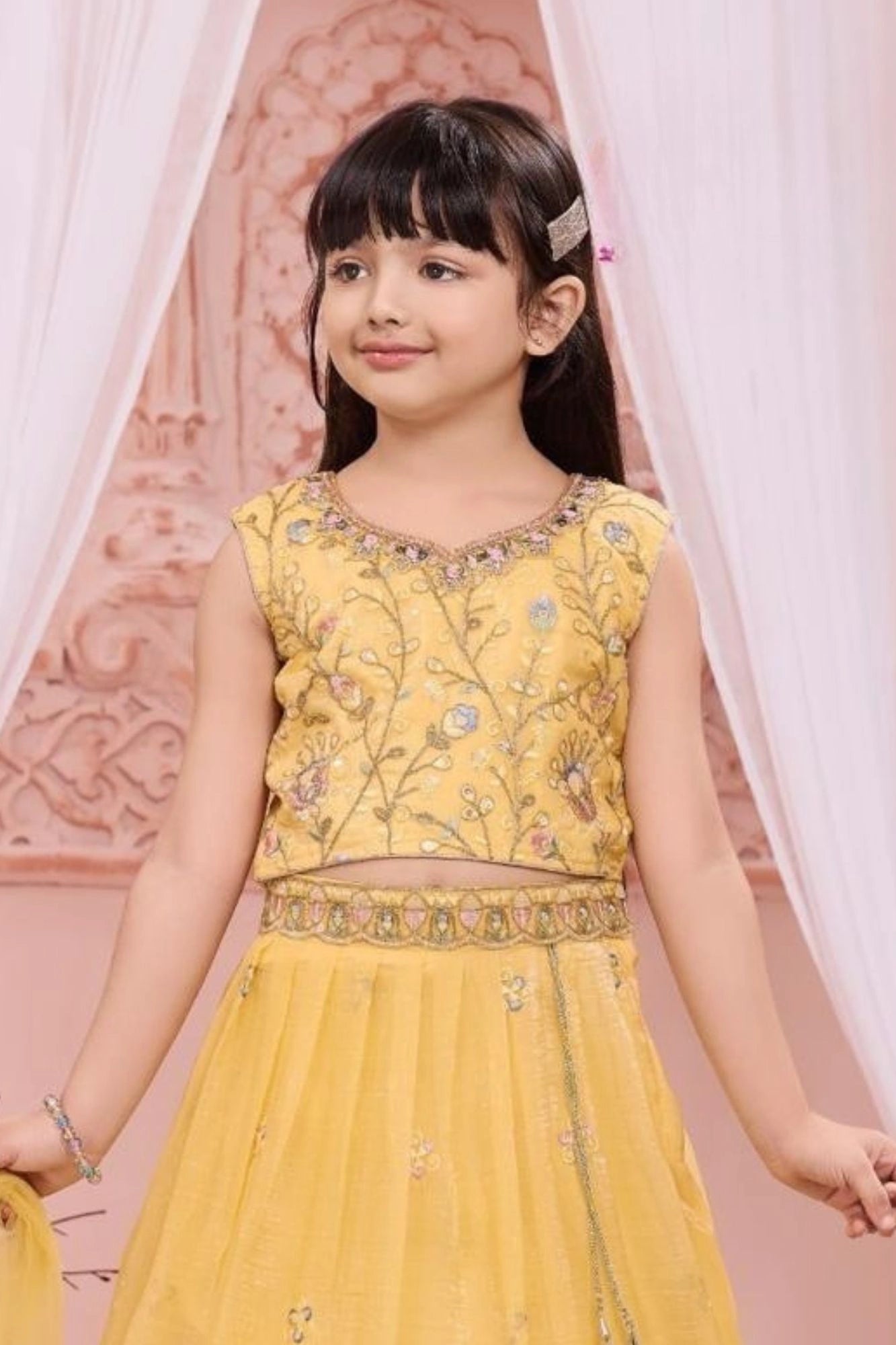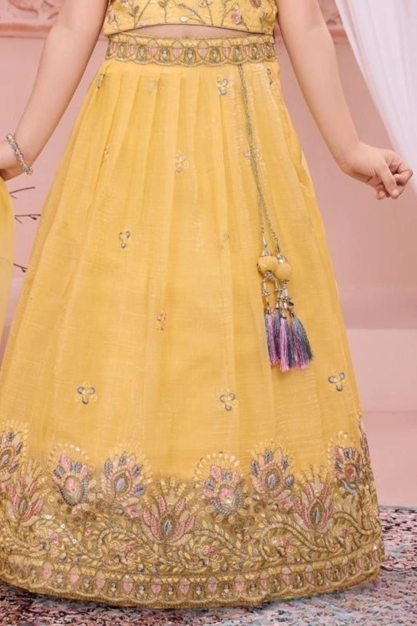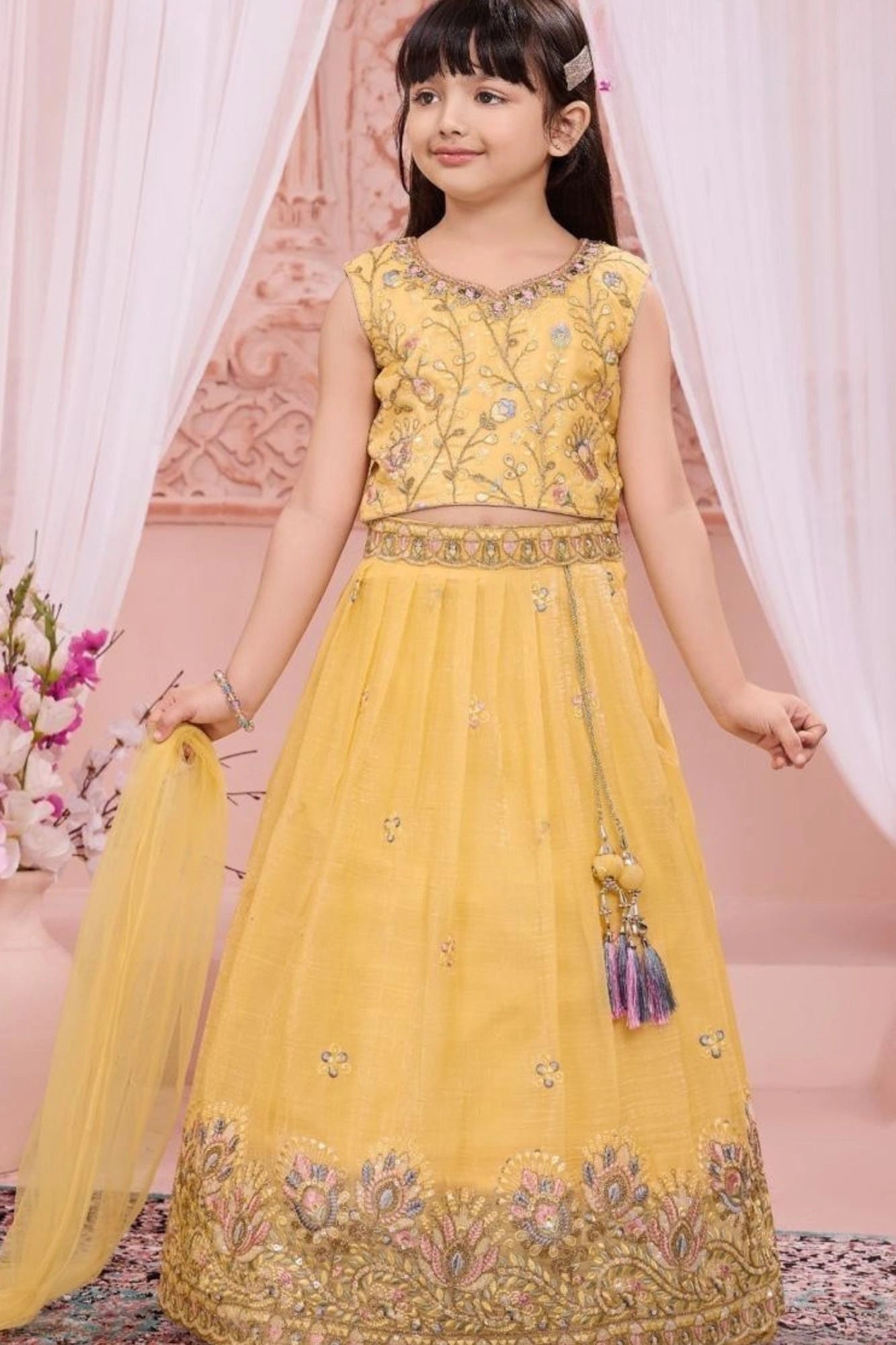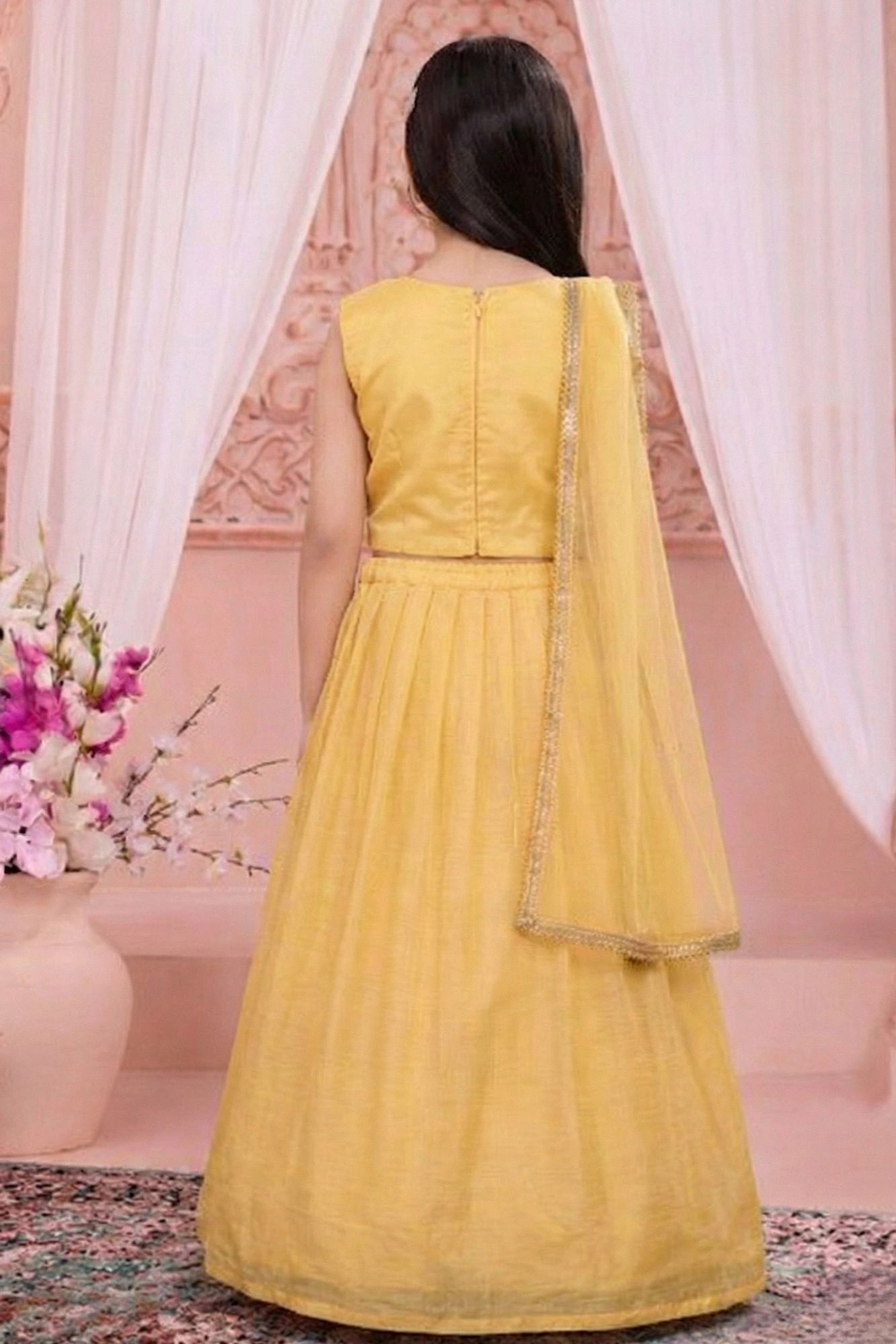 Yellow Embroidered Lehenga Choli Set for Girls